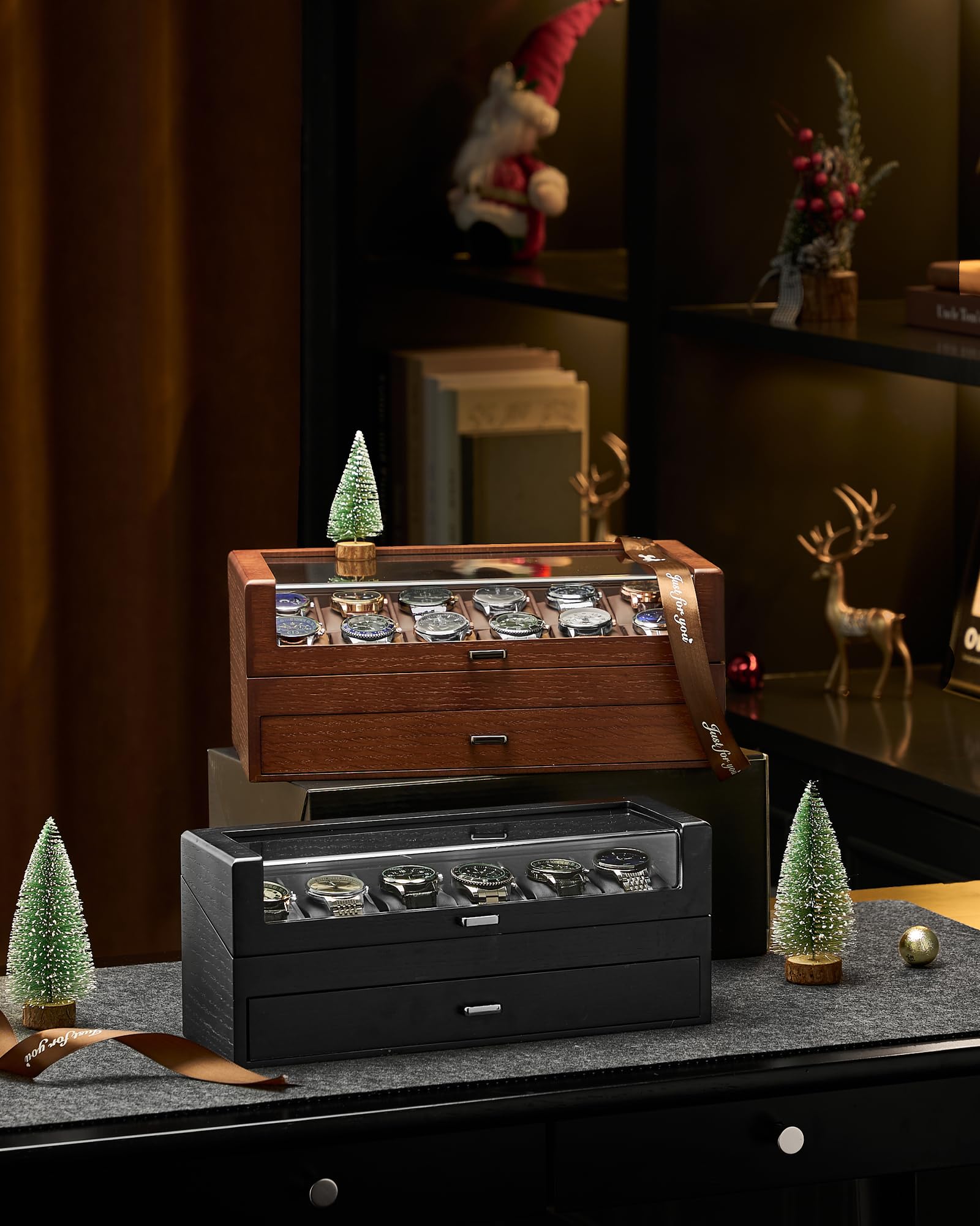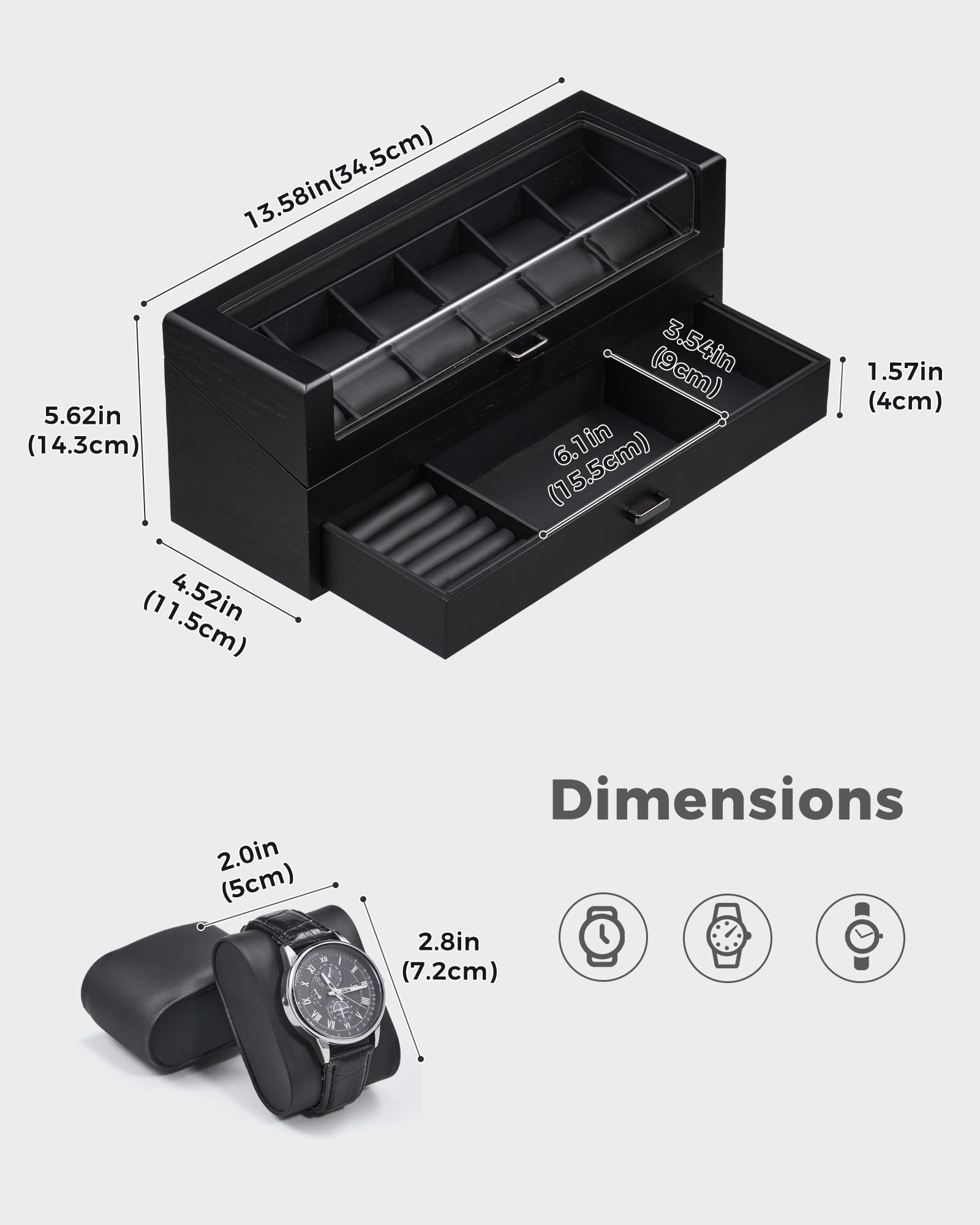 ProCase 腕時計ケース 10本用 2段式 ウオッチコレクションケース 女性 高級 収納ボックス ガラス蓋 ディスプレイケース プレゼント