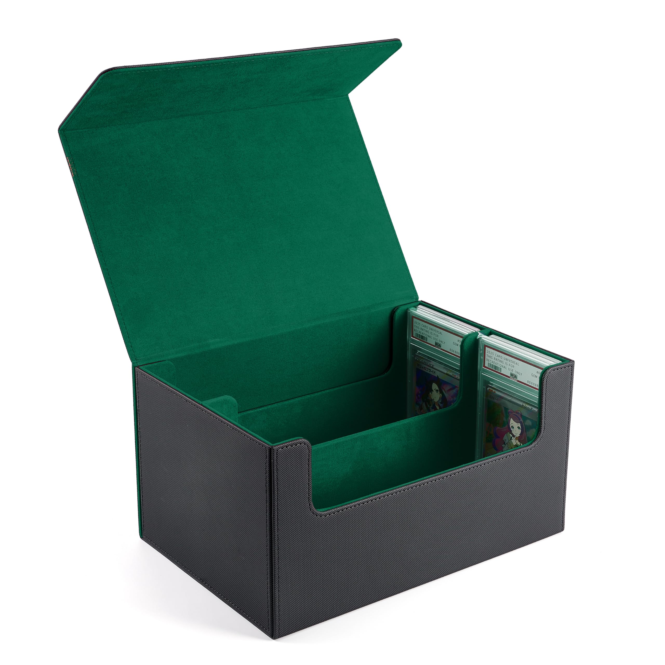 PSA BGS鑑定カード収納ケース 最大80枚収納可能 スクリューダウン 保管用2列ストレージボックス マグネット開閉式 ローダー デッキケース 大容量 PU レザー (黒内装緑)