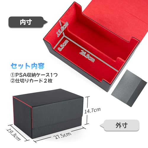 PSA BGS 鑑定カード用ケース スクリューダウン 収納ボックス デッキケース カードケース トレカケース 保管 PU レザー Lサイズ (40枚収納, 黒内装赤)