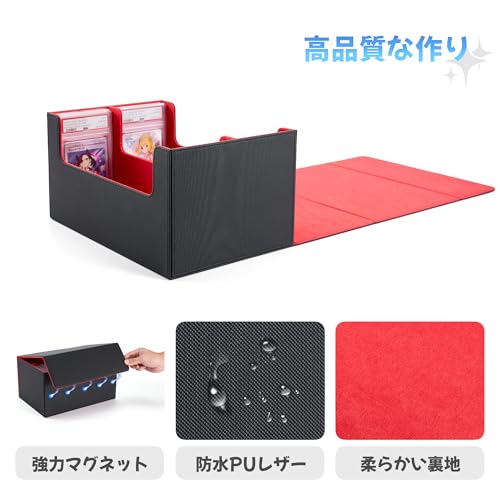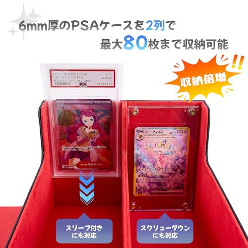 PSA BGS鑑定カード収納ケース 最大80枚収納可能 スクリューダウン 保管用2列ストレージボックス マグネット開閉式 ローダー デッキケース 大容量 PU レザー (黒内装赤)