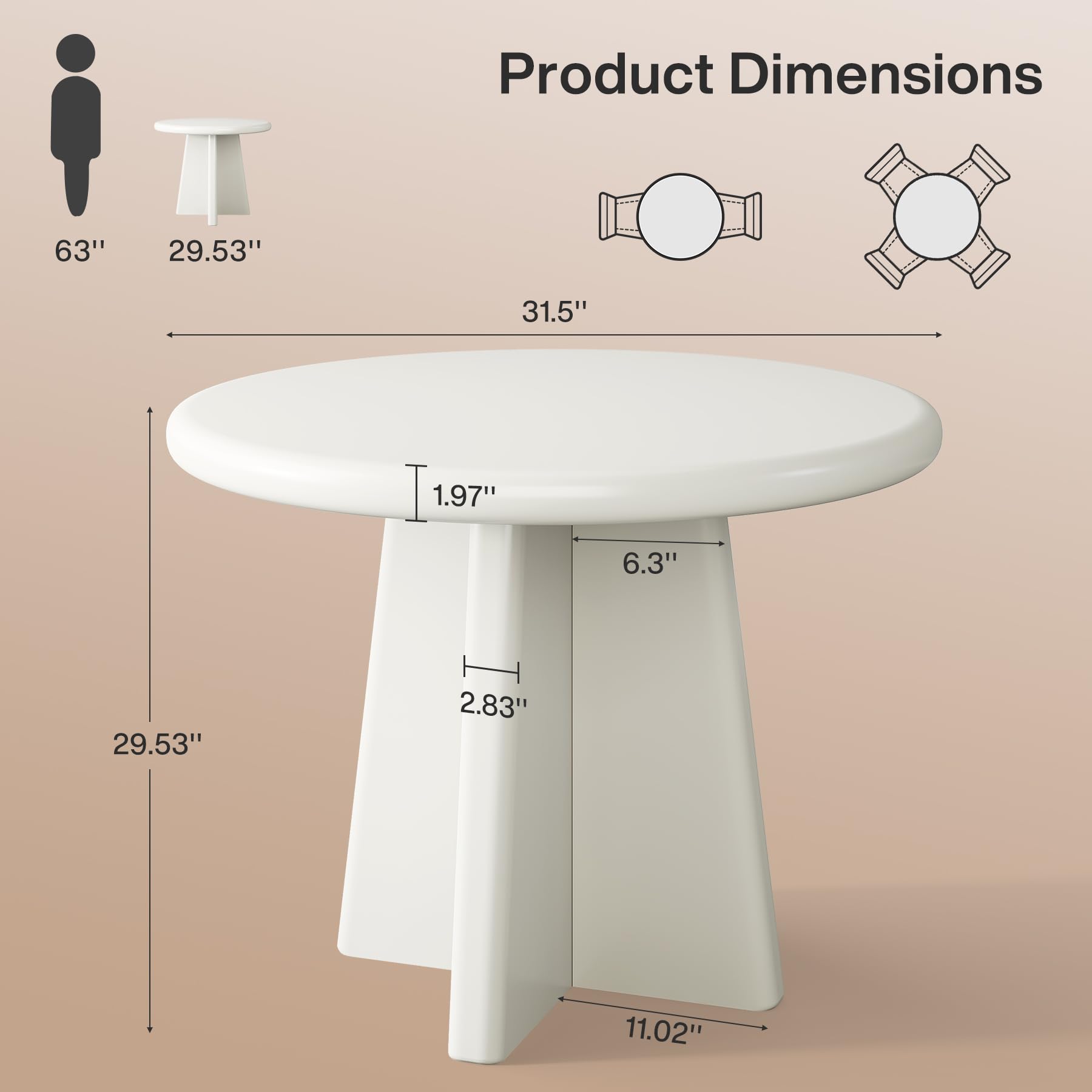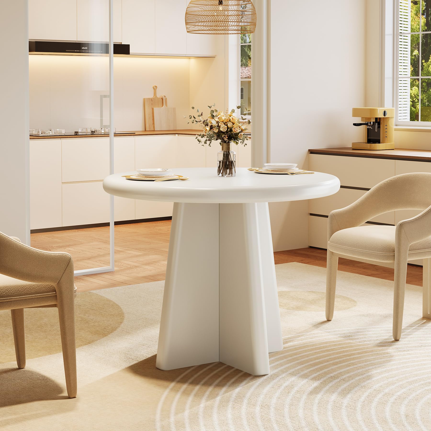 Tribesigns ダイニングテーブル 幅80cm 単品 丸 円形 食卓 テーブル 二人用 木制 ホワイト おしゃれ カフェ風