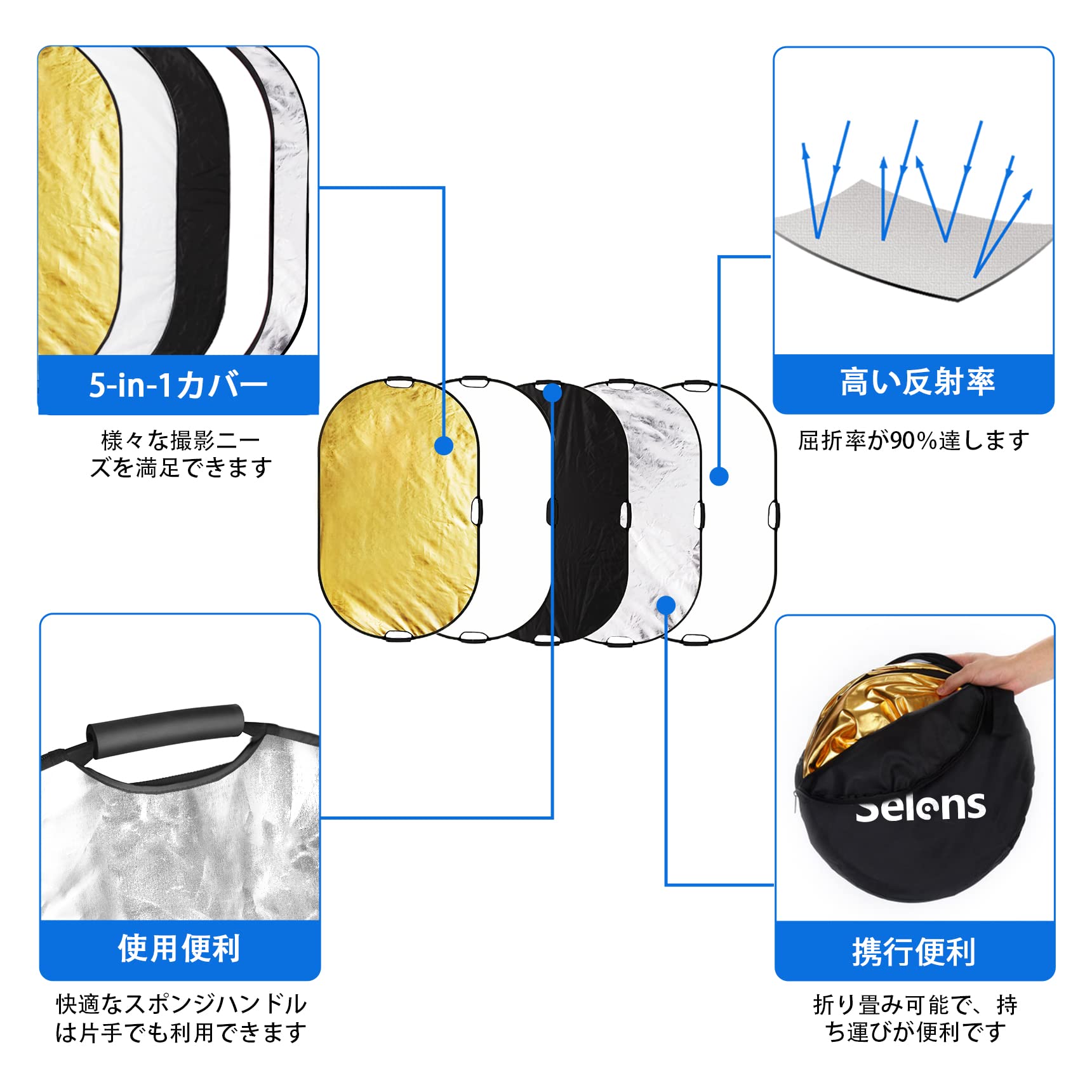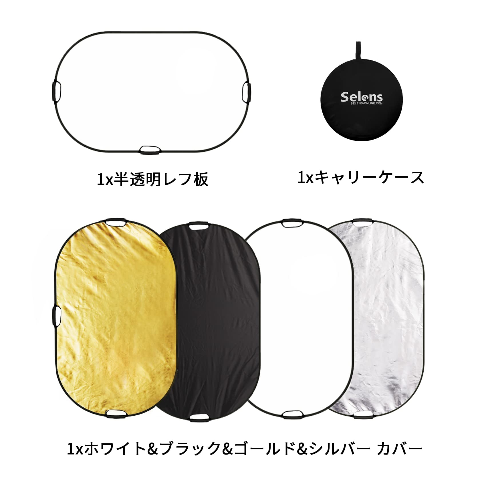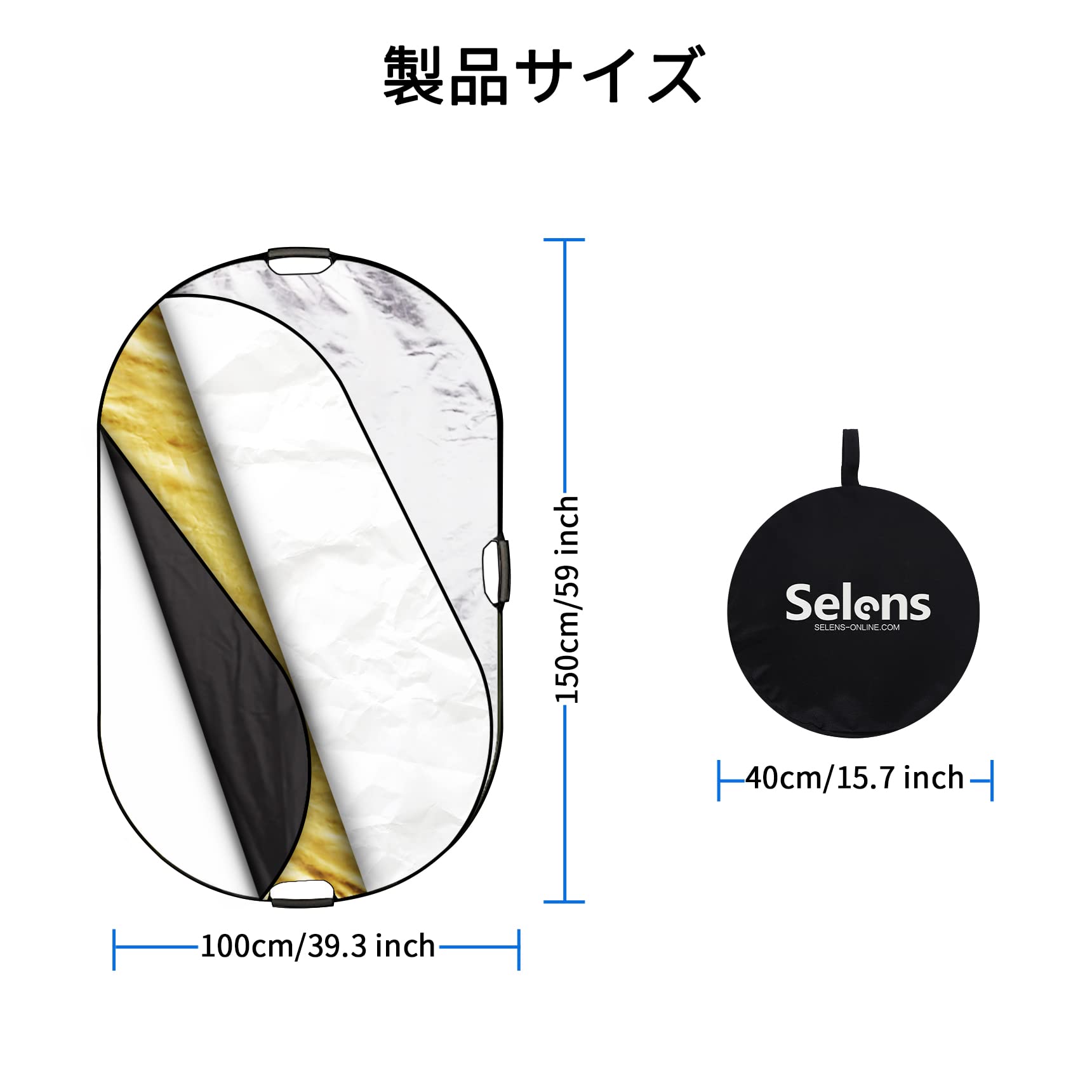 Selens 5-IN-1 楕円レフ板 150x200cm ハンドル付き 撮影用 スタジオレフ板 折りたたみ可能 (1枚で5色対応-金/銀/白/黒/半透明) [並行輸入品]
