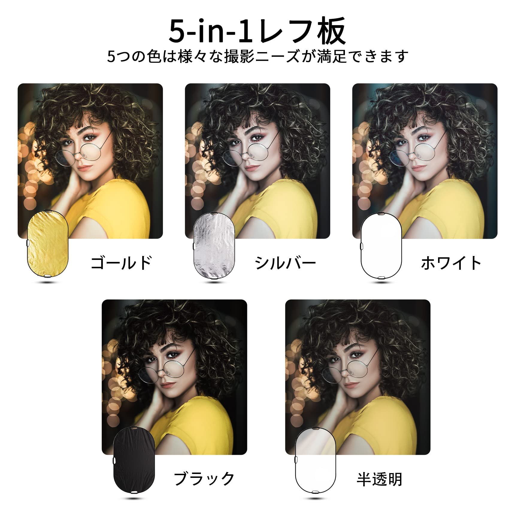 Neewer® 5 in 1 折り畳みスタジオライトリフレクターモディファイ レフ板 150 x 200 cm