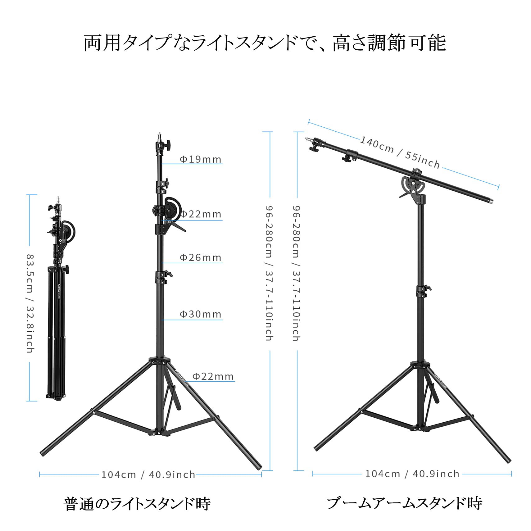 AMBITFUL MF-01 メタル ヘビー ステンレス クロスアーム スチール 最長232cm フォトスタジオキット ブームアーム 94cm~232cm 37~91インチ ライトスタンド クロスアーム Cスタンド用