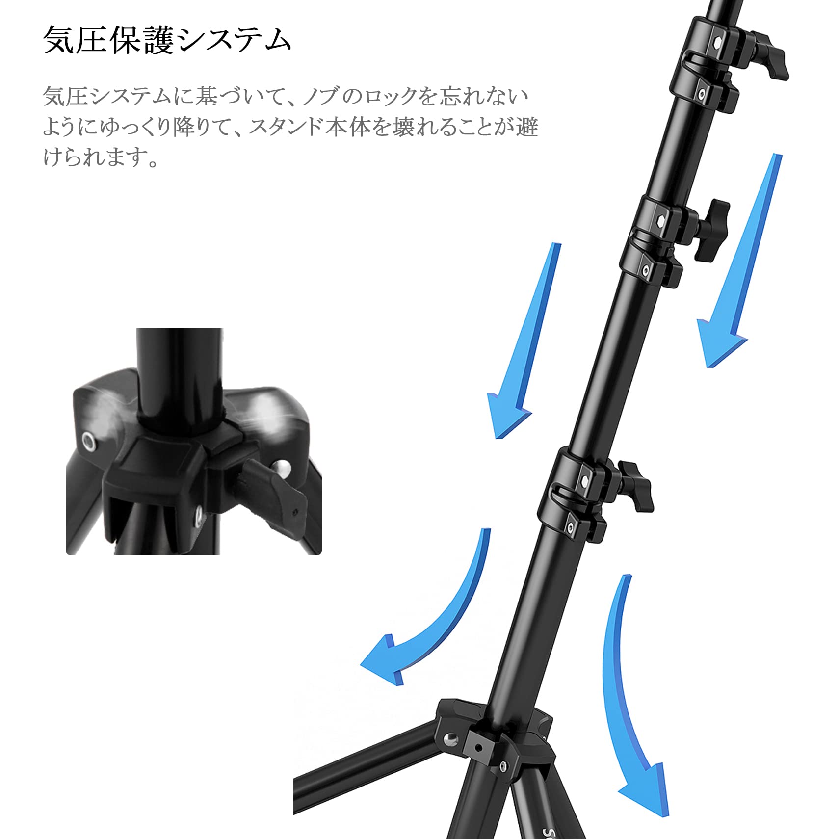 Meking 撮影用 ライトスタンド 220cm 高さ調節可能 1/4ネジ アルミ製 逆向き折り畳み スタジオ撮影 スピートライト ソフトボック レフ板に対応