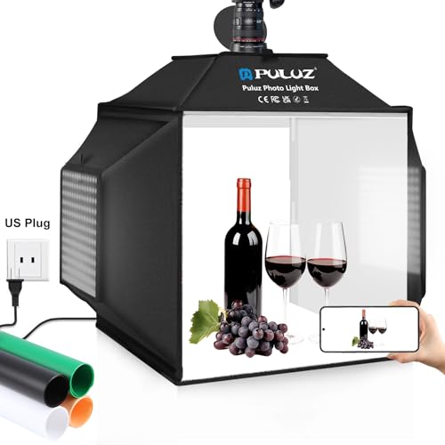 PULUZ ポータブルライトボックス 16インチ x 16インチ プロフェッショナル調光機能付き フォトボックス 高CRI 144 LEDライト付き アップグレードライトボックス 製品写真用背景6枚付き