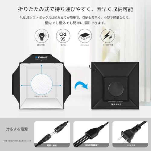 PULUZ 【40cm 】折りたたみ 撮影ブース ソフトボックスとしても2役 72W 5500K 高演色Ra95 4色背景板 商品写真 物撮り スマホ YouTube 動画