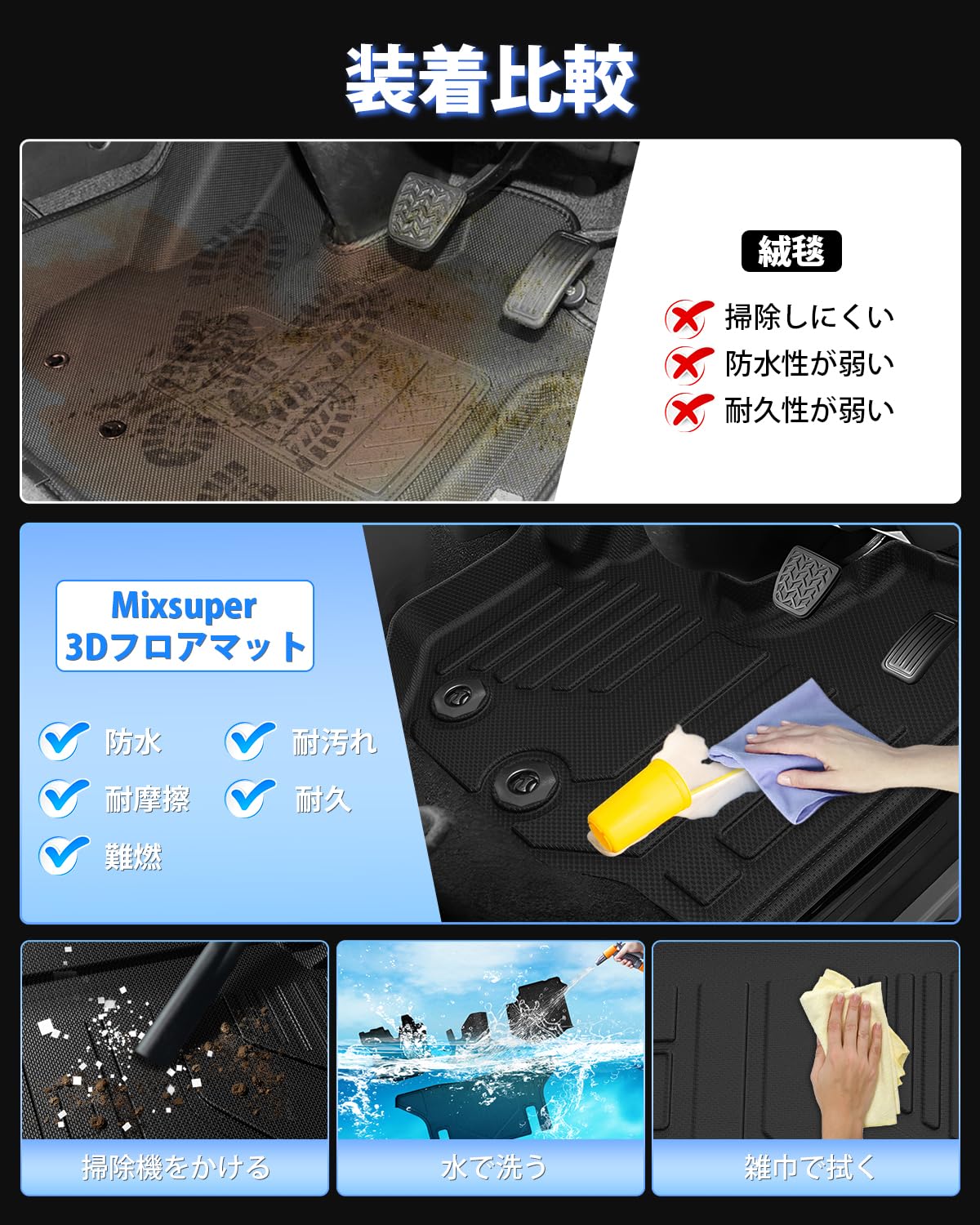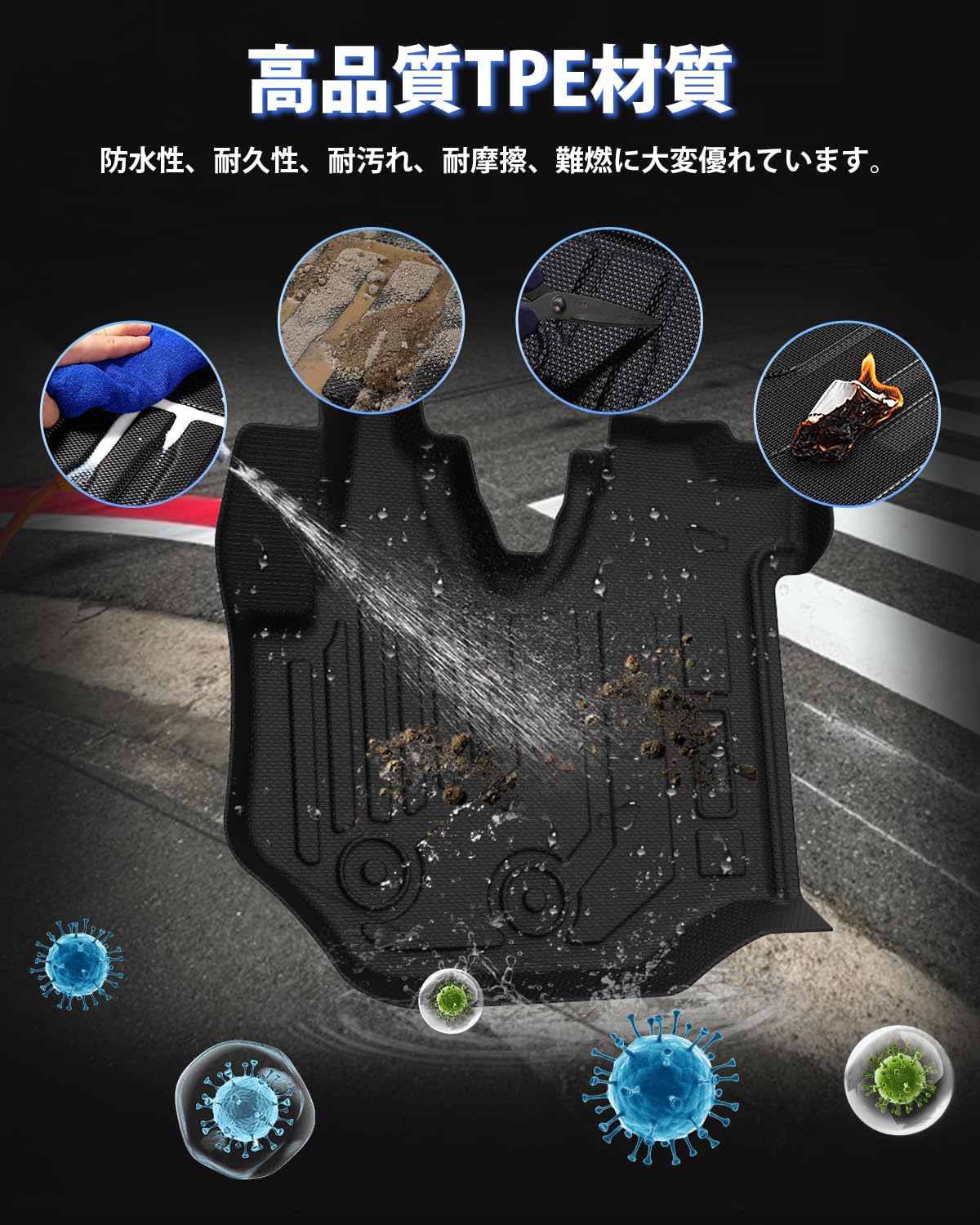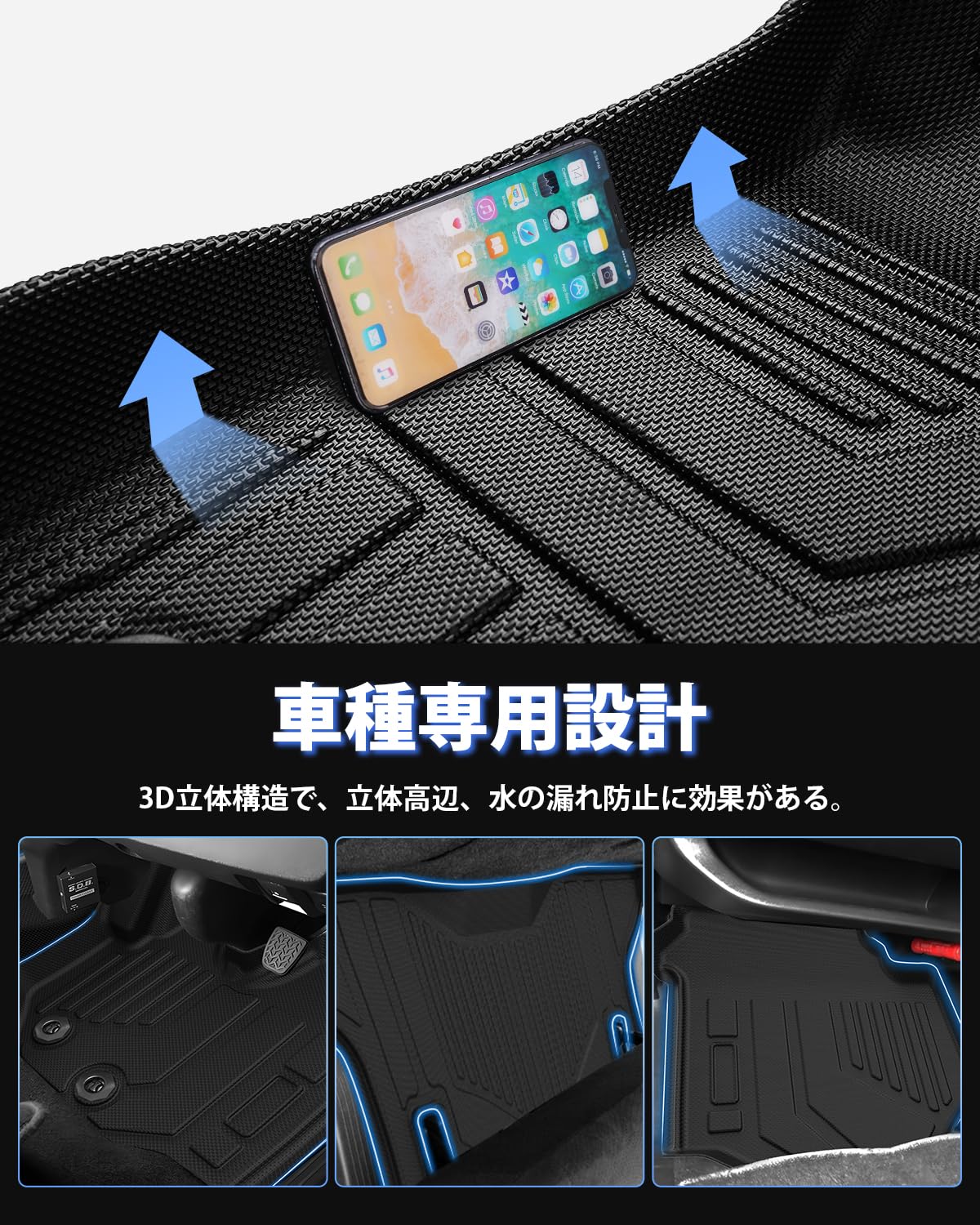 Orealauto フロアマット 防水 3D立体構造 TPE素材 カー足マット 耐汚れ 車アクセサリー ブラック 3Pセット