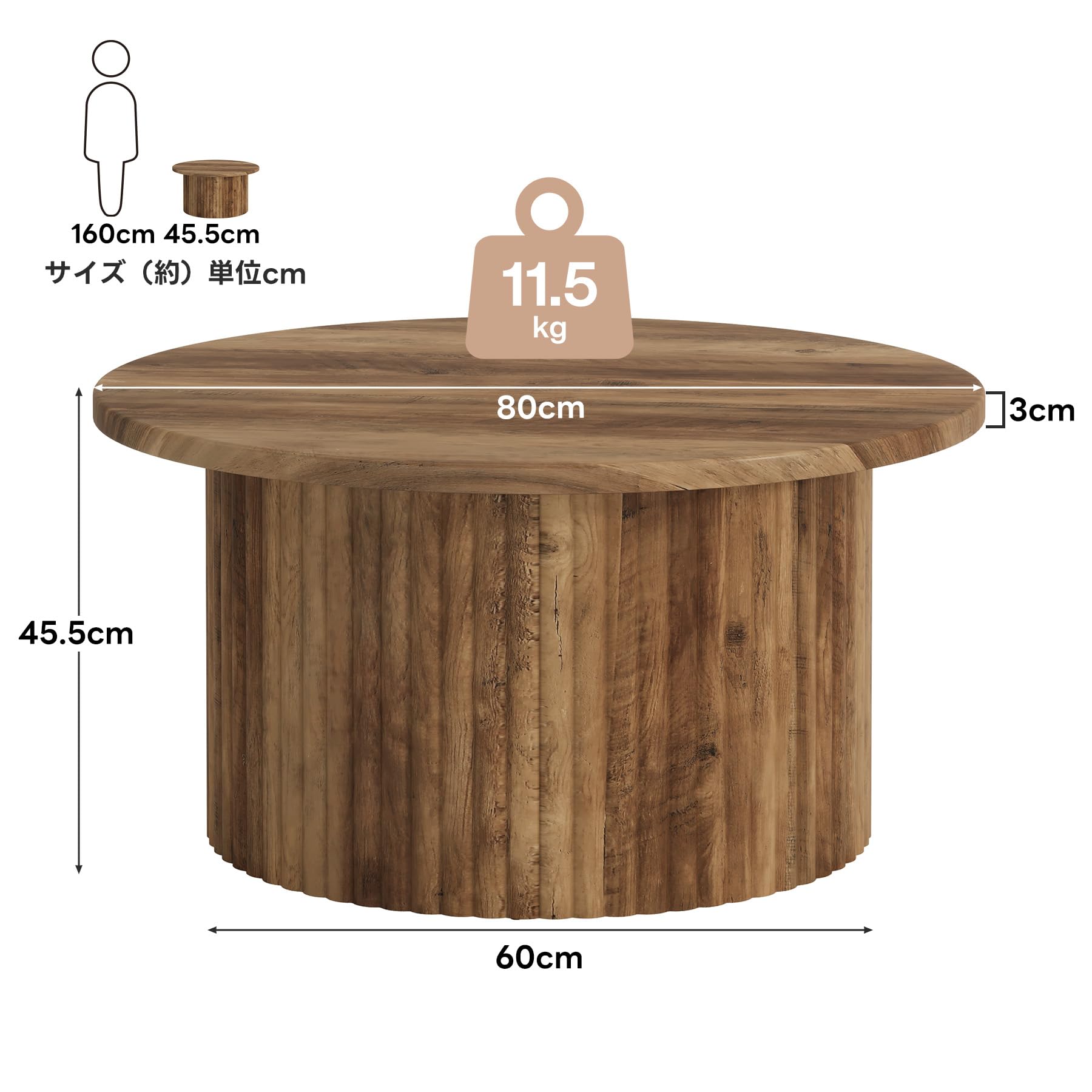 Tribesigns ローテーブル リビングテーブル コーヒーテーブル 木製 センターテーブル ソファサイドテーブル 丸 幅80×奥行80×高さ45cm