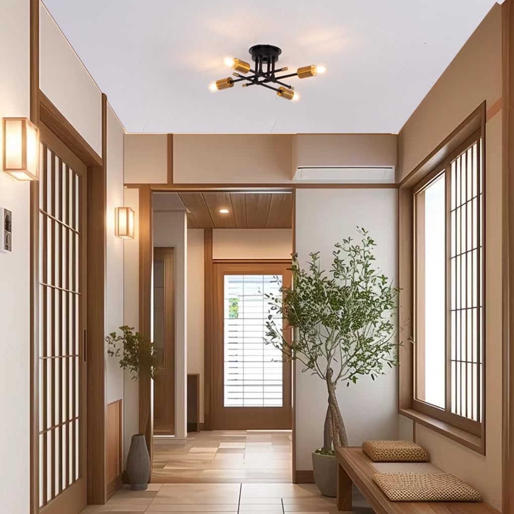DINGLILED シーリングライト 4灯 レトロ オシャレ ペンダントライト スポットライト 吊り下げ 天井照明 調整自由 折り畳み可 口金E26 照明器具 ジッパースイッチ ひも付き 木目調 和室 洋室 リビング 台所 寝室 ダイニング 内玄関 (電球別売)