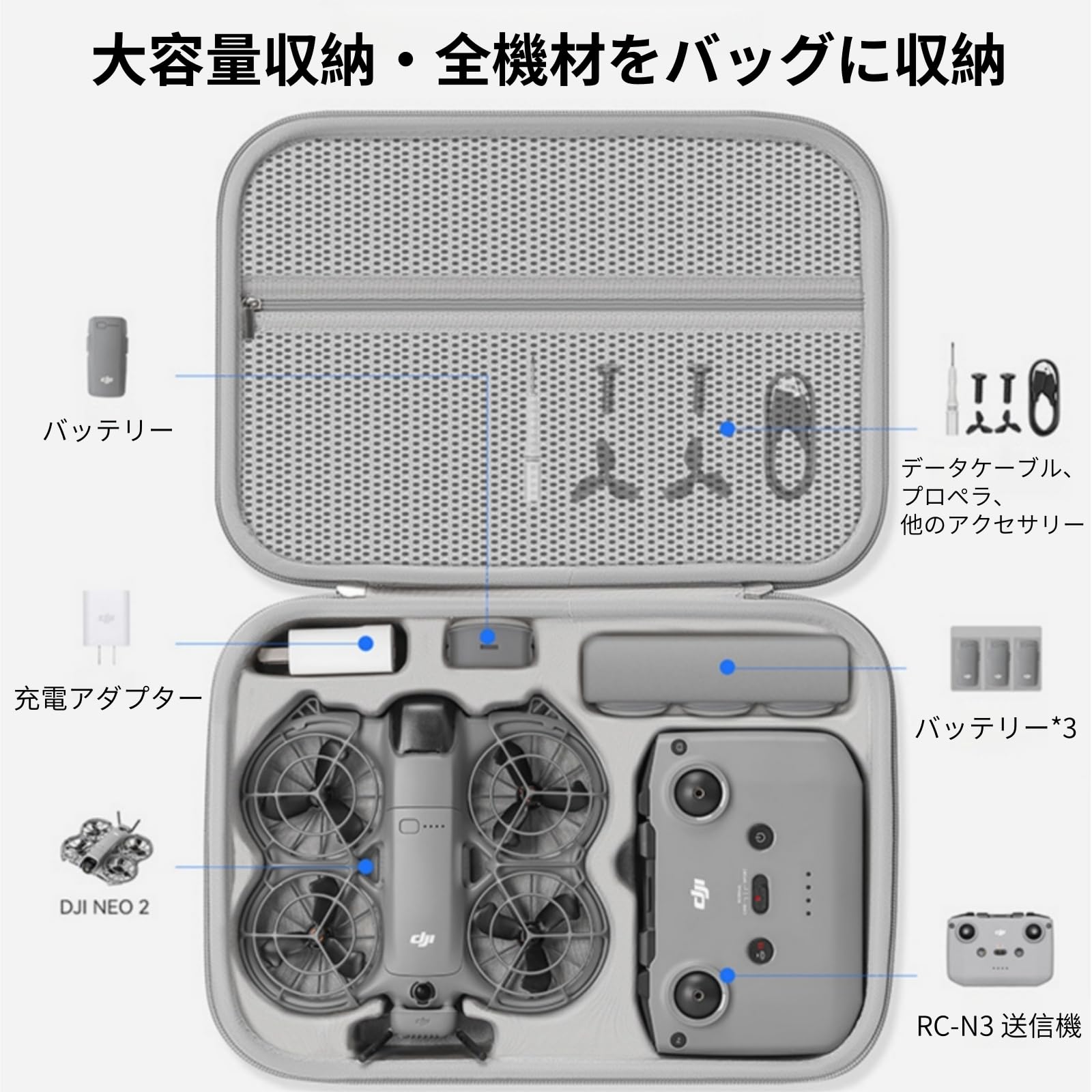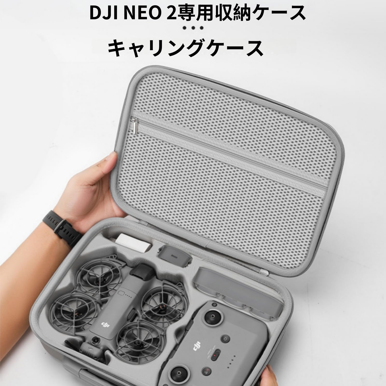DJI Neo 2用 防水収納ケース、ゴーグル N3/RC Motion 3対応、耐衝撃保護キャリーバッグ、旅行用ポータブル (グレー)