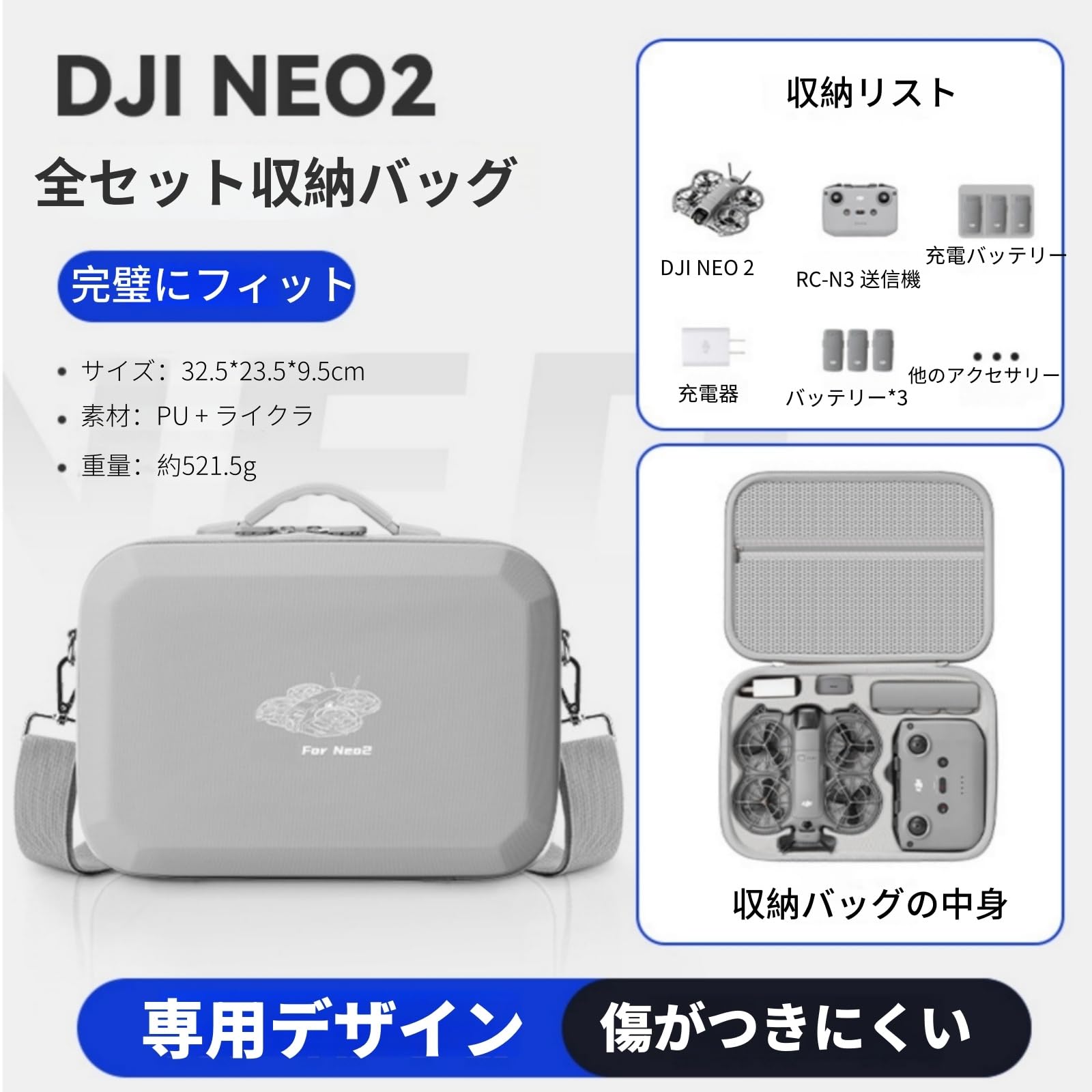DJI Neo Fly More Combo 対応 収納ケース DJI Neo ドローン 対応 収納ケース キャリングケース PU 防水収納バッグ ポータブル