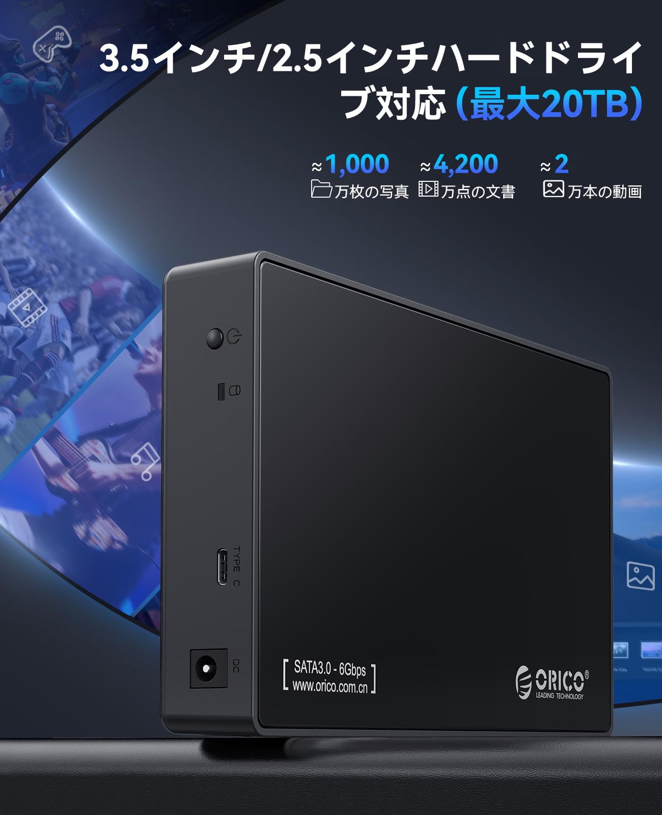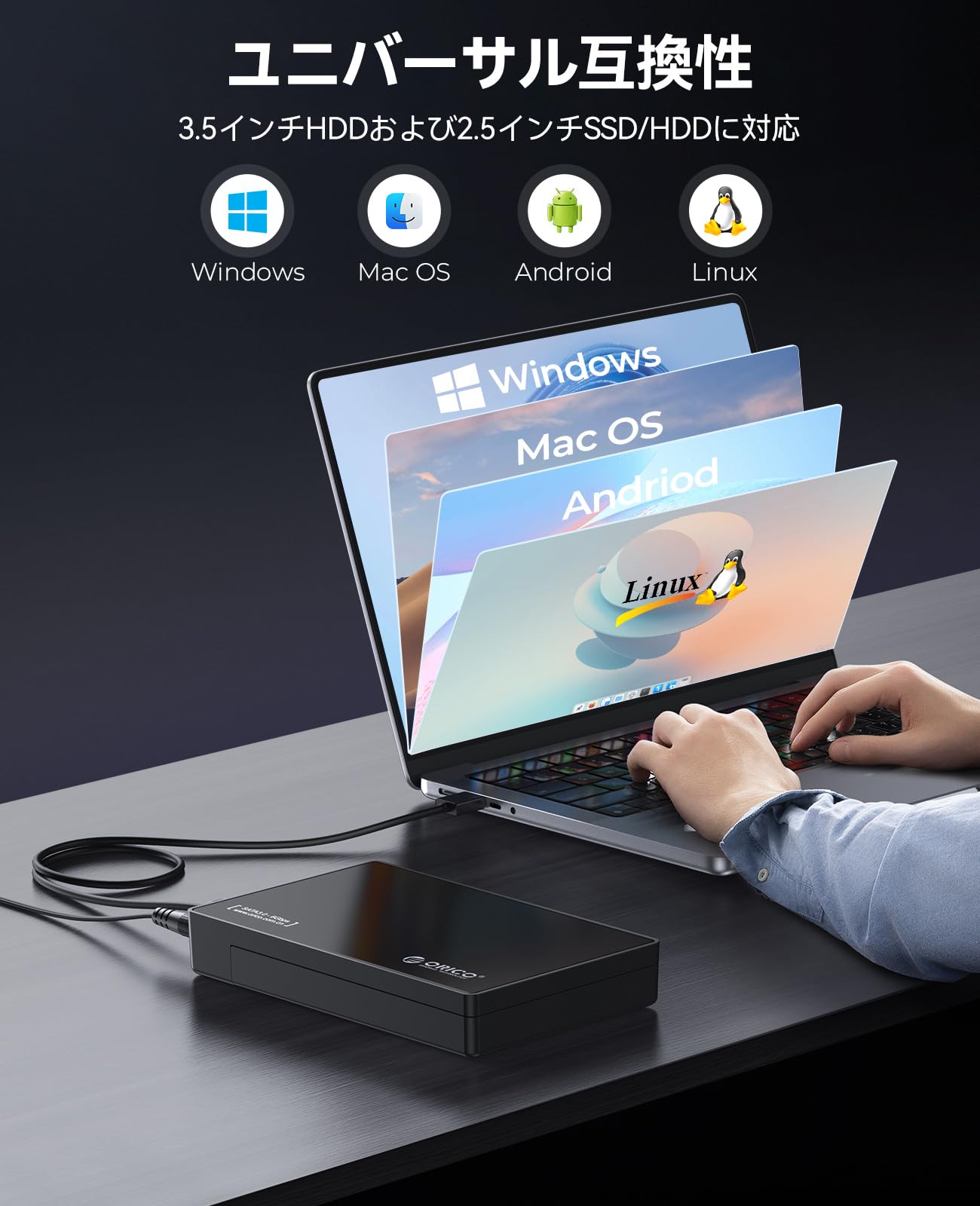 ORICO USB-C 3.5インチ HDDケース USB3.1 ハードディスクケース SATA3.0 外付け ケース 20TBまで 2.5 / 3.5 両方対応 USB3.0 5Gbps伝送 UASP高速 ツール不要 ブラック 3588C3-BK