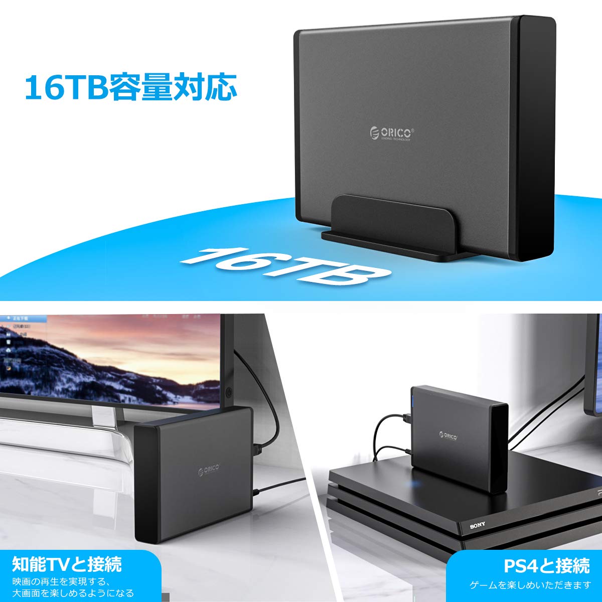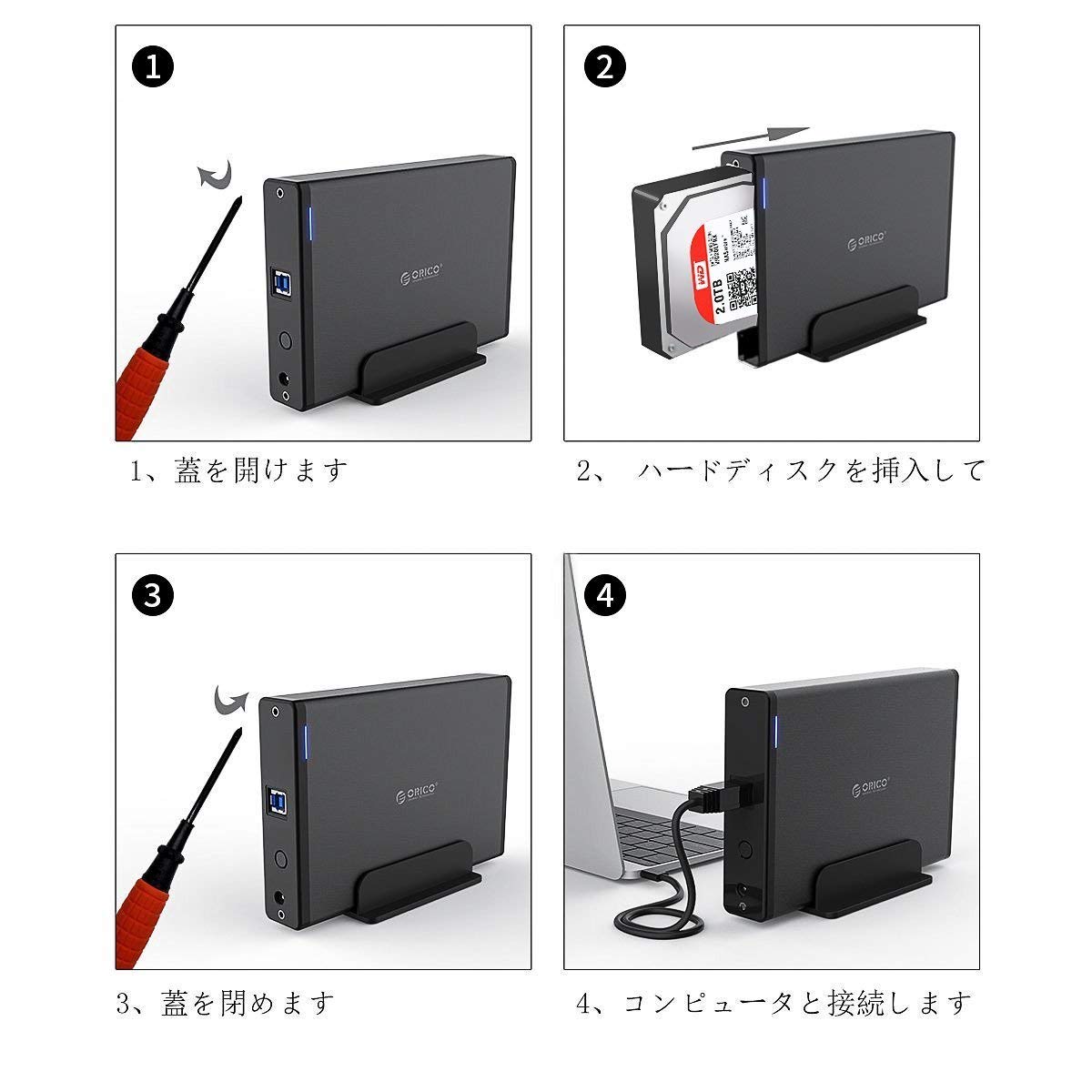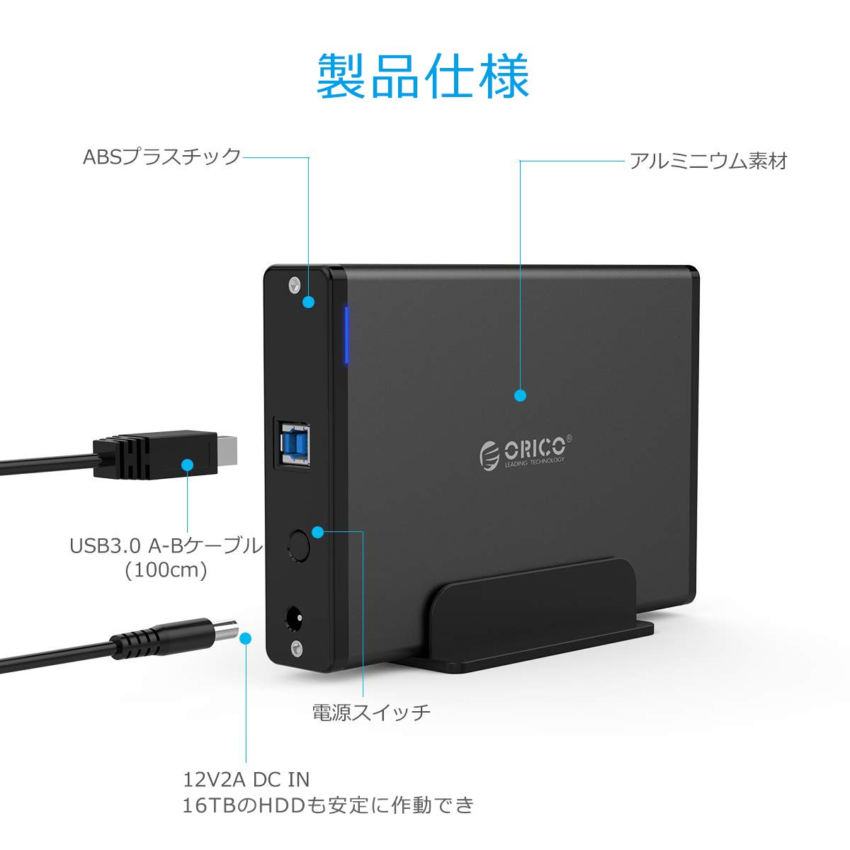 ORICO 3.5インチ HDDケース USB3.0 ドライブケース SATA 3.0 対応 16TBまで 5Gbps高速 ハードディスクケース UASP転送モード対応 アルミ製 ブラック 7688U3