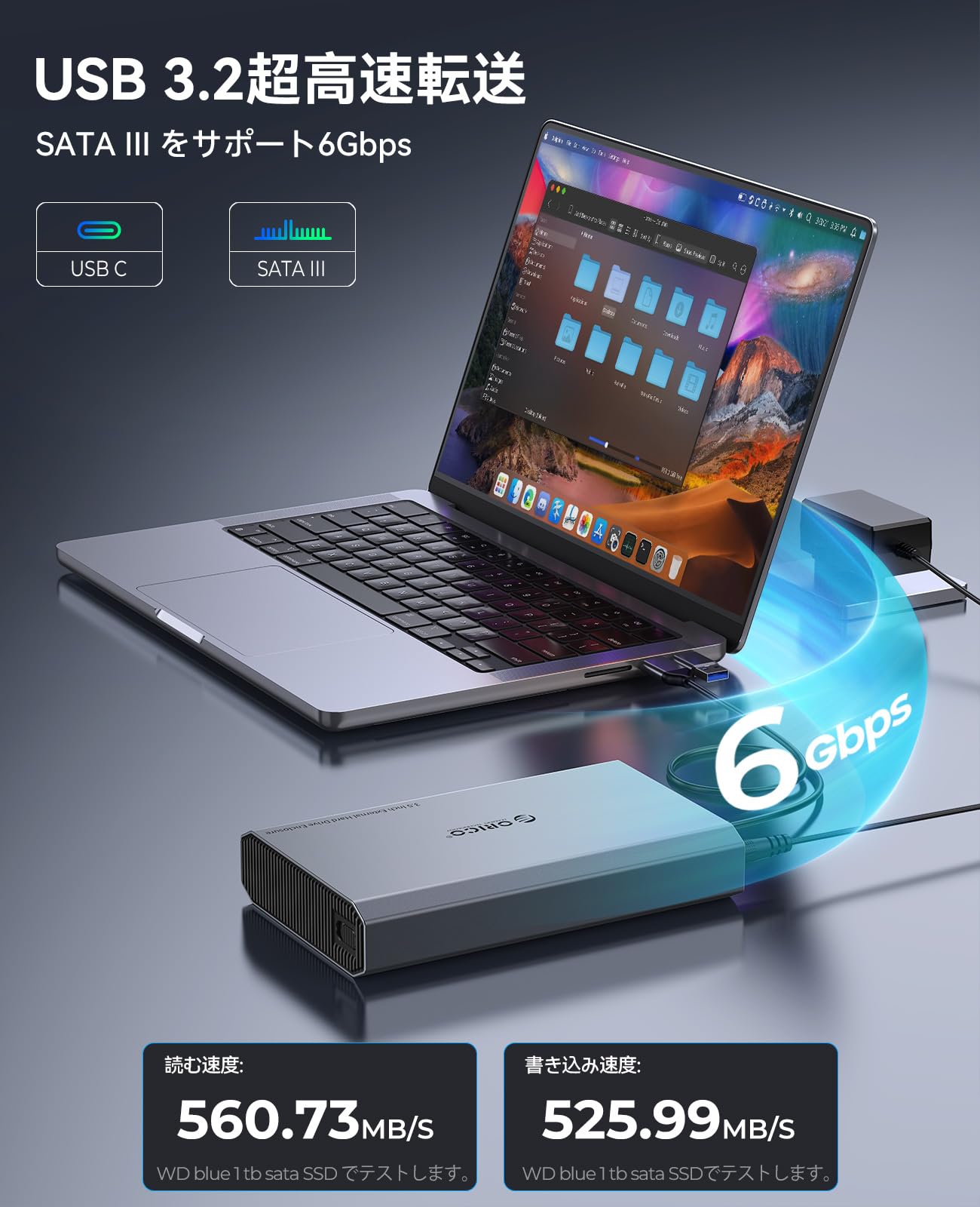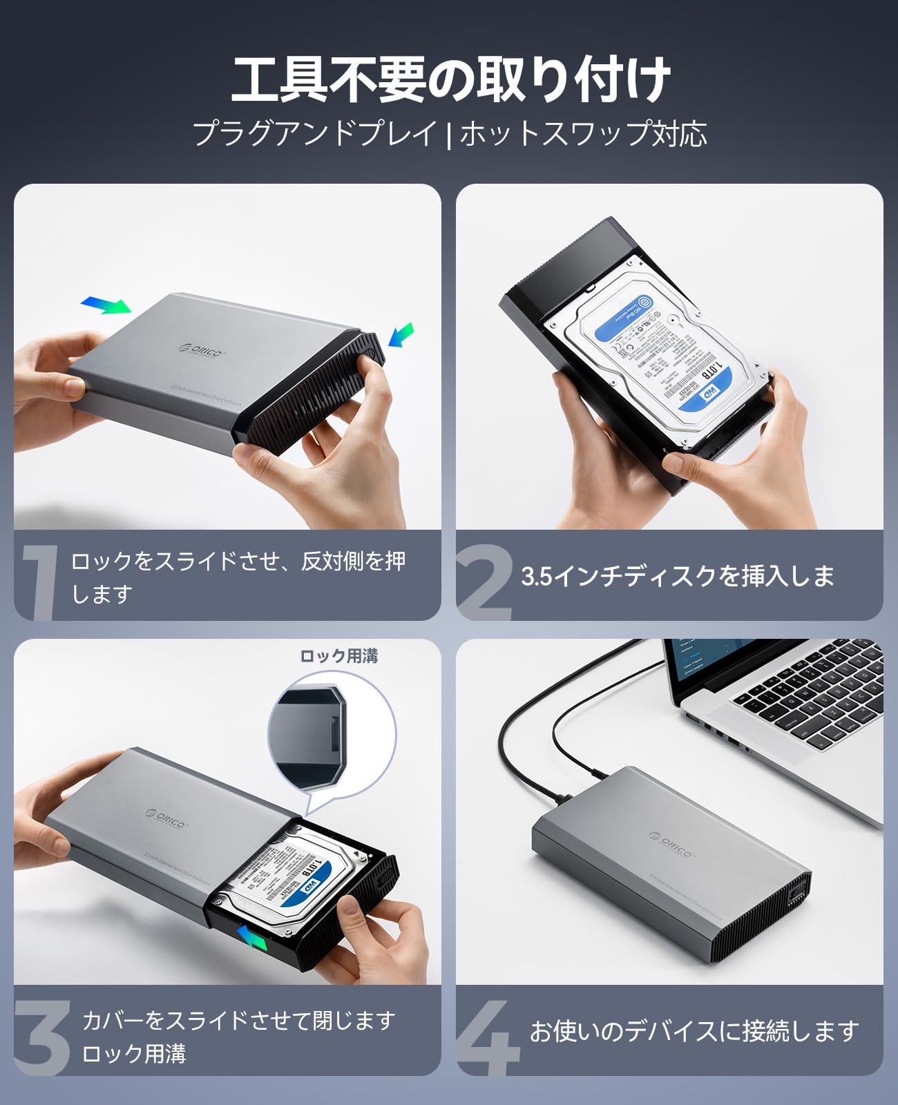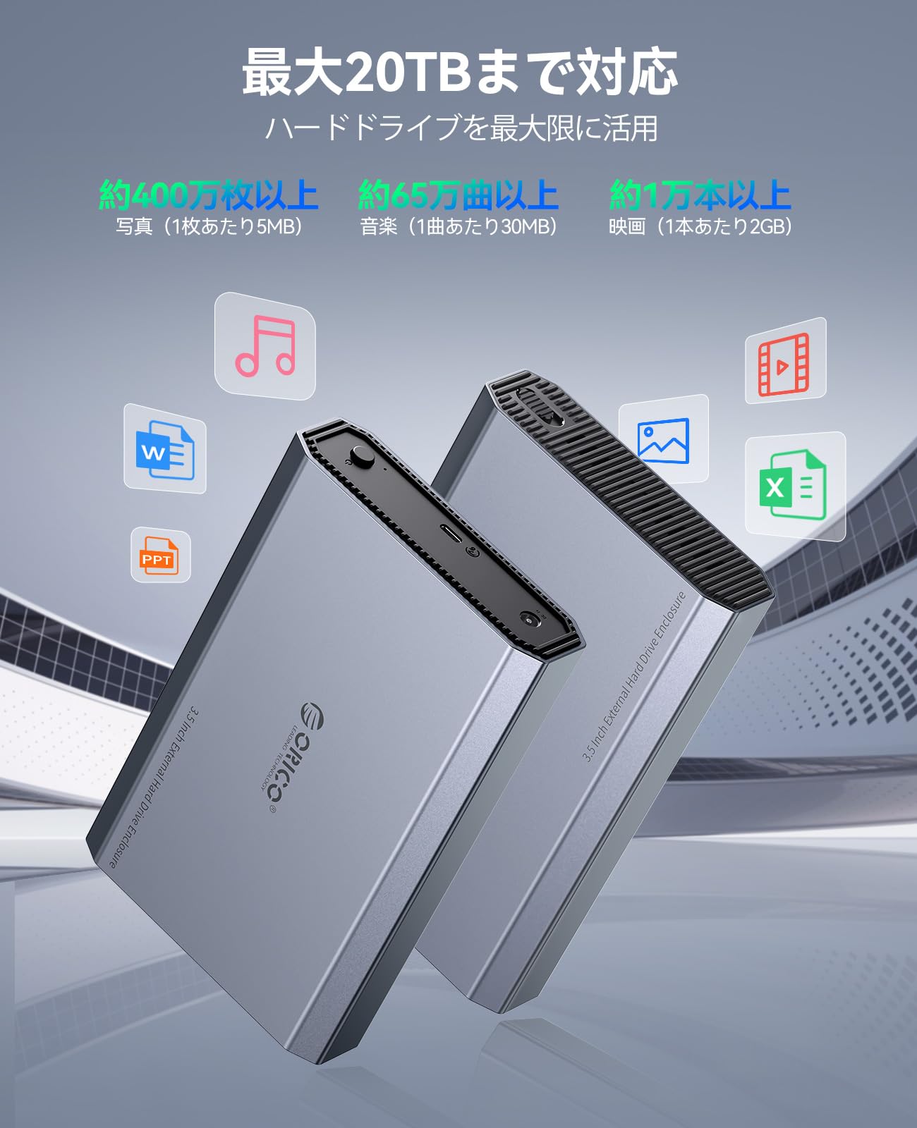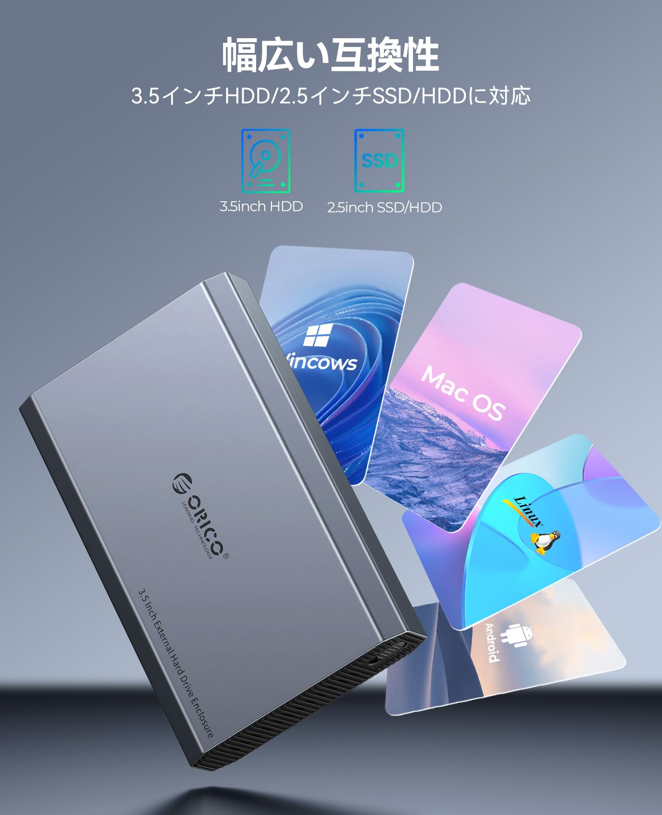 ORICO 3.5インチ HDD ケース 6Gbps USB 3.2 Gen 2 外付けハードディスクケース アルミ 3.5インチ HDD 外付けケース サポート3.5/2.5インチSATA HDD SSD 最大20TB macOS Windowsに対応 USB C / A 2 in 1ケーブル付き DD35C3