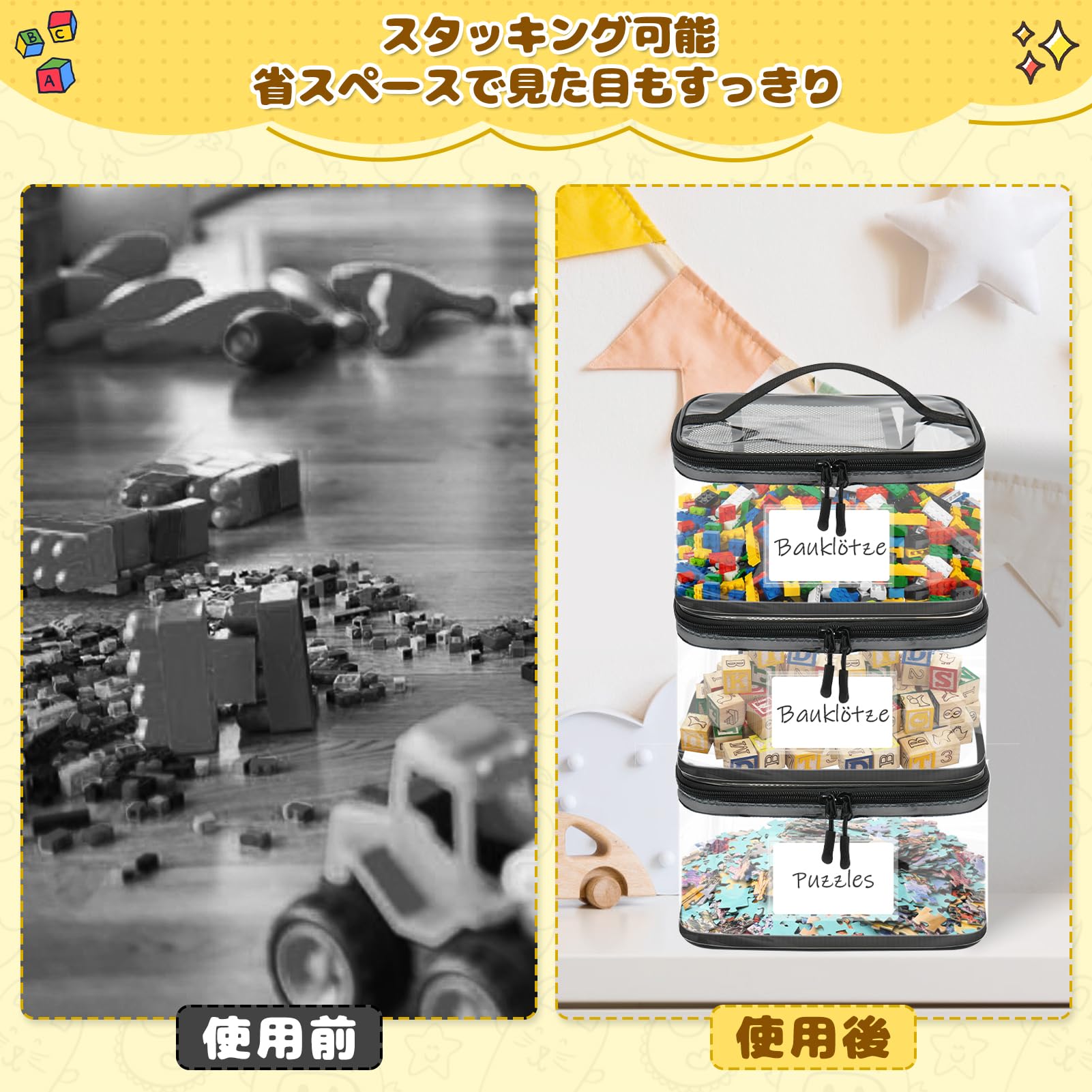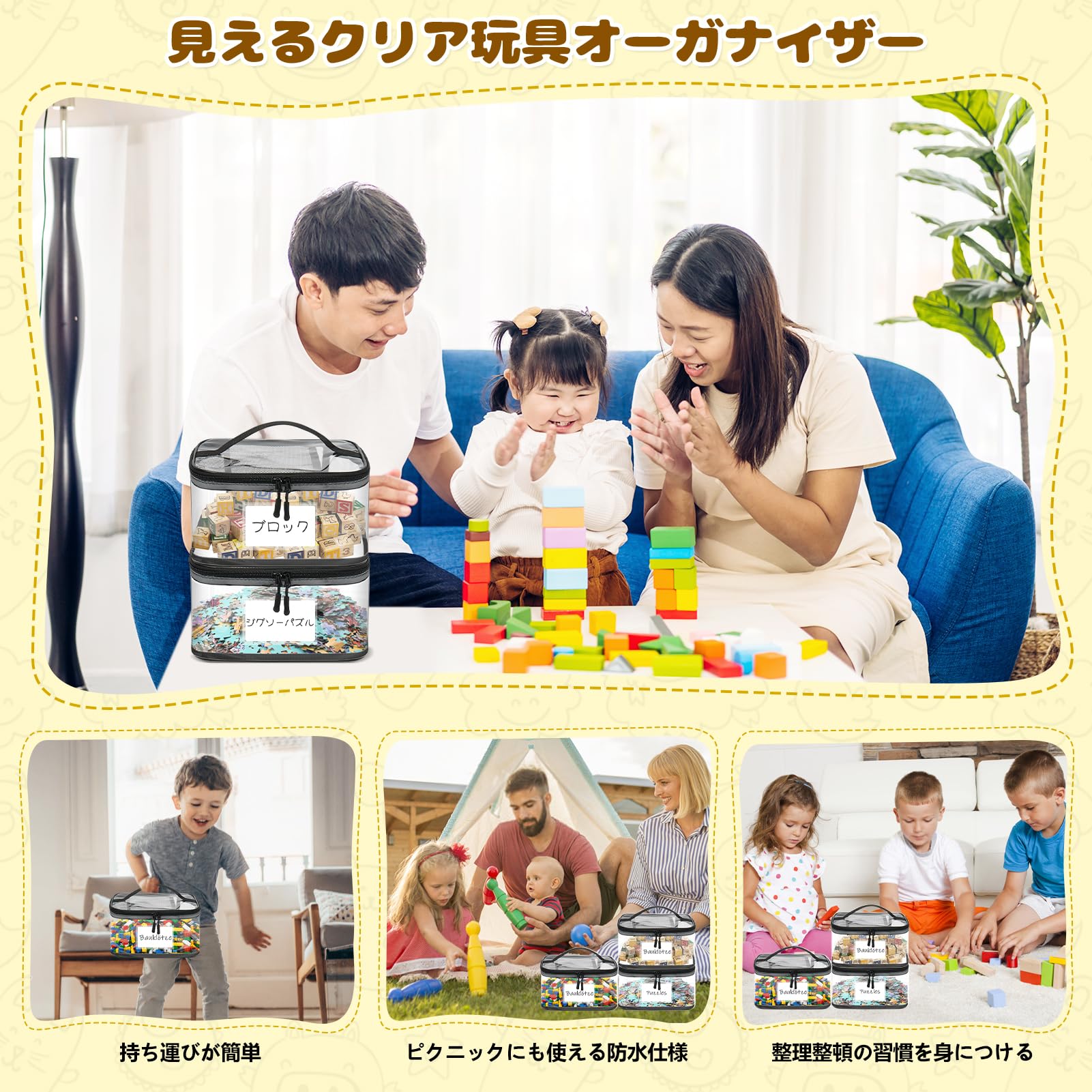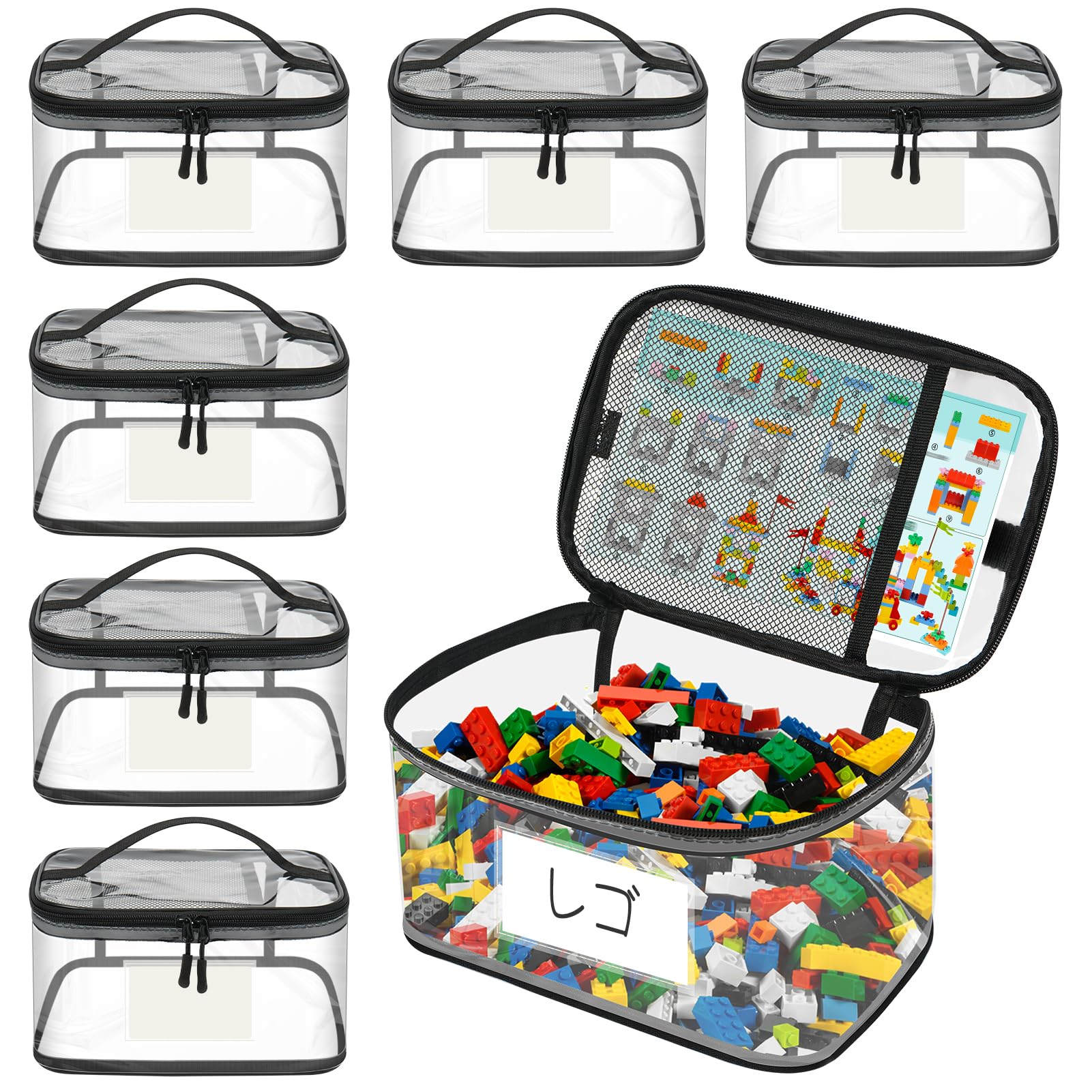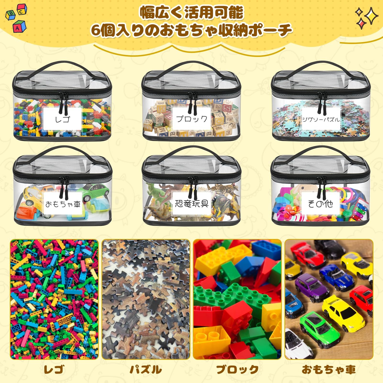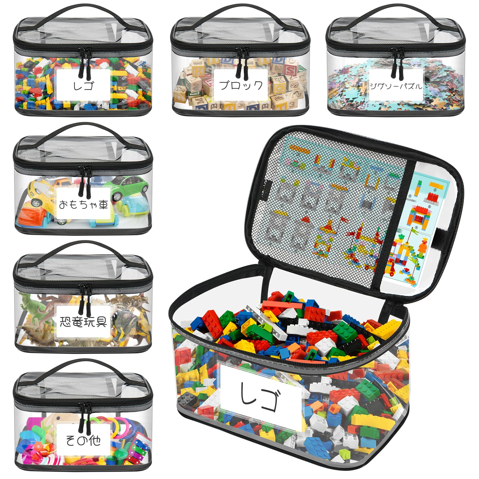 yazi レゴ収納バッグ 透明おもちゃオーガナイザー ファスナー付き 玩具収納ボックス ラベルと説明ポケット付き 再利用可能 防水 子供のおもちゃオーガナイザー ボードゲーム・ブロック・パズル分類整理簡単 小物入れケース 6個セット (M-6個)
