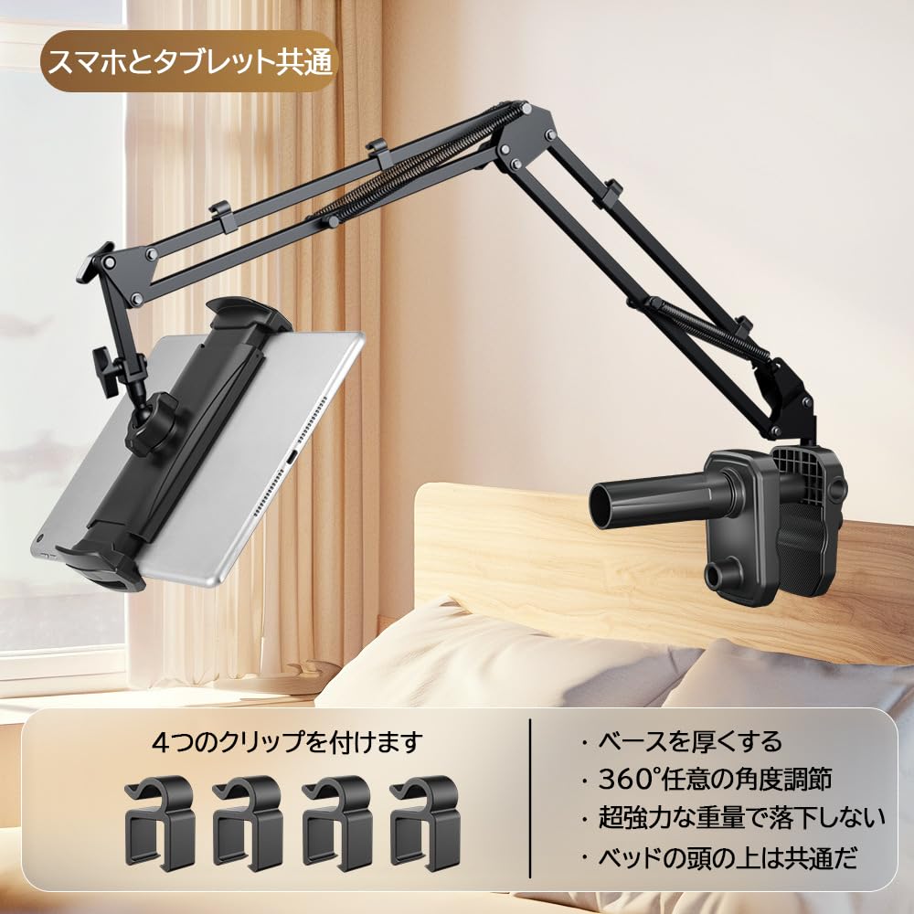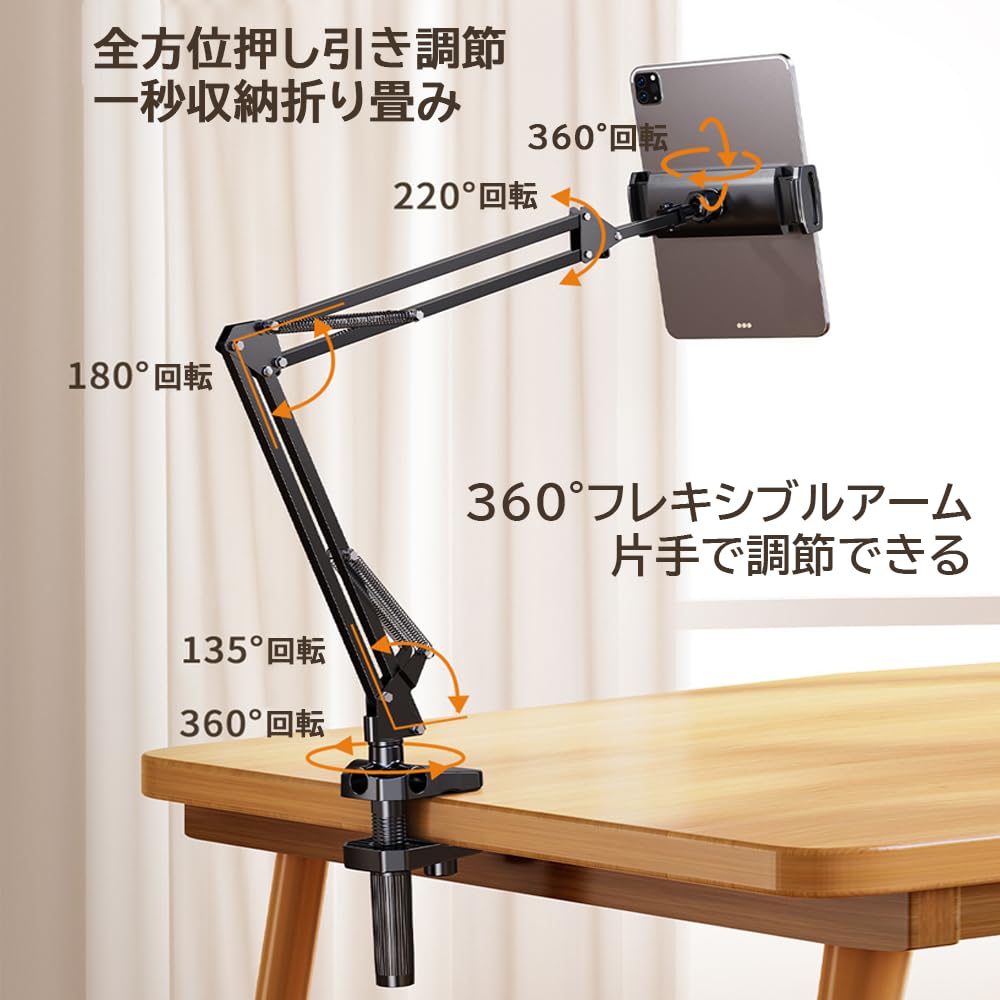 YFFSFDC タブレットスタンド 折り畳み式 4関節 360°回転 タブレット アーム 寝ながら スマホスタンド 自由角度調整 卓上スタンド 滑り止め 在宅仕事 つくえ 机 省スペース 4-12.9インチ全機種対応 iPad/iPhone/Switch/Kindle対応 (黒)