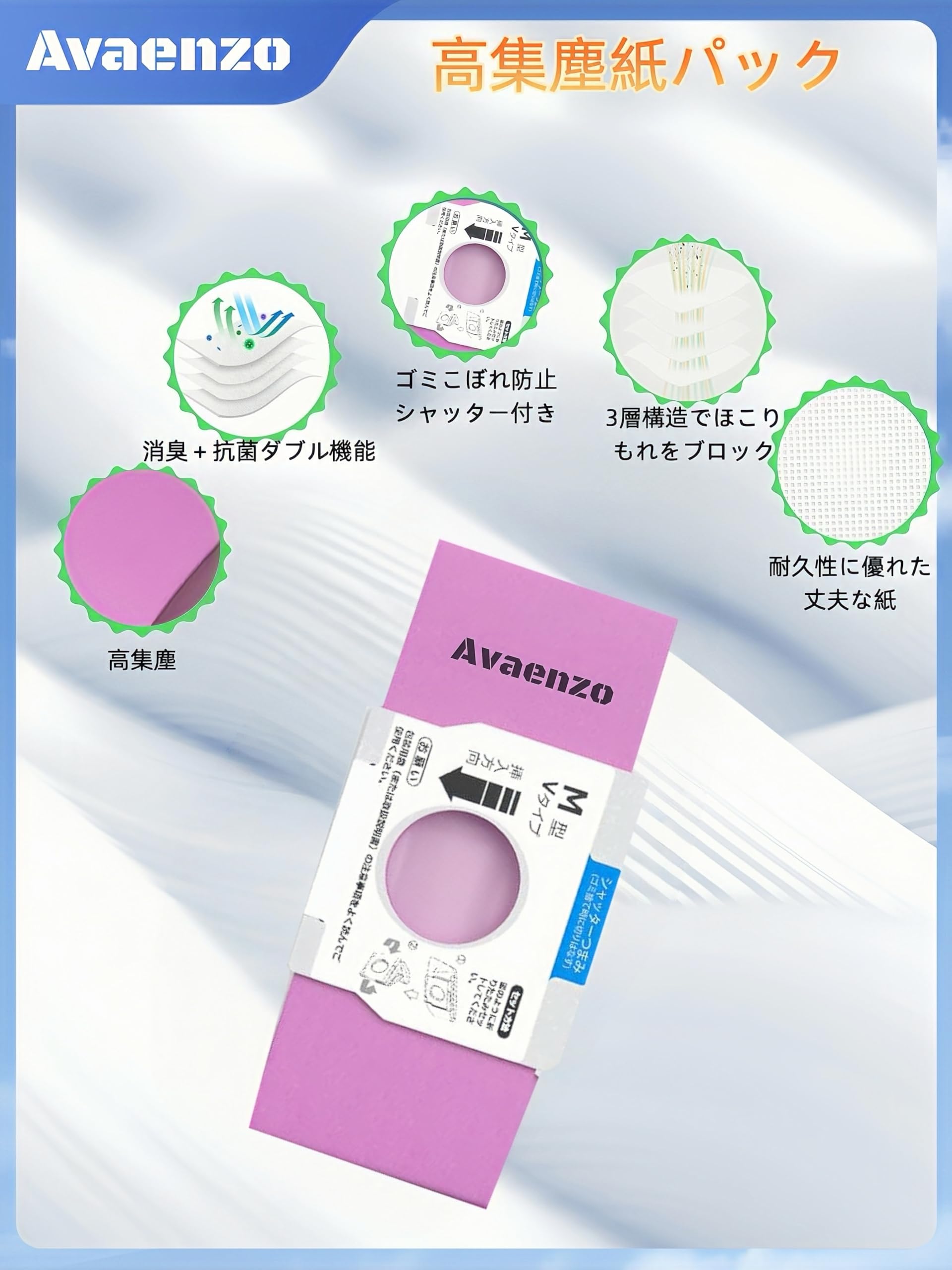 ⭕ 高密度3層構造フィルター 高密度3層構造フィルター採用による優れた通気性と粒子保持性を実現。 → 微細粉塵の捕捉効率向上と吸塵抵抗低減を両立。 ⭕ アレル物質ブロック性能 花粉・ペットダスト・ダニ死がい等の0.5μm以上粒子を効果的に閉じ込め。 → 排気クリーン化により作業環境を改善(※HEPA基準非適用)。 ⭕ ごみこぼれ防止シャッター付き パック交換時に付属シャッターがダストの飛散をブロック。 → 二次汚染リスクを低減。 ⭕ 約2ヶ月分の大容量設計 標準家庭使用で最大60日間のごみ貯留を可能にし、交換頻度を削減。 ⭕ 確かな互換性 1989年以降発売のPJシリーズ(例:MC-PJ22A-H)に適合。 ※純正品AMC-NC5/DS2/NC2/NS2/S2の代替利用実績あり。