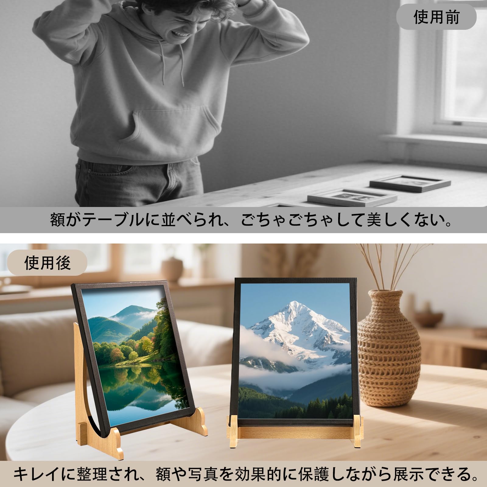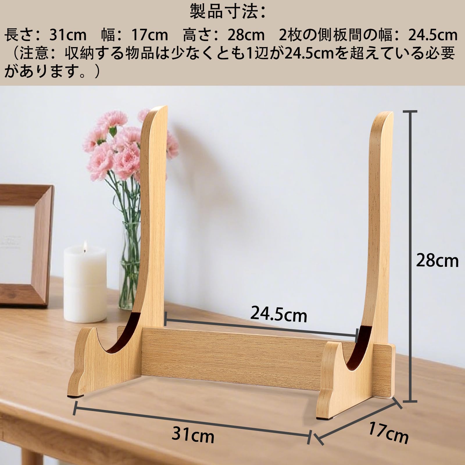 写真立て 遺影立て 木製 組み立て 高さ28cm マット遺影スタンド 額縁立て 皿立て 額立て 大型 写真スタンド