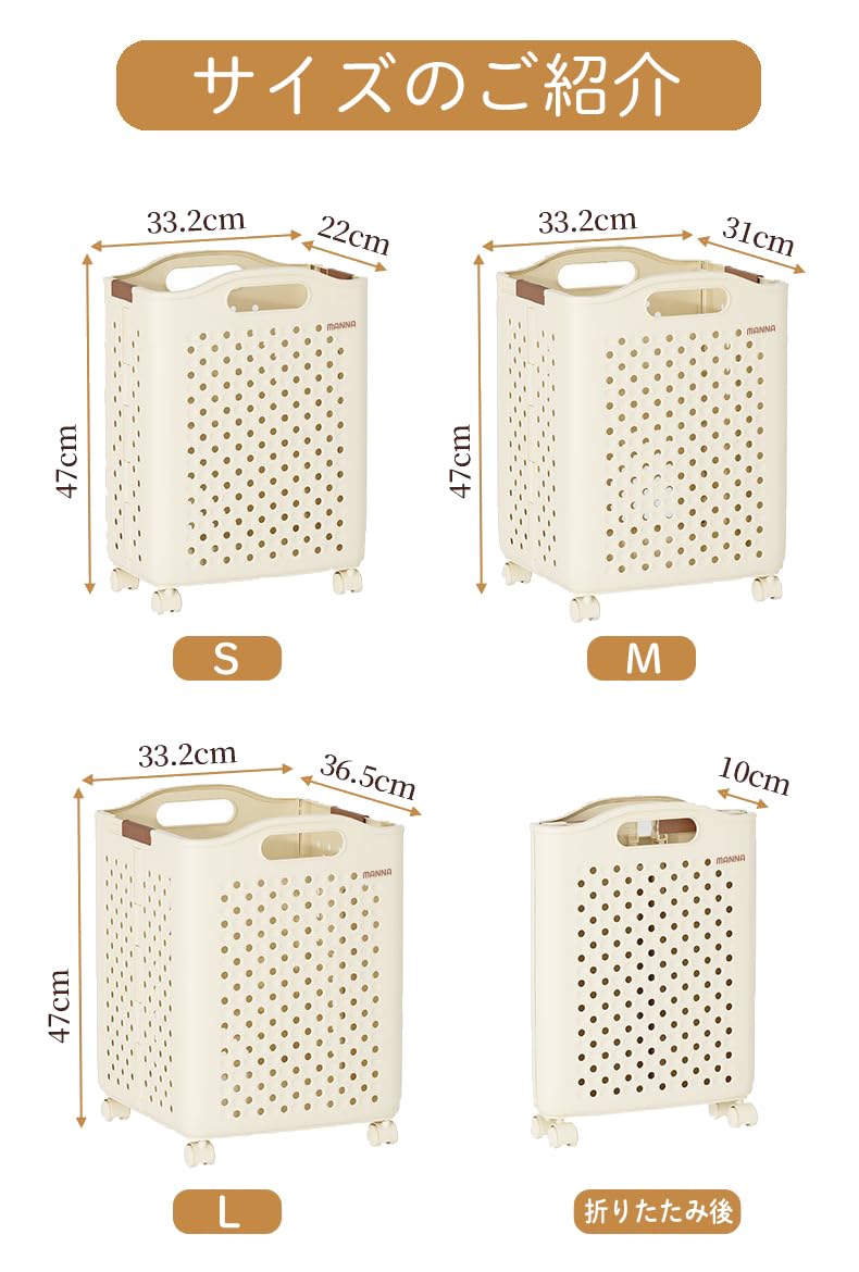 このランドリーバスケットは、折りたたみ式でキャスター付き、一人暮らしから大家族まで対応可能な3サイズ展開です。 高品質PP素材を使用し、耐久性が高く変形しにくい設計。スリムで大容量なので、部屋のスペースを有効に使いながら洗濯物をまとめて収納できます。 通気性のあるメッシュデザインで湿気を防ぎ、清潔に保てます。キャスターと取っ手付きで、洗濯物の移動も簡単。 一人暮らしでも、家族全員分でも、快適に使えるランドリーバスケットです。