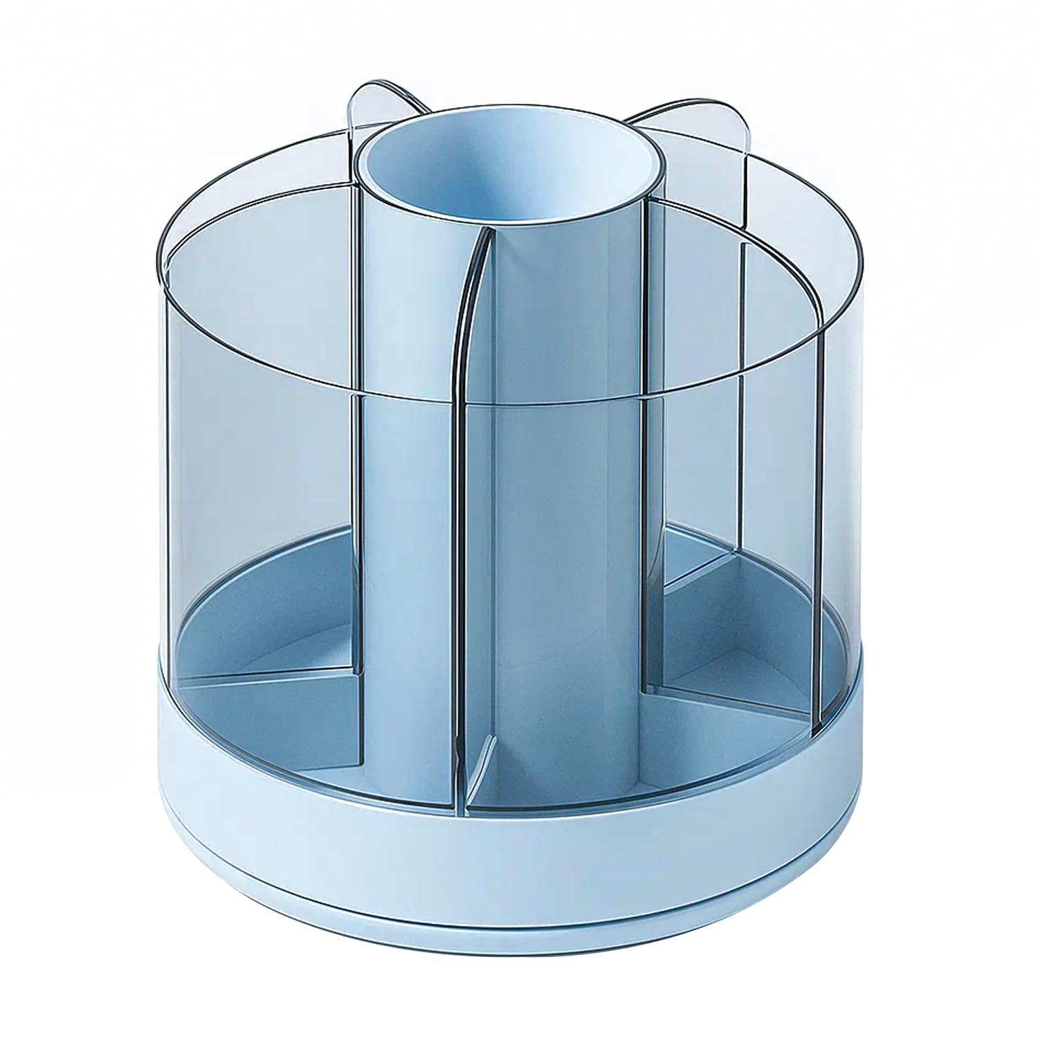 DoocliB 透明 ペン立て 蓋付き ペンホルダー 360度回転 デスクオーガナイザー(青)
