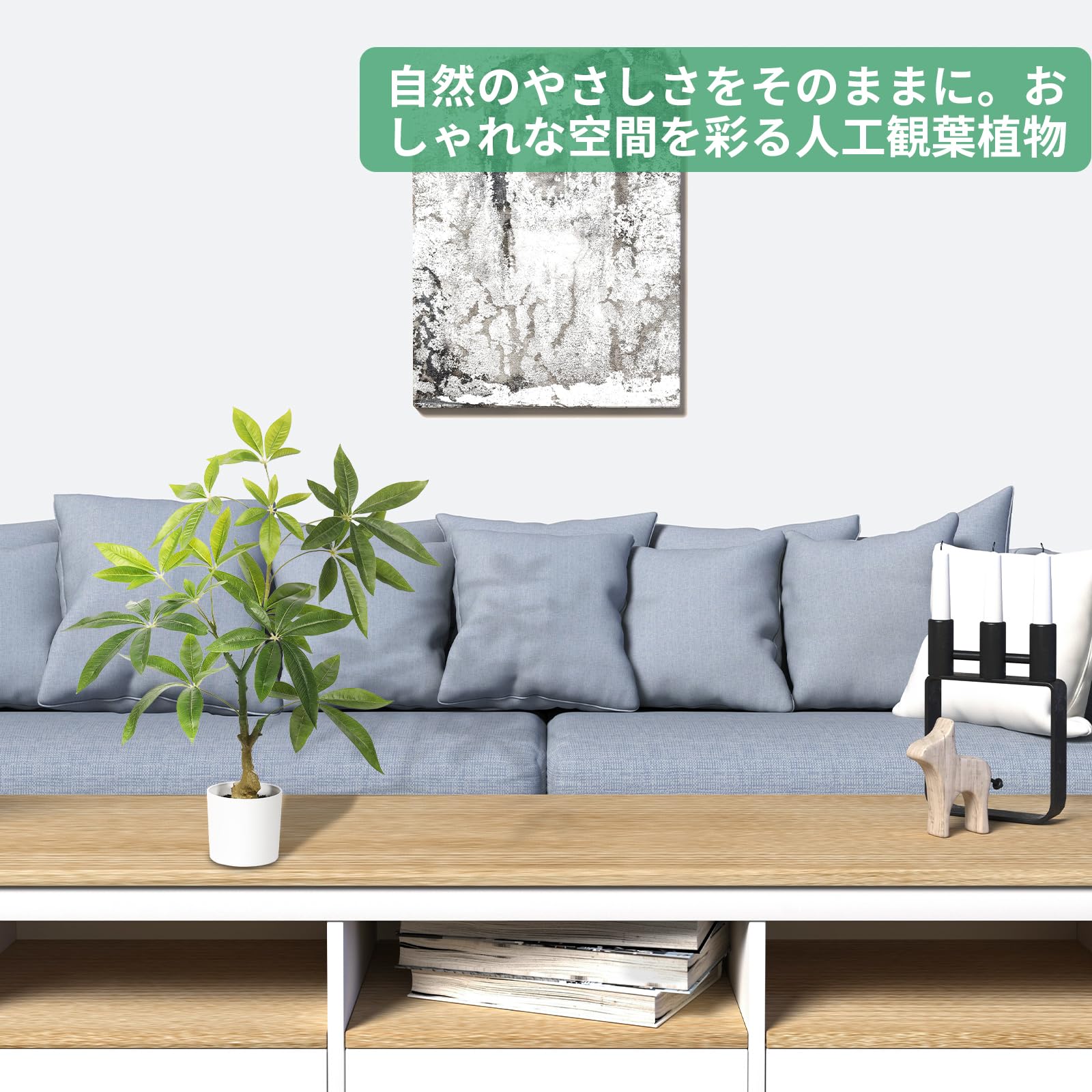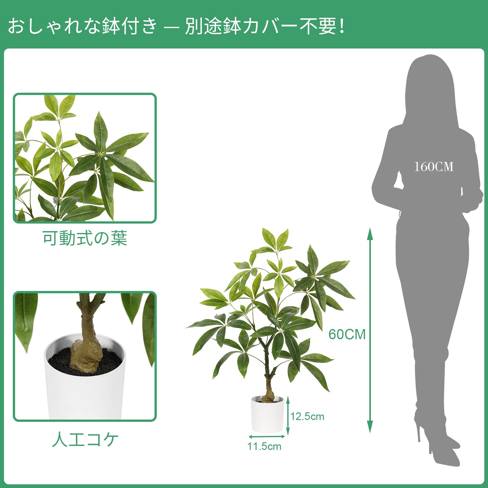 FEELEAD パキラ 人工観葉植物 フェイクグリーン 観葉樹 パキラ 多幸の木 高さ60cm 光触媒 空気清浄 おしゃれ インテリア ホーム オフィス デコレーション 観葉植物 室内 装飾