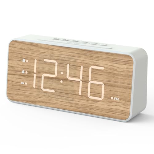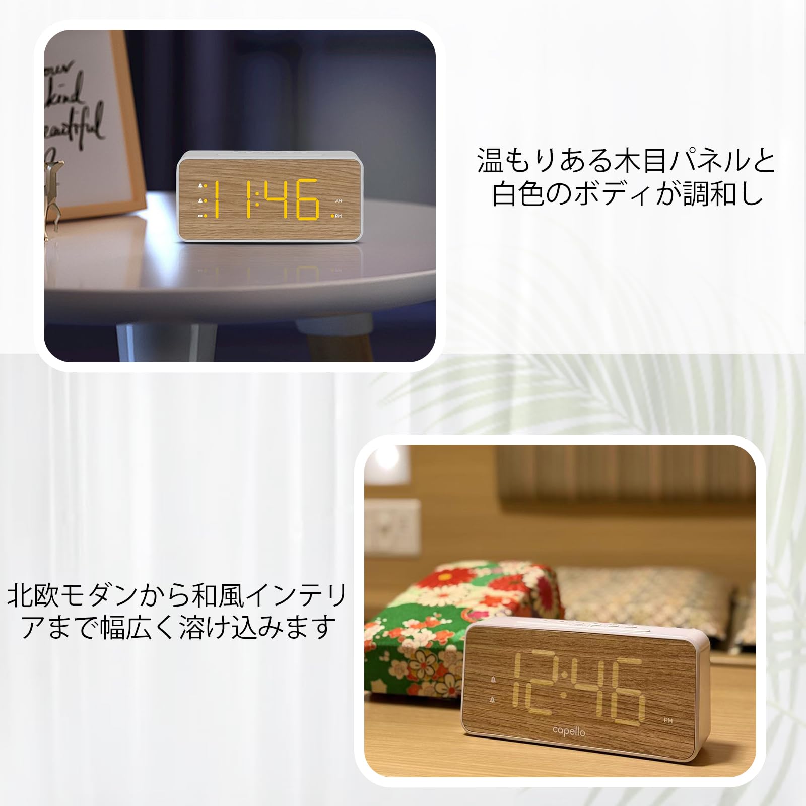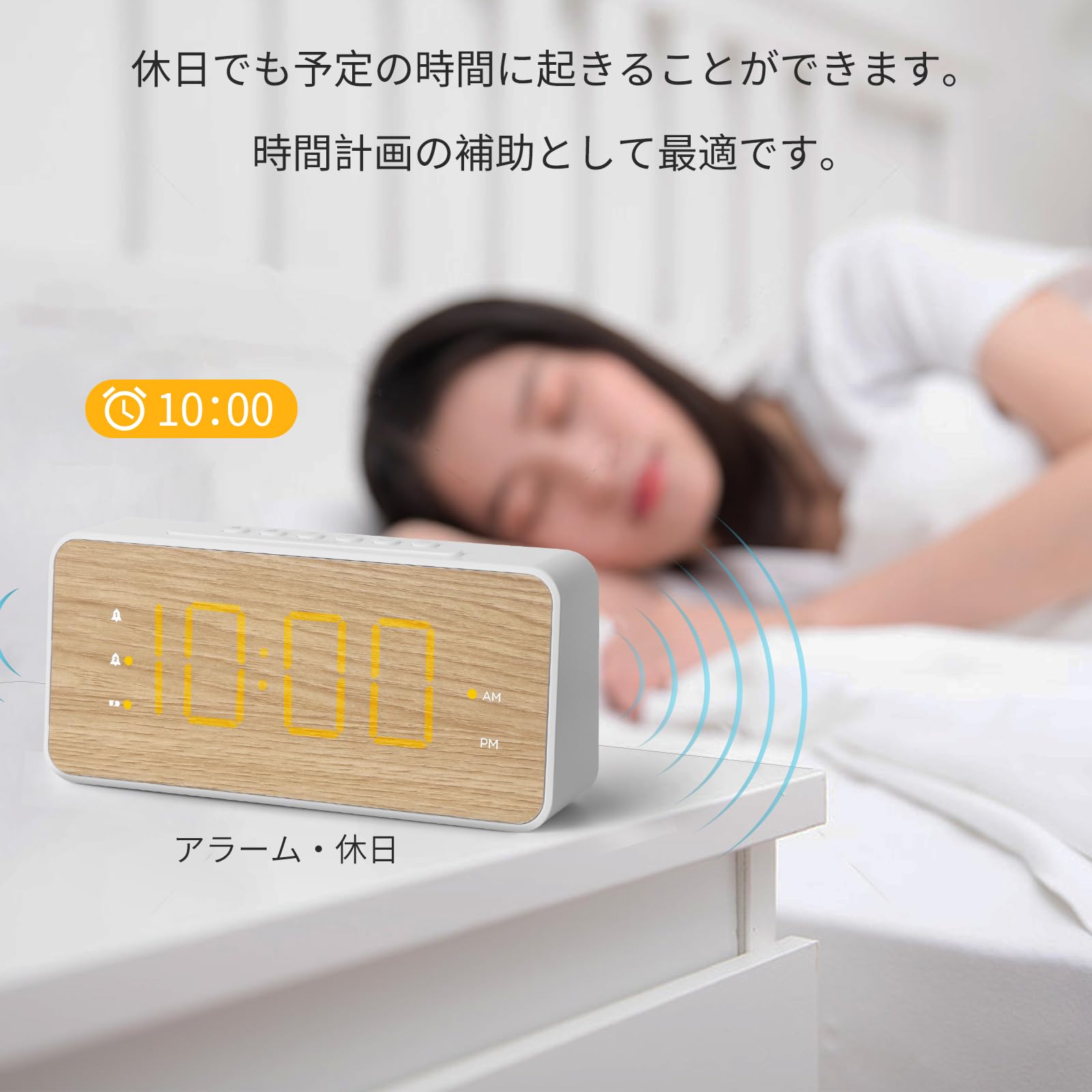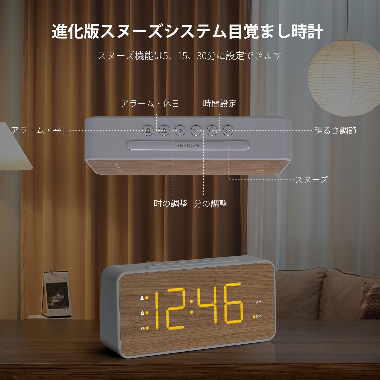 北欧風 木目調 デジタル目覚まし時計 大画面 led時計 3段階調光 USB-A & USB-C充電 デュアルアラーム スヌーズ機能 停電バックアップ ベッドサイド/卓上/リビング用
