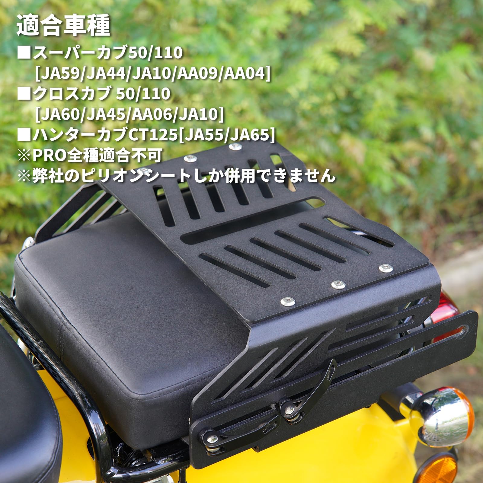 HI-LINE スライドキャリア+ピリオンシートセット ハンターカブ CT125 クロスカブ CC50 CC110 スーパーカブ50/110 バイクリアキャリア トップケースキャリアタンデムシート増設リアシート ワイドシート 金属 丈夫 一体感 荷台 外装 日本語説明書付き (艶消しシートセット)