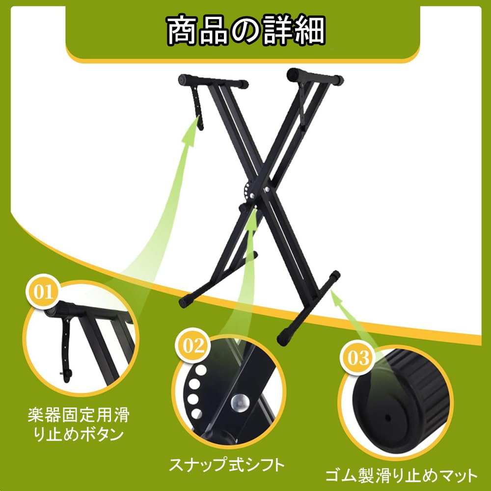 KAKETE キーボードスタンド X型 6段階高さ調整可能 電子Xピアノスタンドデタッチャブル 組み立て簡単 キーボード用スタンド キーボード台 シンセサイザー 二重枠X型 ダブルレッグ 54/61/73/76/88鍵 ボード適用 Keyboard Stand ブラック ダブルレッグ 折りたたみ簡単組み立 電子ピアノスタンド 楽器安定し電子オルガン ブラケット取り外し式 (組み立てが必要)