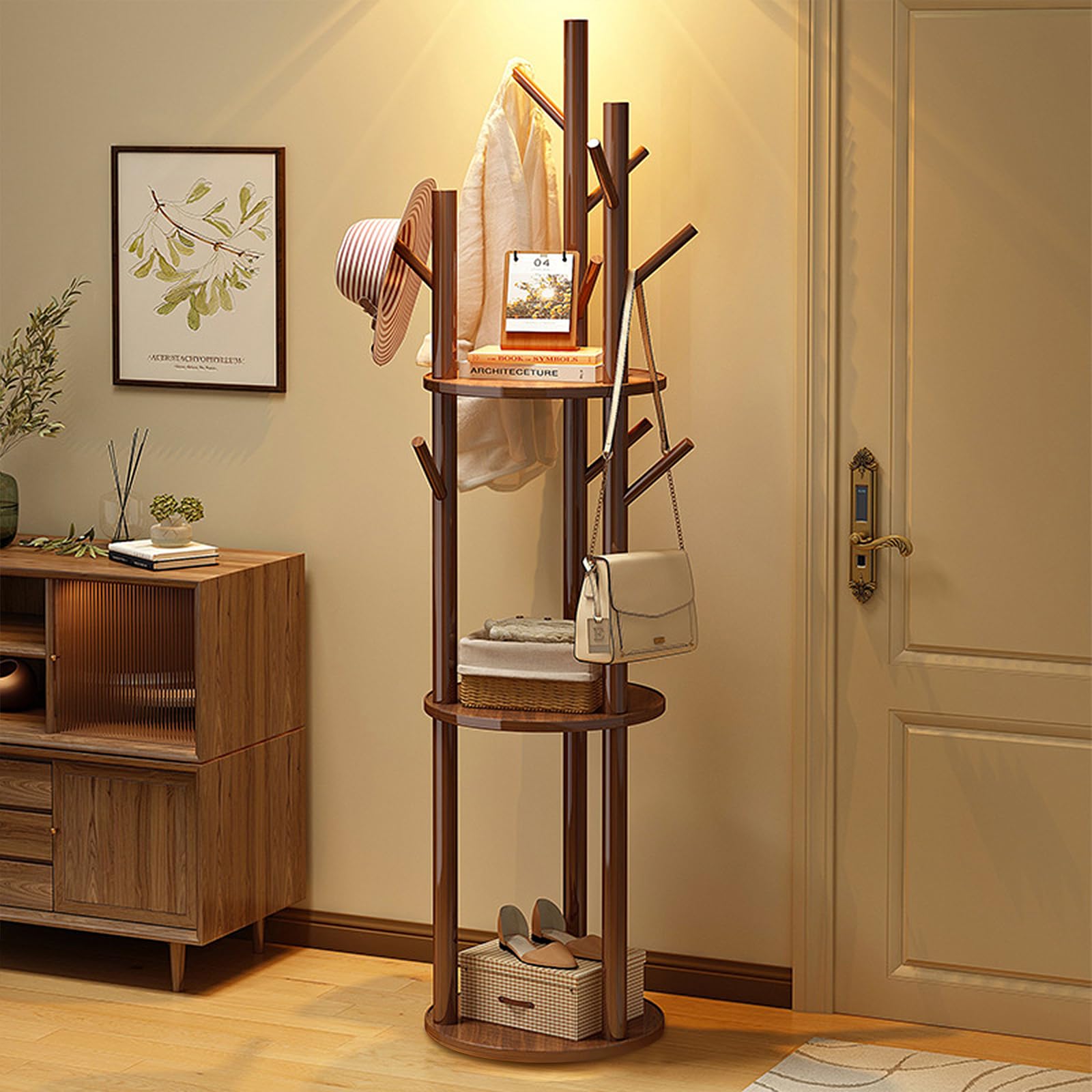 SmartMaster ポールハンガー 木製 コート掛け コートハンガー ハンガーハンガースタンド 洋服ラック 衣類収納 収納ラック3 フック9個 組み立て簡単 倒れ防止 玄関ホール 倒れにくい土台 省スペース 高耐荷重 頑丈 ダークブラウン 直径38×高さ165cm (ダークブラウン)