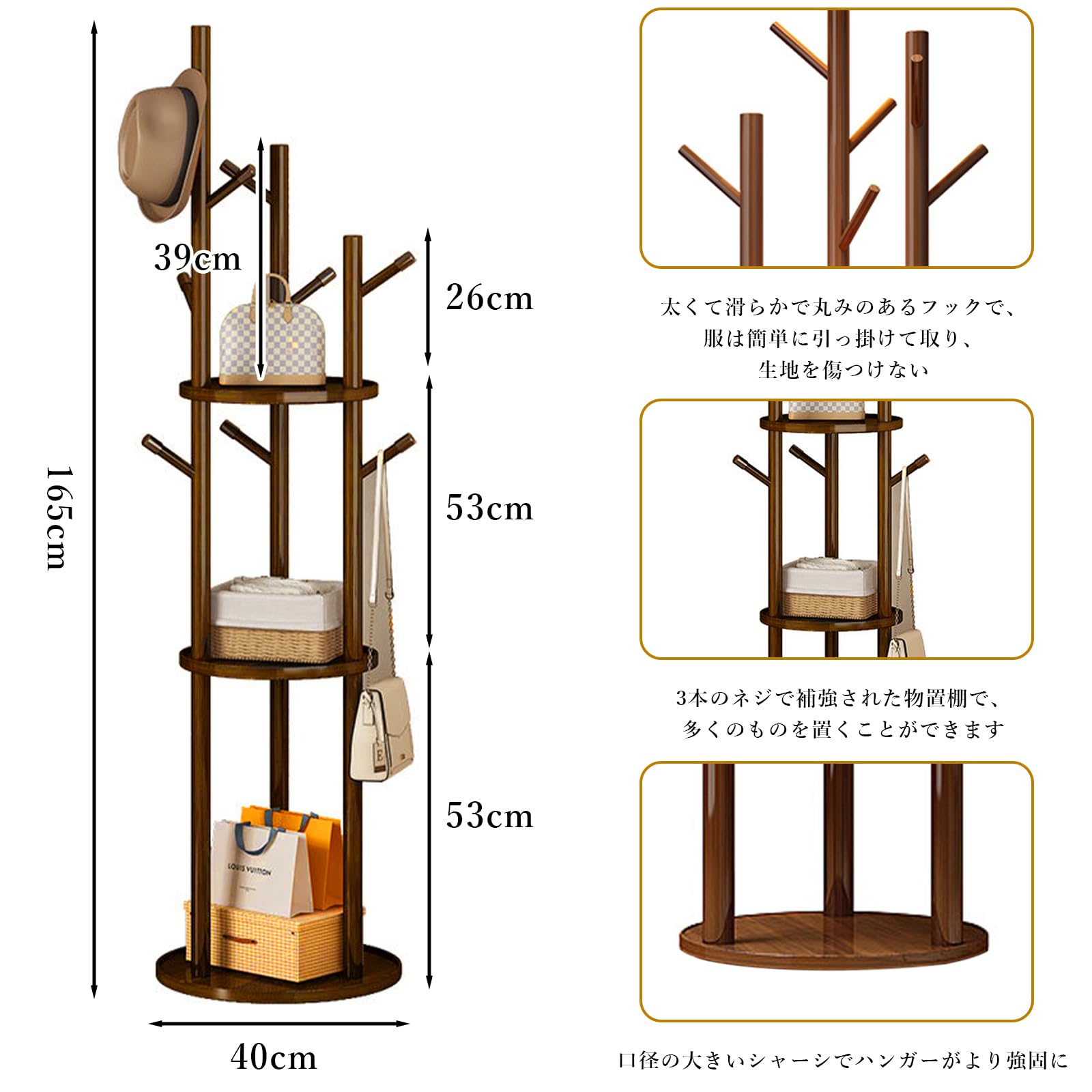 ポールハンガー コートハンガー スリム ポールスタンド かばん/帽子/洋服掛け 木製 北欧 アンティーク 頑丈 ナチュラル おしゃれ ポールハンガーラック 子供 幅40 収納付き コーナー コートラック玄関 賃貸