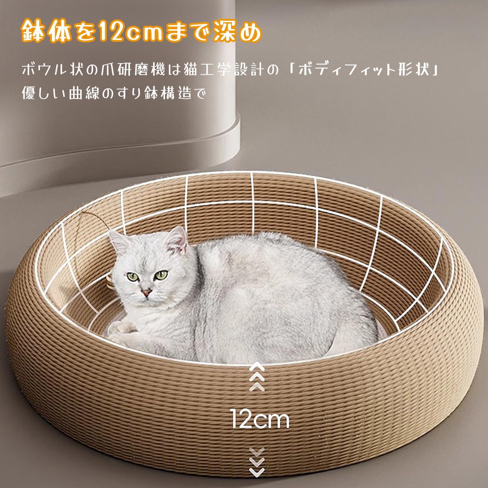 Wallfire 猫 爪とぎ 新型猫用爪研ぎ 猫の爪とぎベッド つめとぎ 天然サイザル麻 猫ベッド 滑り止め 頑丈 安定 家具破壊防止 運動不足改善 ストレス解消 猫用スクラッチャーベッド おもちゃ付き 製品サイズ61cm 爪とぎ好き猫に A