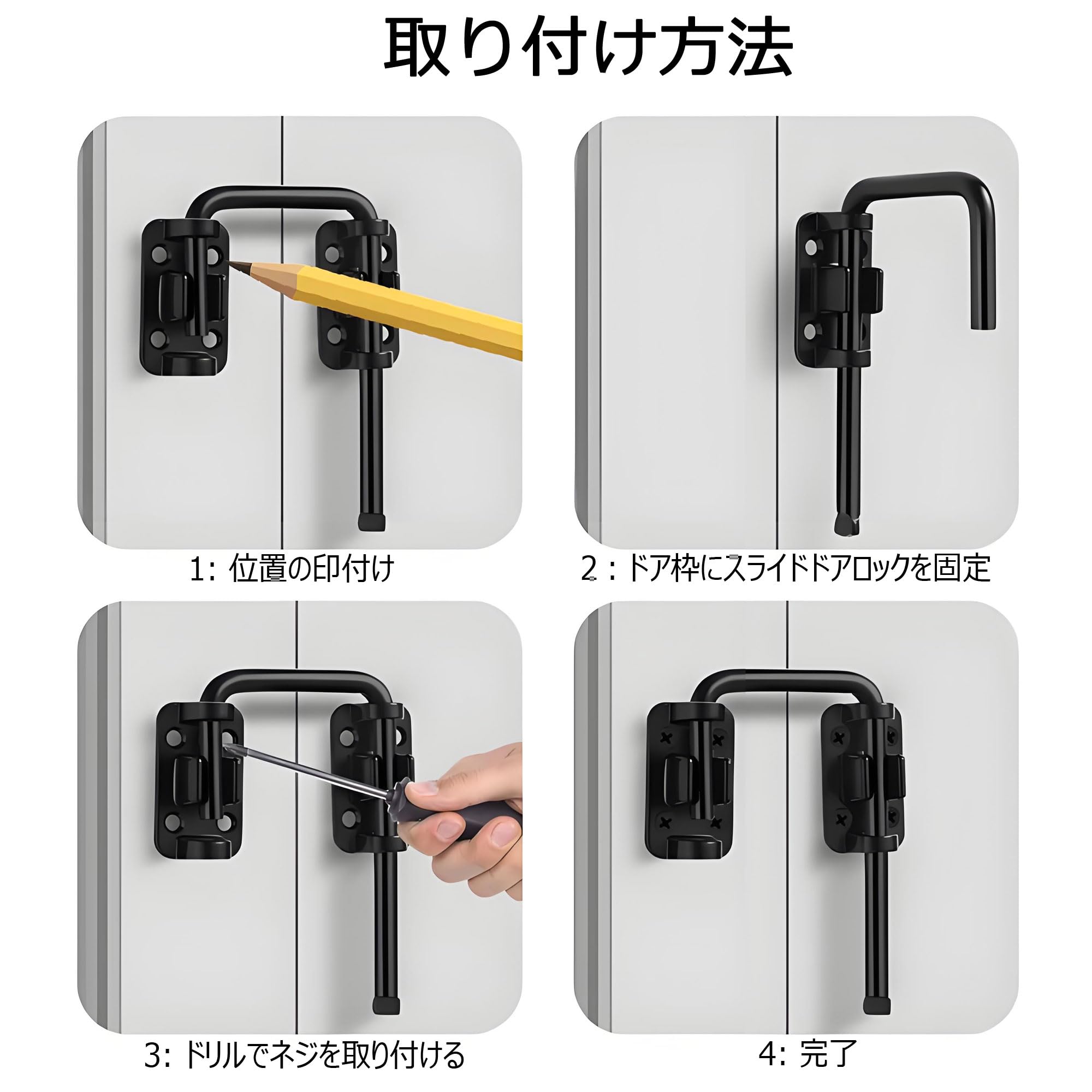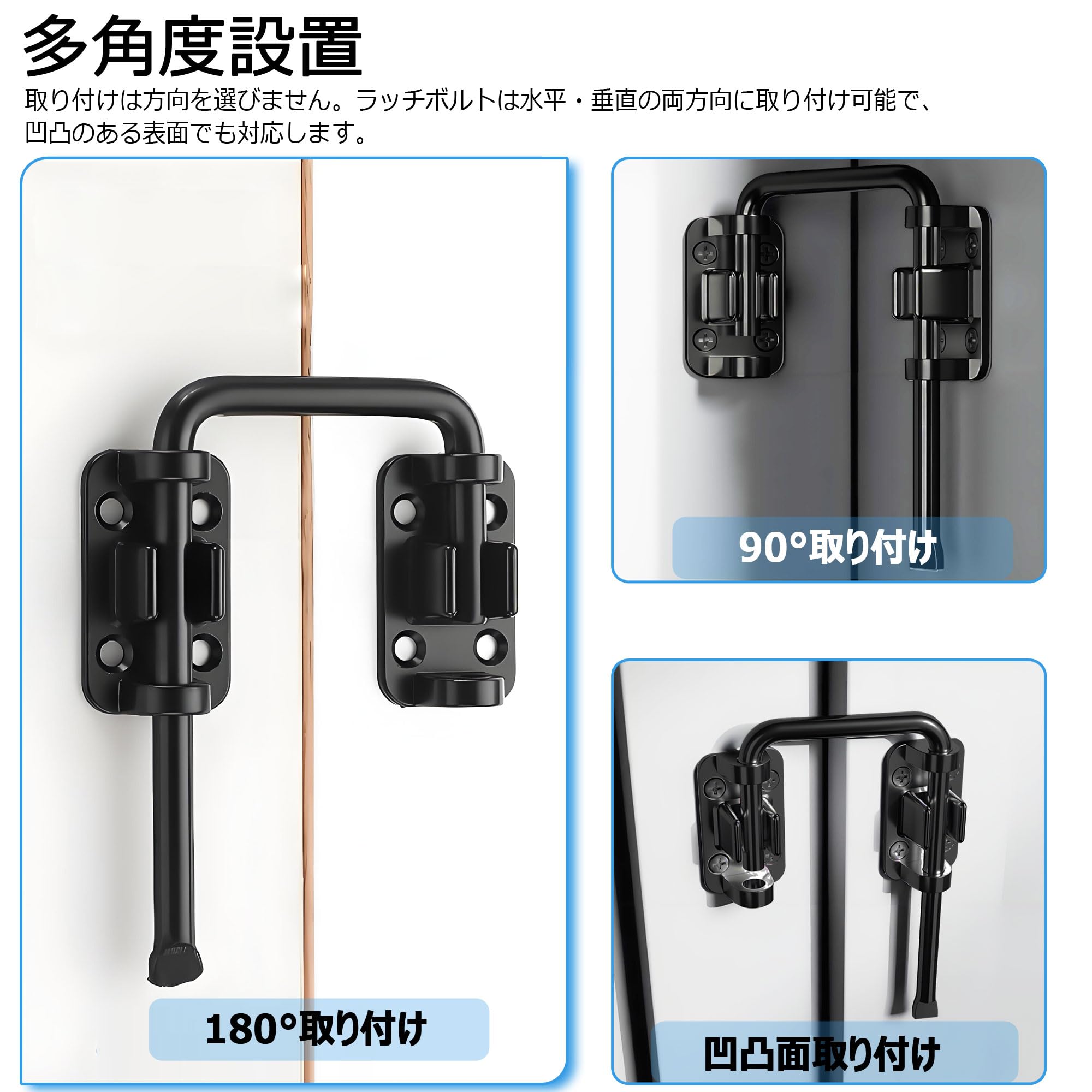 ドアロック 部屋鍵後付け 補助錠 玄関 鍵 3桁ダイヤル式 玄関ドア 鍵 室内ドア 鍵 穴あけ不要 後付け 防犯鍵玄関 暗証番号ロック 引き出しロック 金属製 防犯 金具 防錆 勝手口 防犯 補助錠 収納ボックス鍵 部屋ロック (ブラック, 90°L字型)