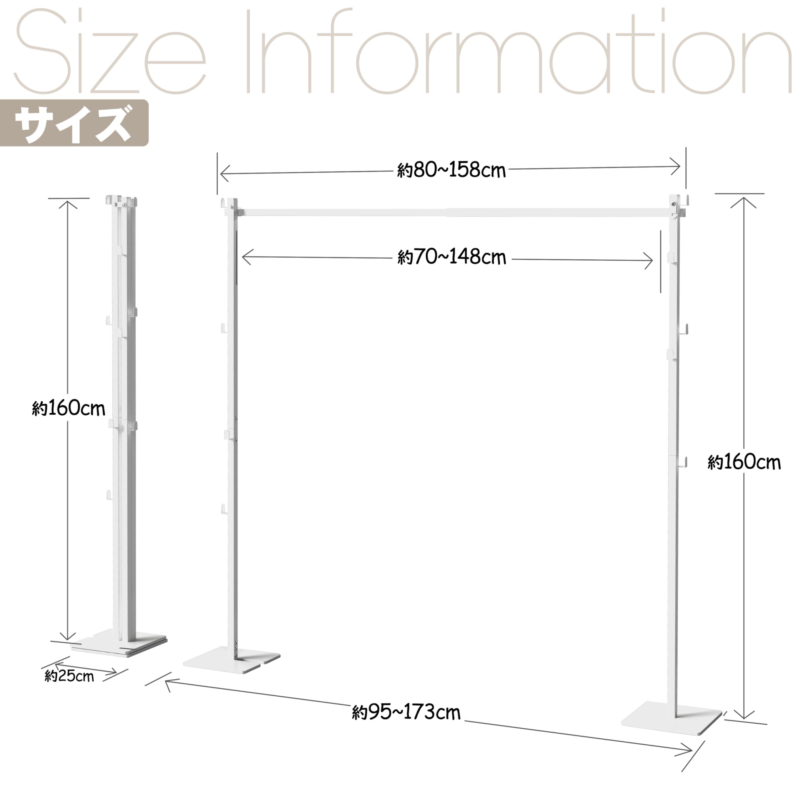 BAOYOUNI 折り畳み 室内干し コンパクト収納 使用時:約W95-173×D25×H160cm 組み立て簡単 ホワイト 3WAY 物干しスタンド