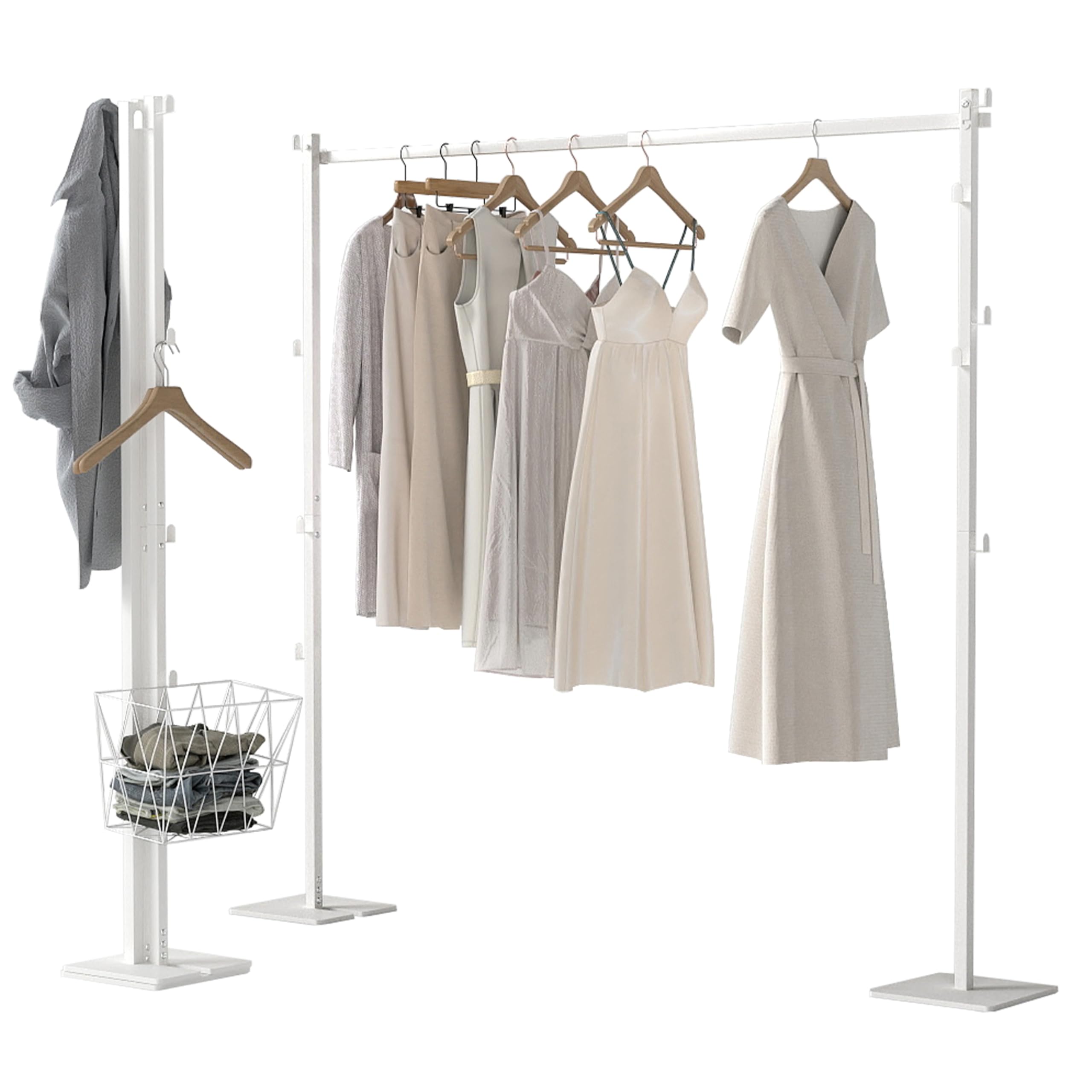 RUB 突っ張り室内物干しポール 簡単ワンタッチ取付 室内物干し つっぱり式 物干しポール ハンガーアーム 洗濯物干し 簡単組み立て ハンガー掛け 高さ110~310cm (ホワイト, 3段ハンガー掛け)
