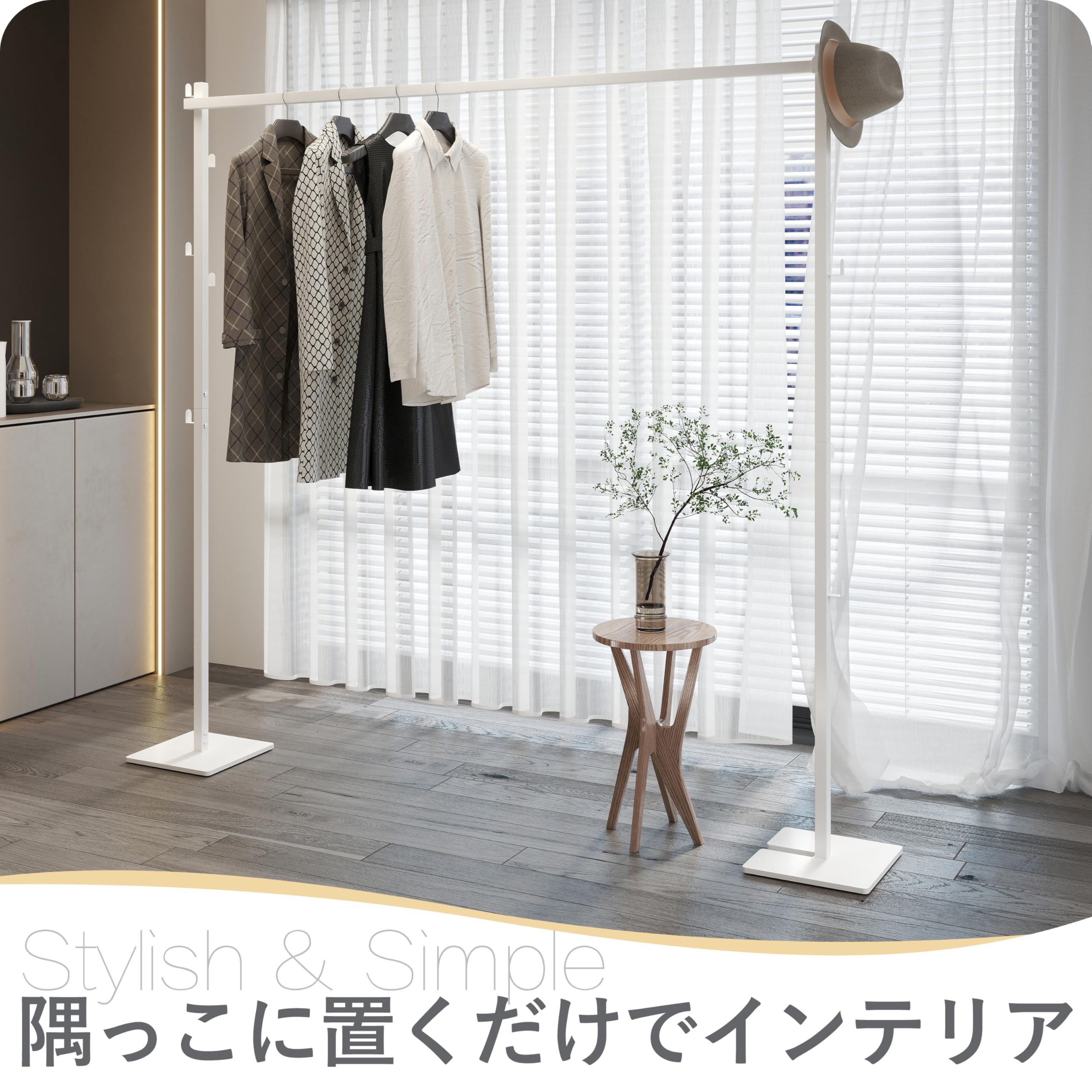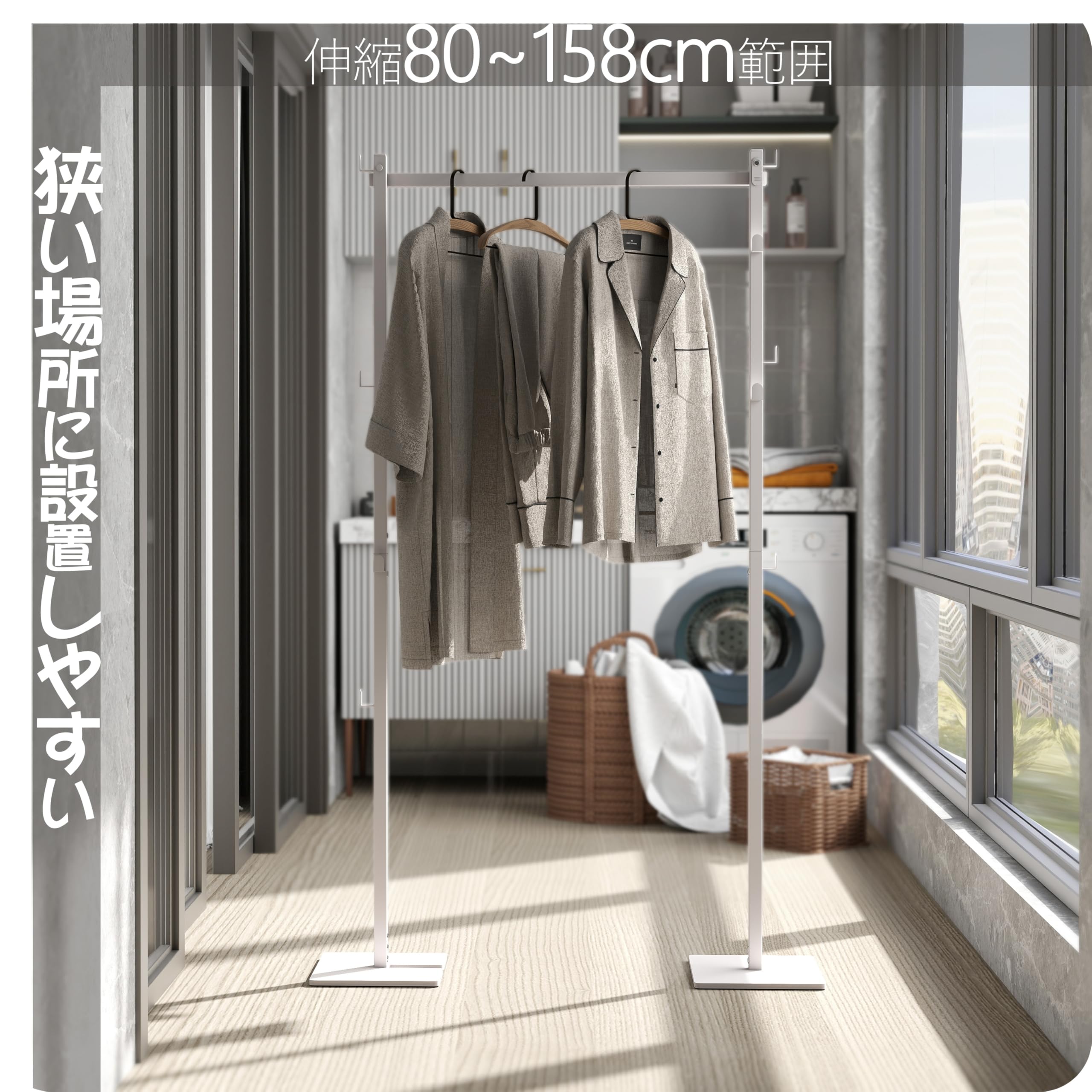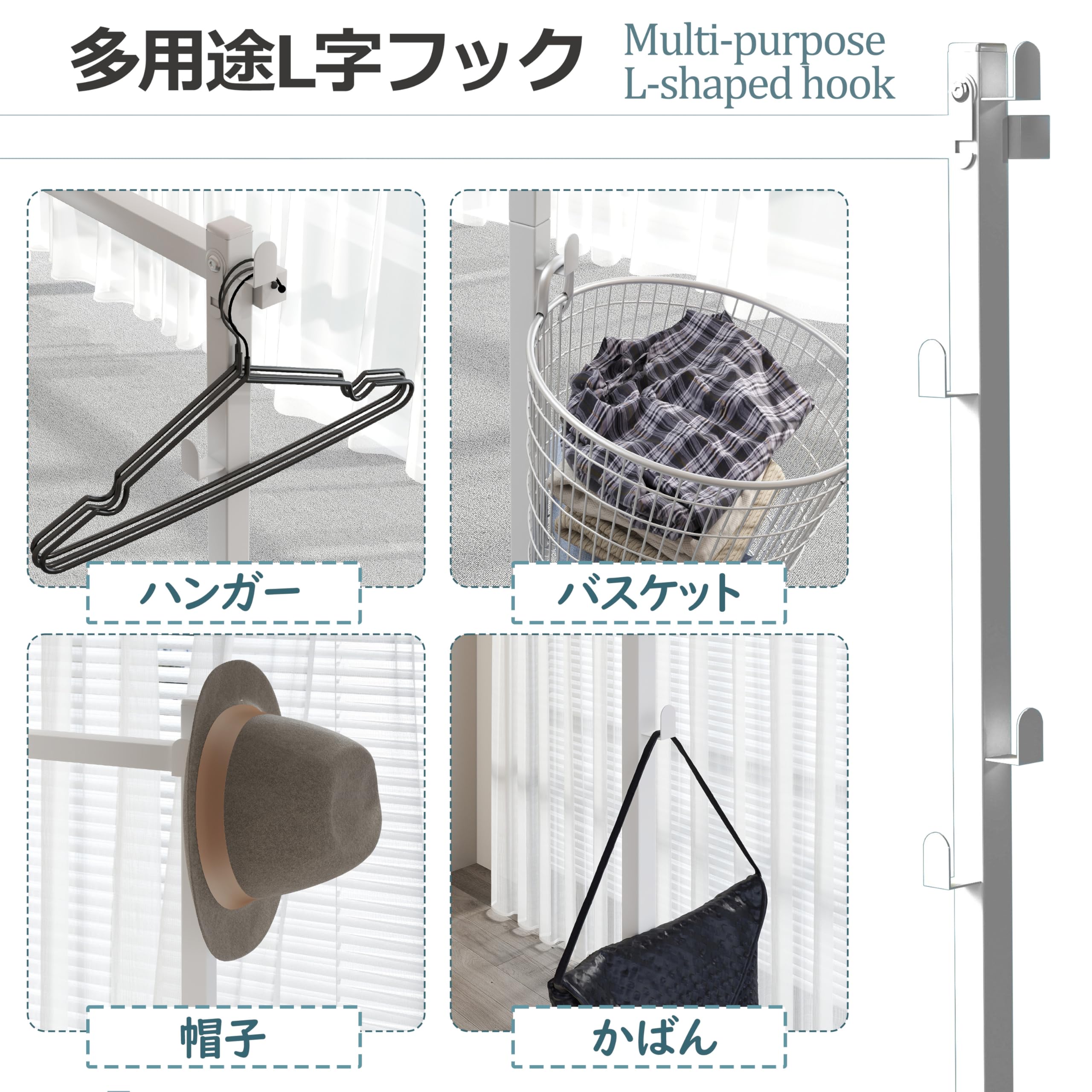 YUYUTORI室内干し 突っ張り棒 ポールハンガーラック (高さ110-310cm) 室内物干し ワンタッチ突っ張り 伸縮自由 全体耐荷重30kg 洗濯物干し 物干し竿 タオルハンガー 省スペース 折りたたみ式翼3個・フック1個付き ホワイト日本語説明書付き