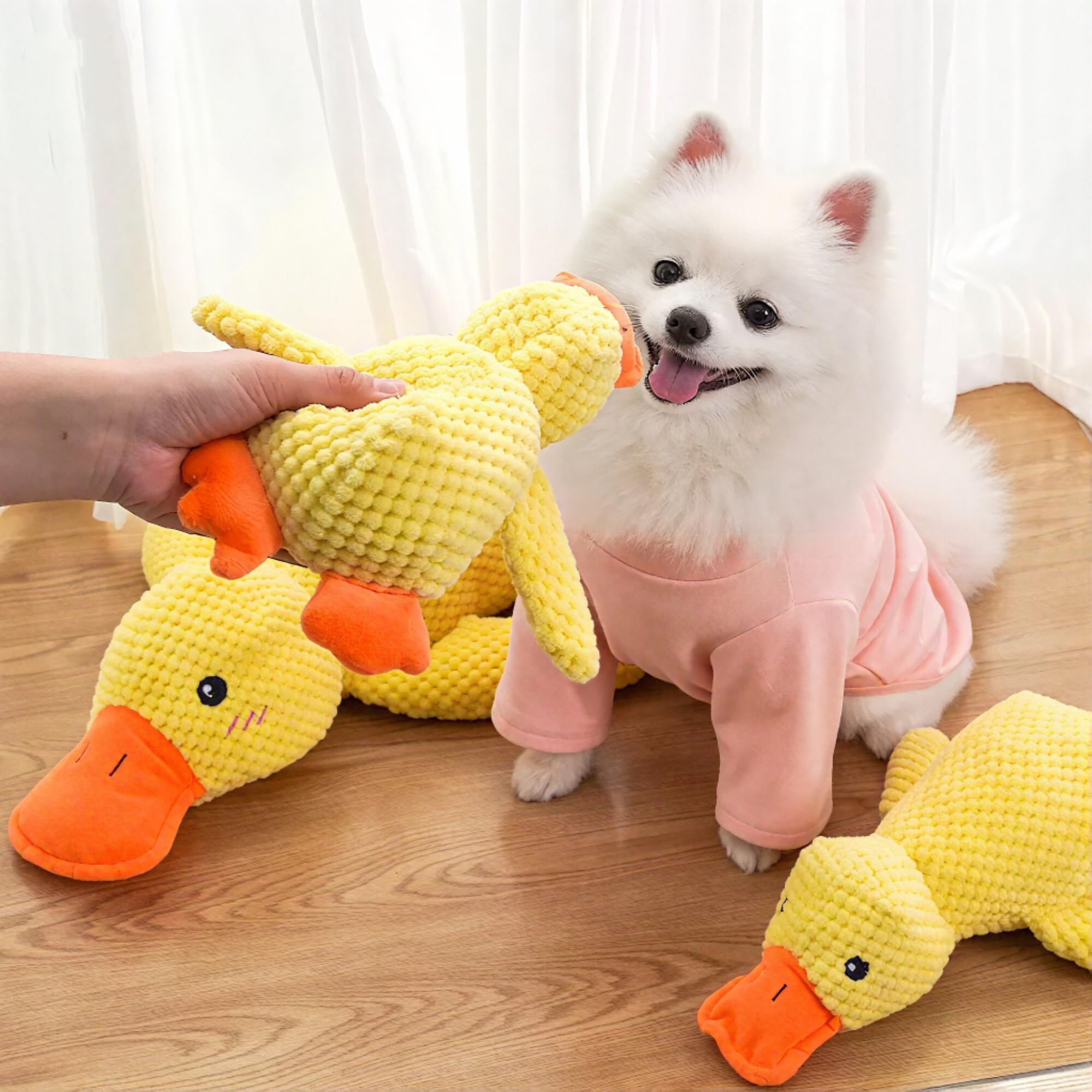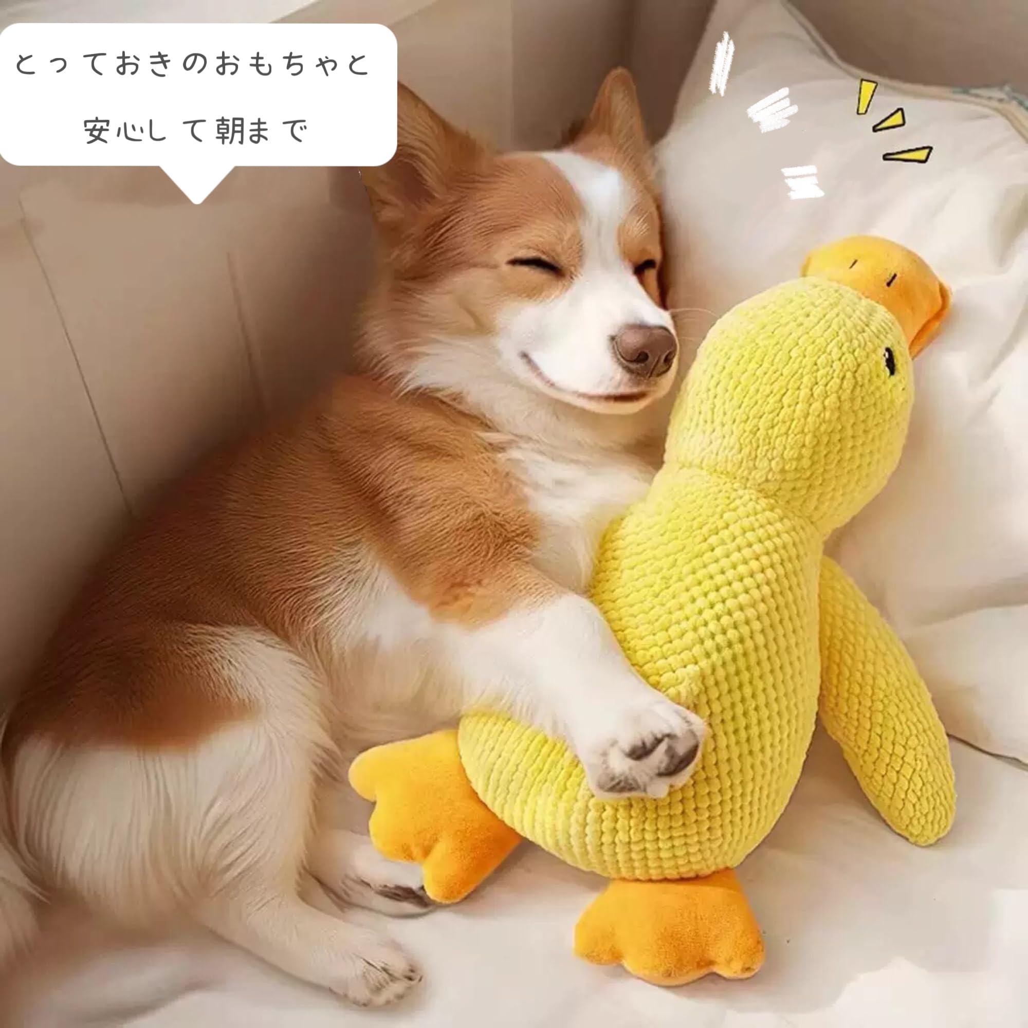 TRAVEYO 犬用ぬいぐるみ アヒル型 45cm 音が鳴る 大型犬対応 柔らかい素材 引っ張り遊び