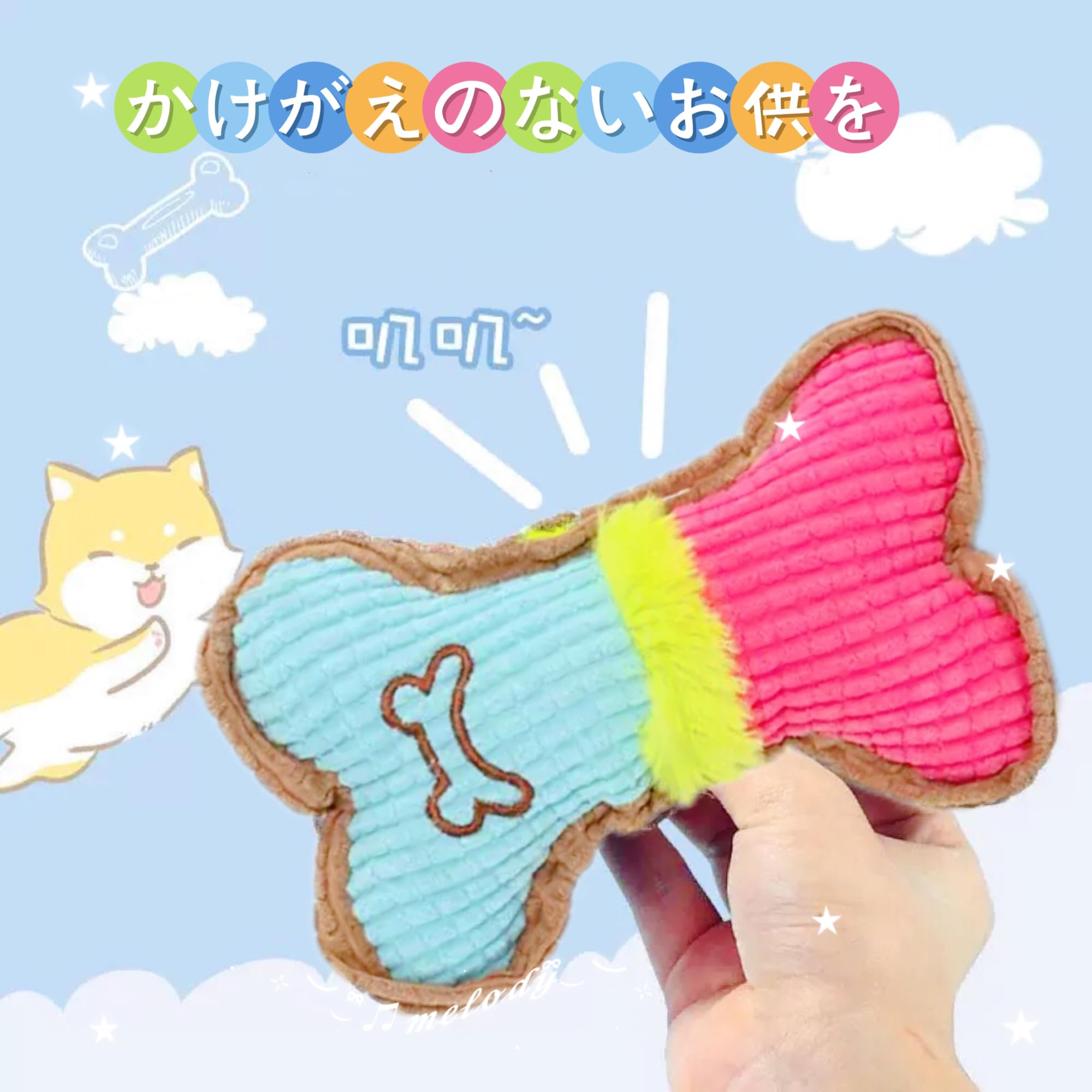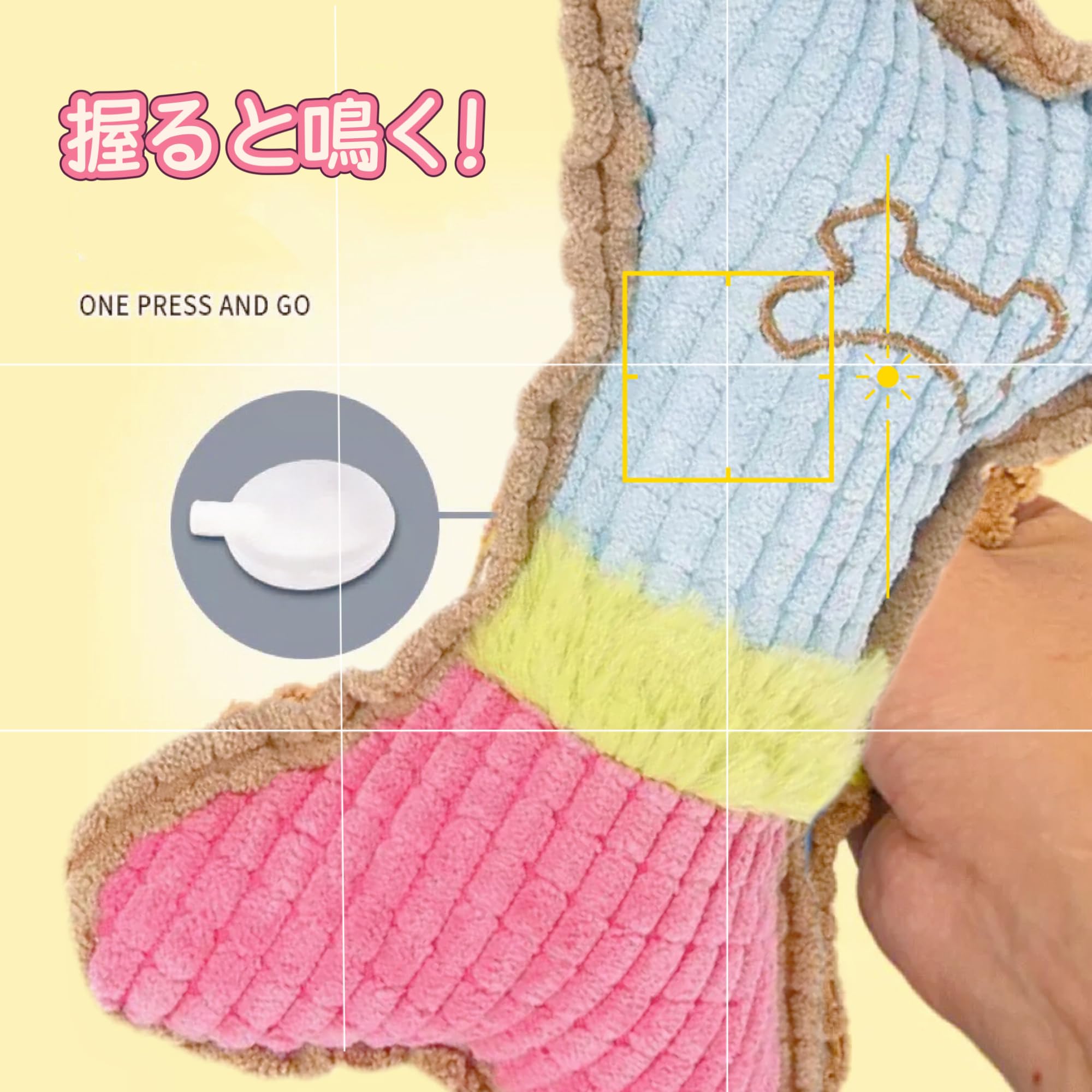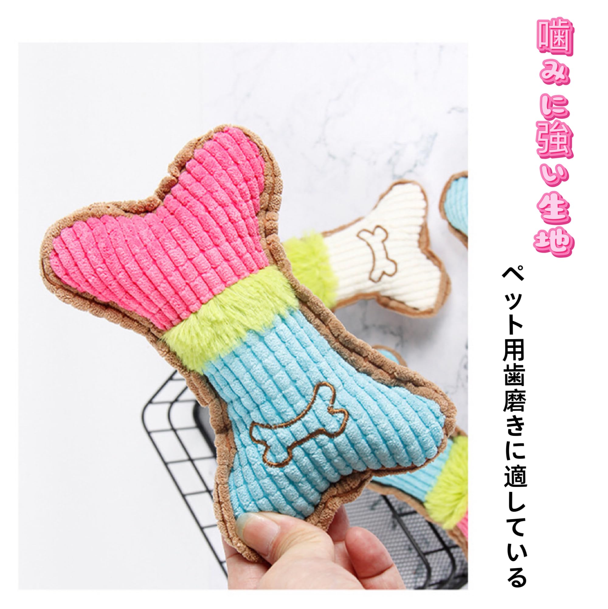 TRAVEYO 犬用ぬいぐるみ ボーン型 17cm 軽量32g 音が鳴る 噛み心地良 コーデュロイ風 小型犬室内遊び ペット用おもちゃ