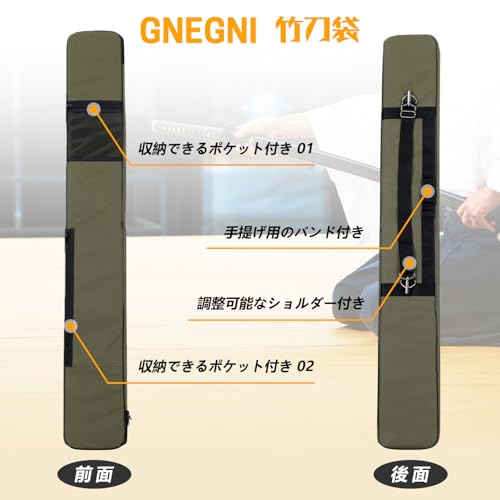 GNEGNI 竹刀ケース 刀袋 剣道 剣袋 収納バッグ 127cm 2ポケット 高級ベルト 日本刀や剣道の竹刀や 釣竿 ポール コスプレ サバゲー でも様々な長物の収納に