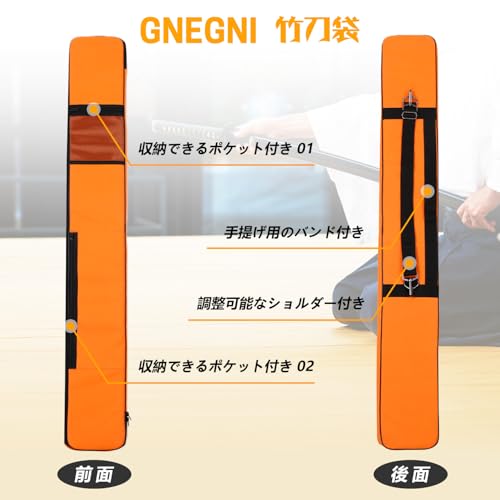 GNEGNI 竹刀ケース 刀袋 剣道 剣袋 収納バッグ 127cm 2ポケット 高級ベルト 日本刀や剣道の竹刀や 釣竿 ポール コスプレ サバゲー でも様々な長物の収納に