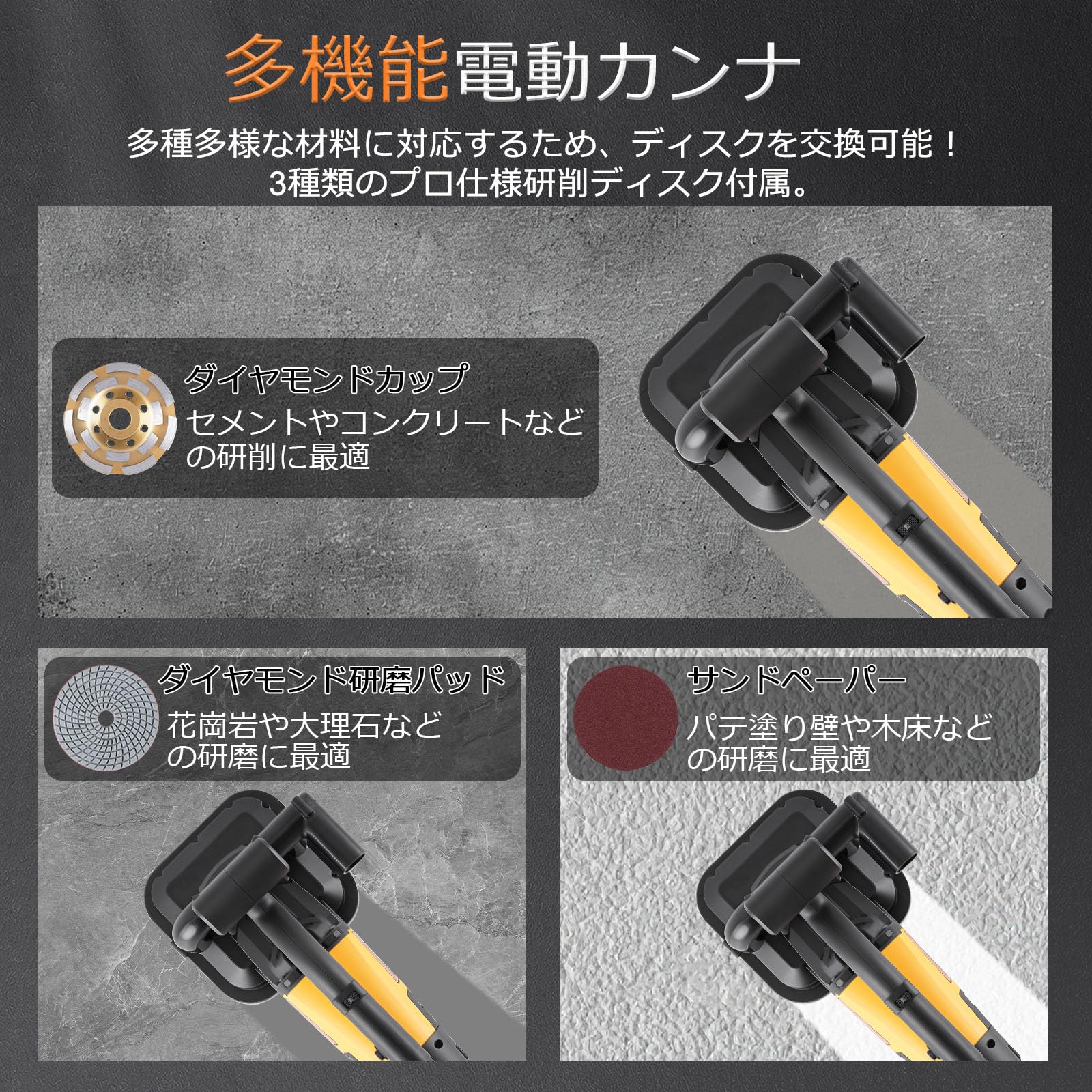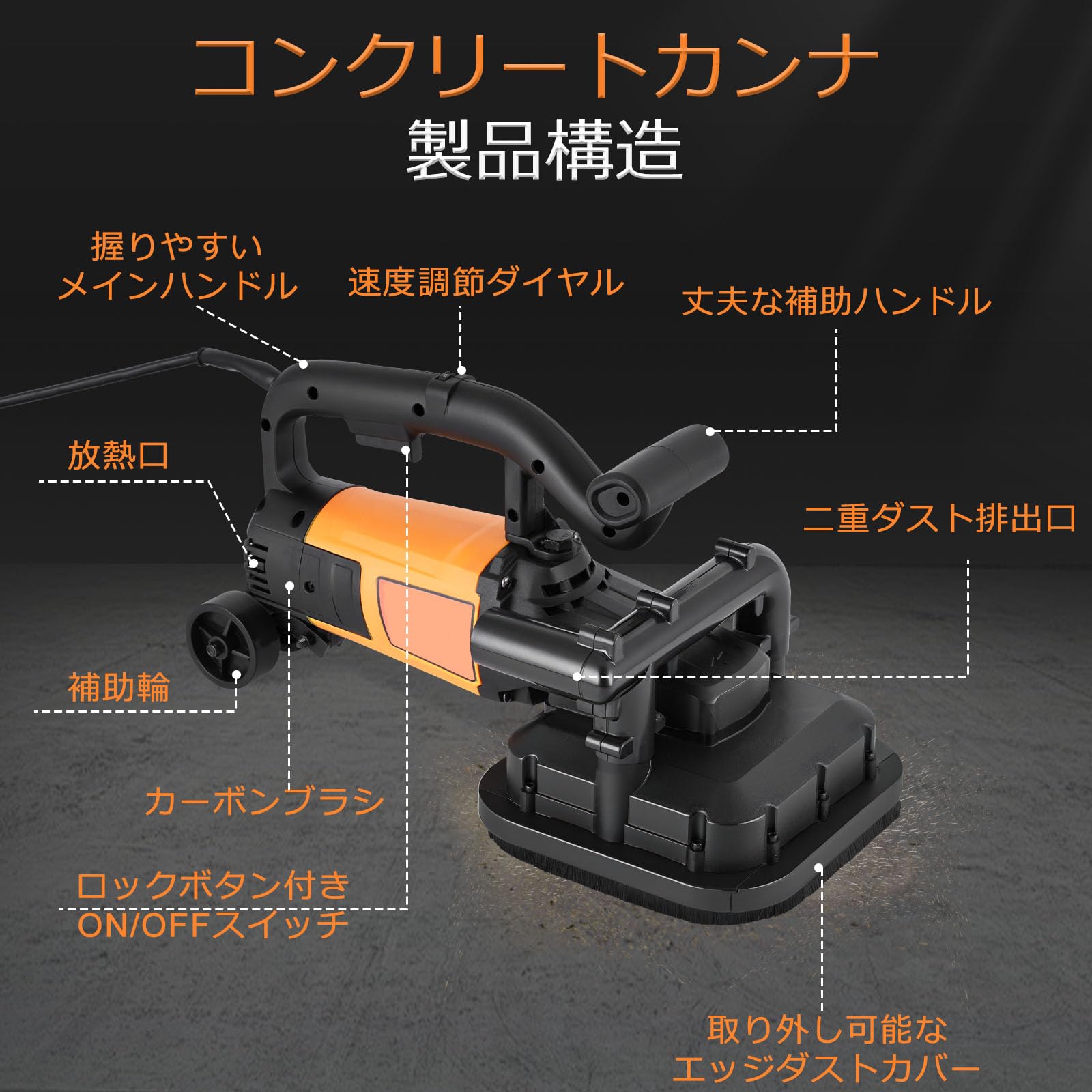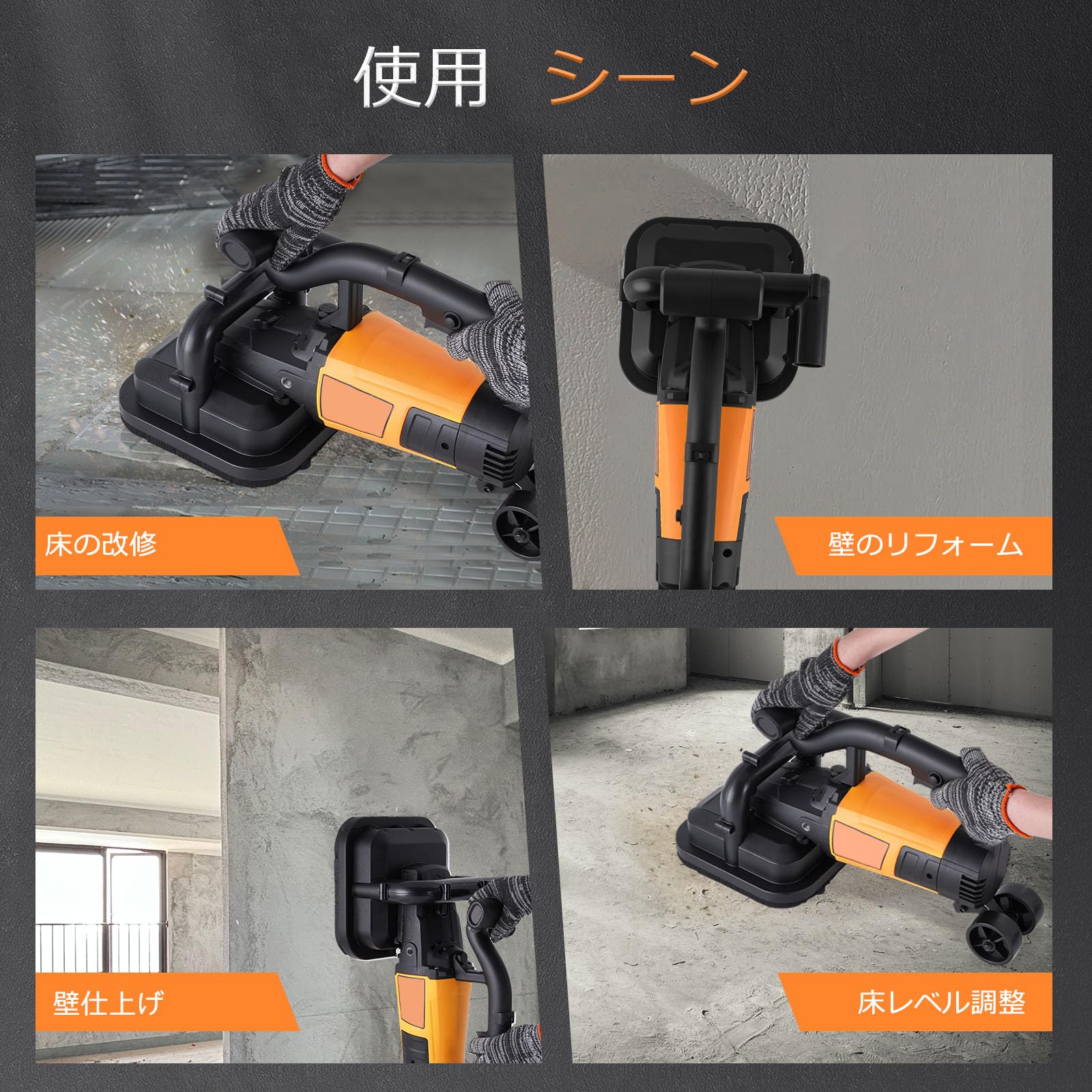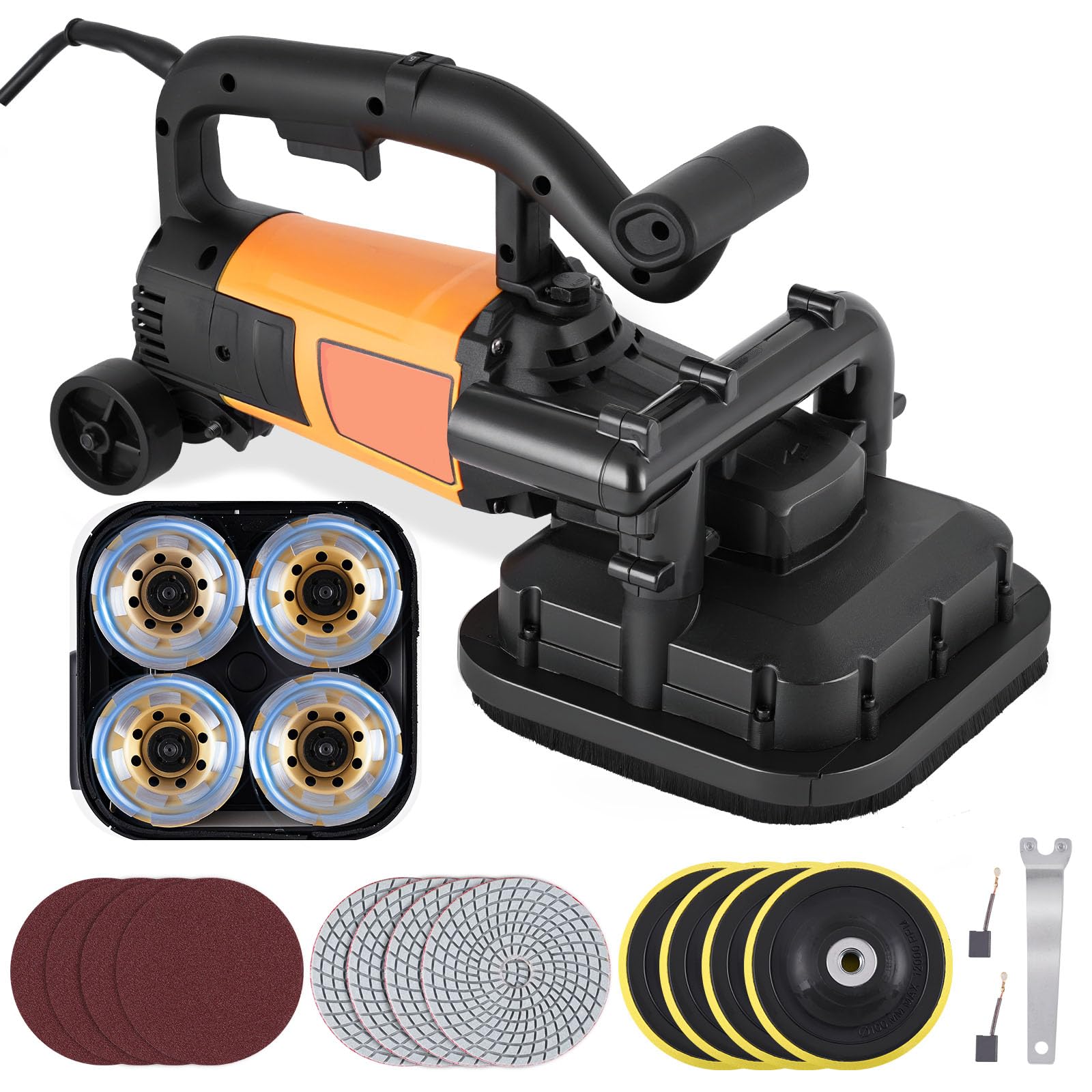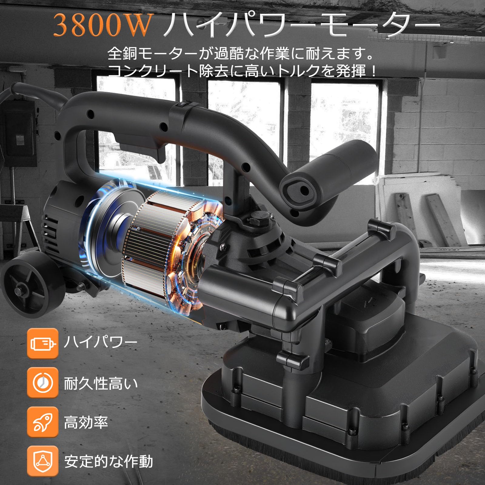 MXBAOHENG 【2025新発売】 コンクリート研磨機 4頭研磨 ポリッシャー 3800w グラインダー 六段変速 0-6000rpm 電動カンナ 粗い研削から精密研磨 補助輪付き 初心者/中級者向き DIY プロ電動工具