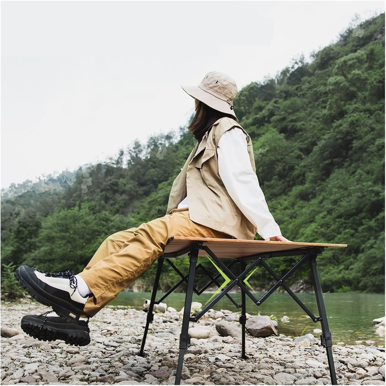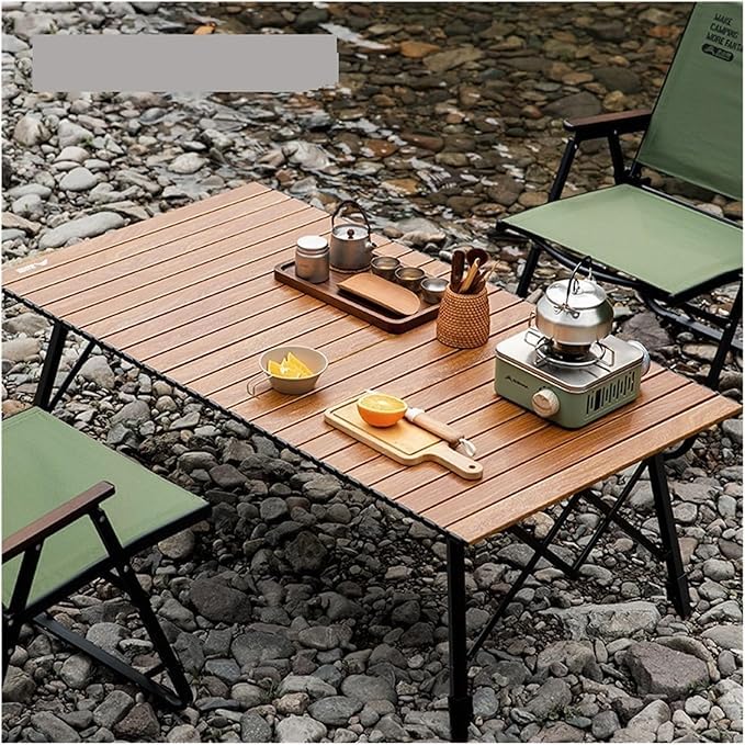 LEESA アウトドアテーブル キャンプテーブル 120×70 折りたたみ ロールテーブル 軽量 アルミ製 ウッド調 木目 ブラウン 耐熱 安定 コンパクト 組立簡単 収納バッグ付