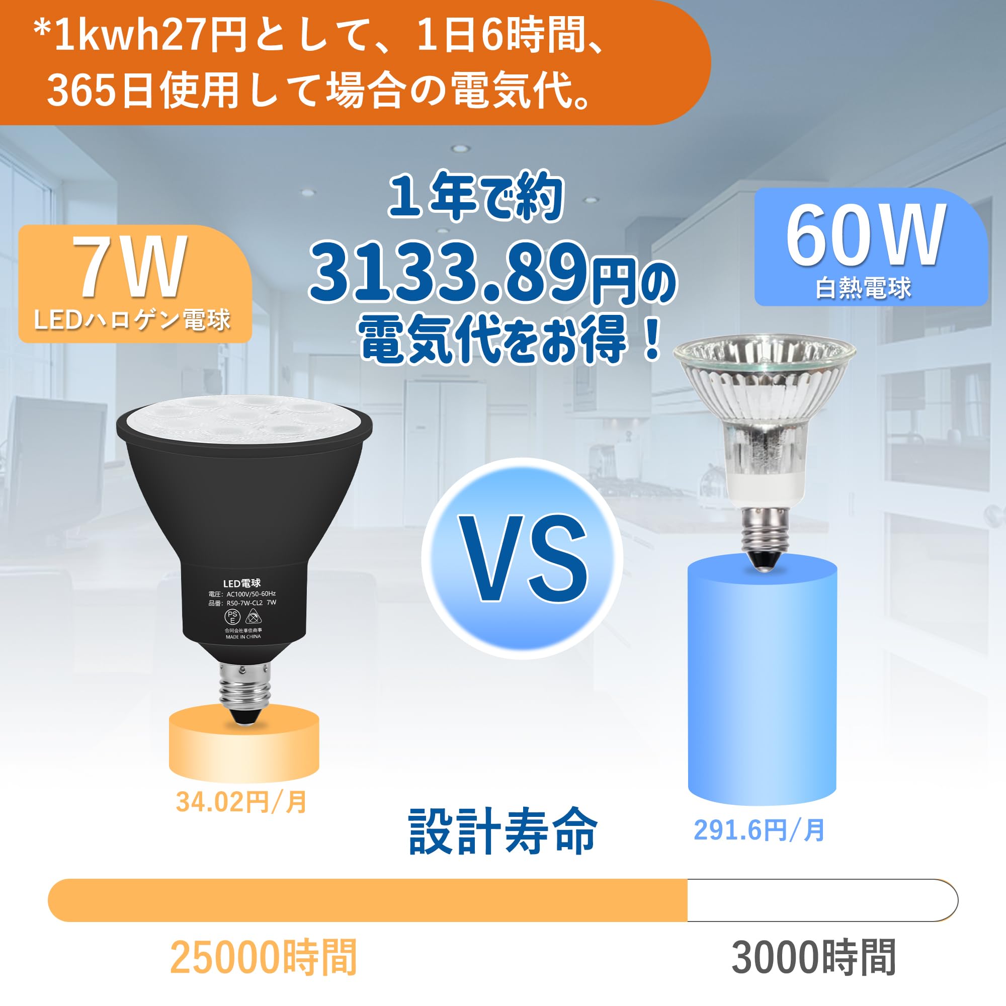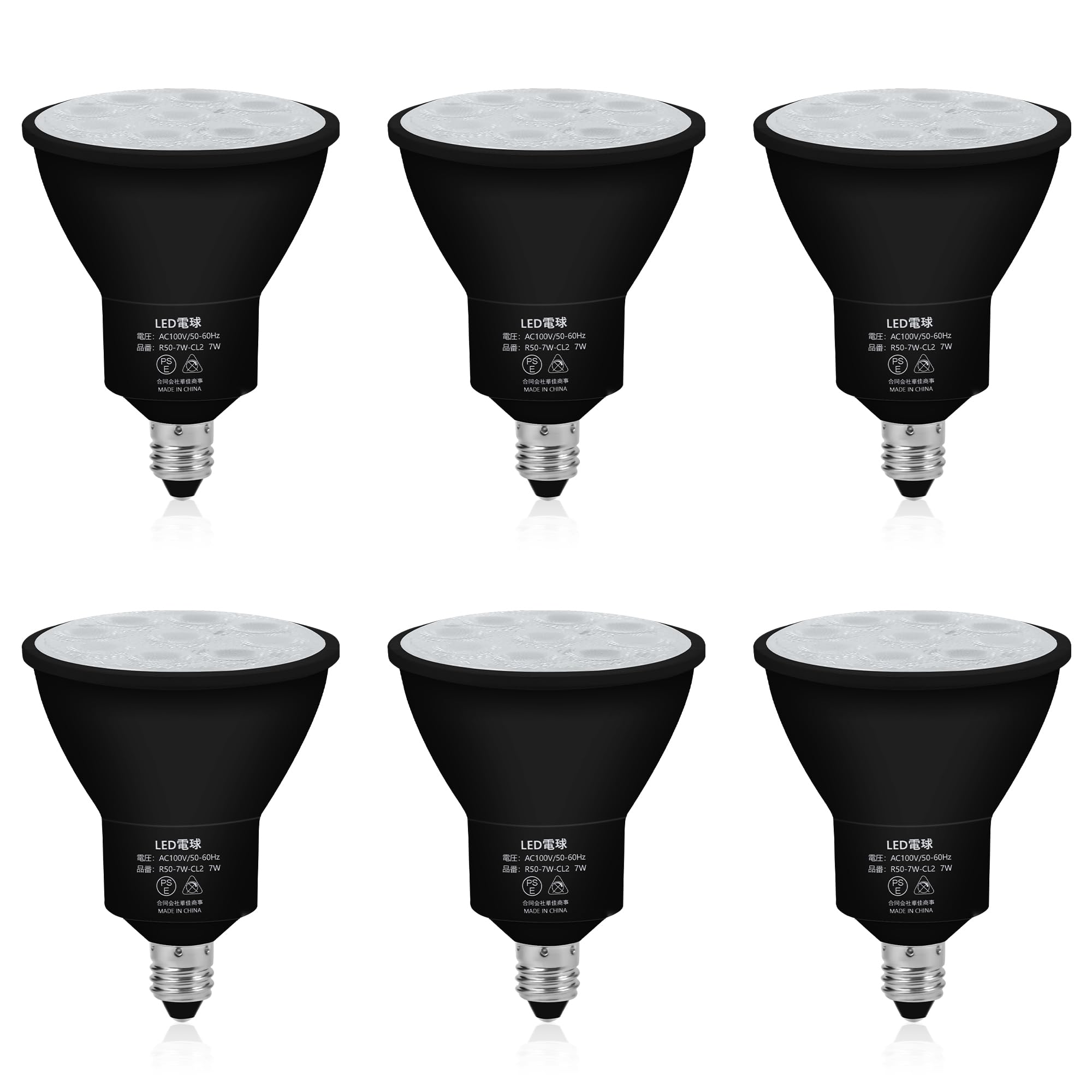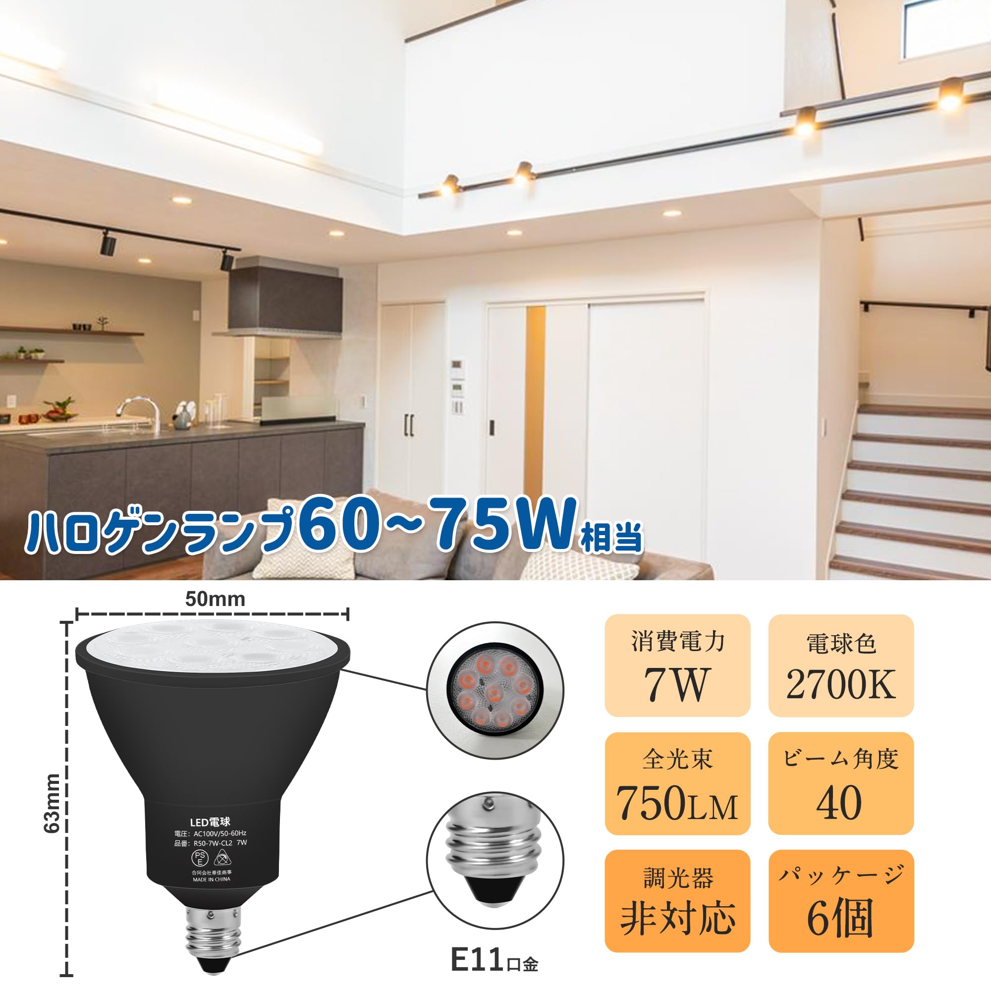 E11 LEDスポットライト 電球色 60W -75W 相当 LED電球 7W 750LM 2700K ハロゲン電球 広角タイプ ビーム角40 調光器非対応 密閉器具対応 6個入り ブラック