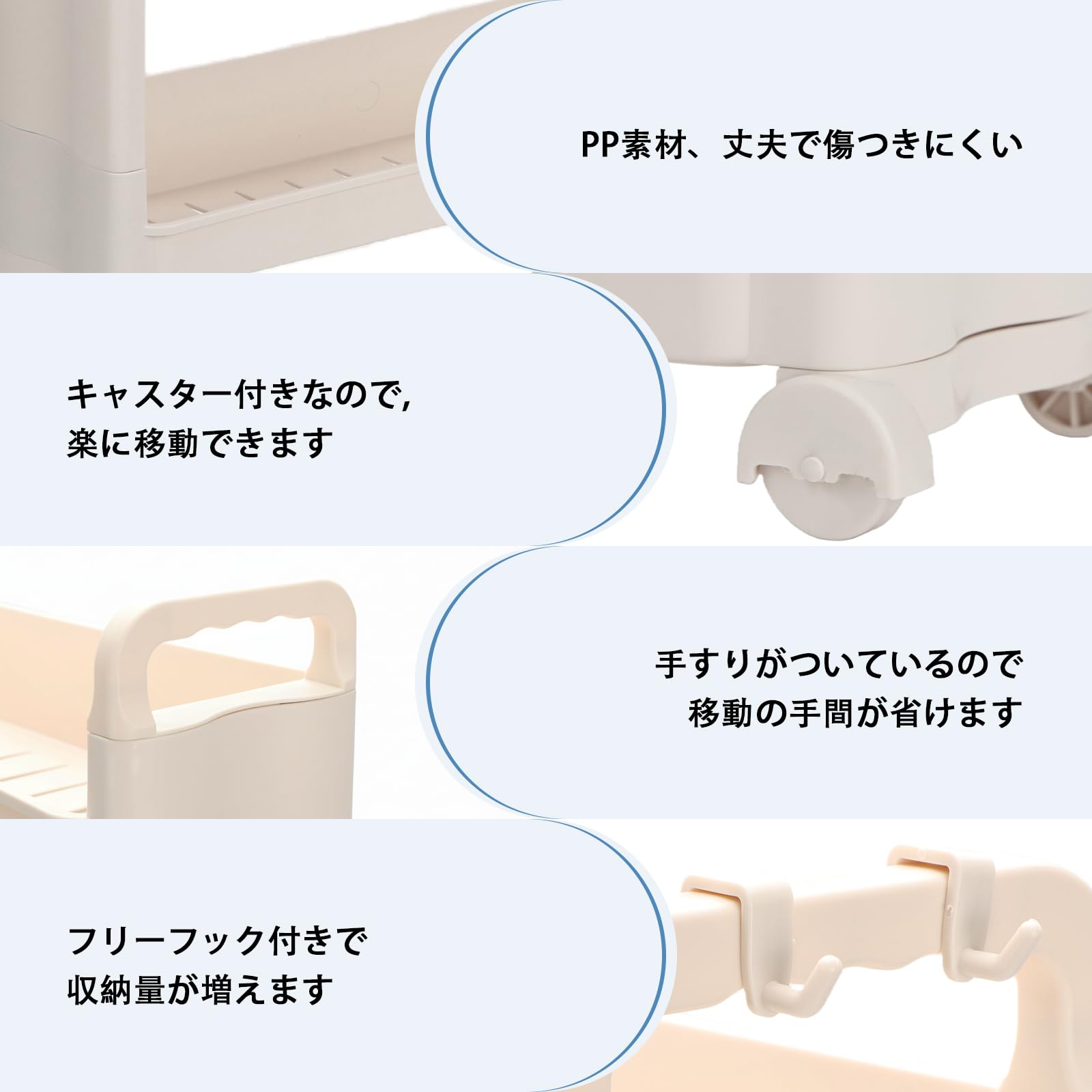 TUYOBI キッチンストッカー シンク下 収納ワゴン 4段 キャスター付き 幅35×奥行24×高さ102CM 調味料ラック デスク下収納 ワゴンカート 台所収納 フック付き 洗面台下 バスケット 組立簡単 小物整理 移動式 アイボリー