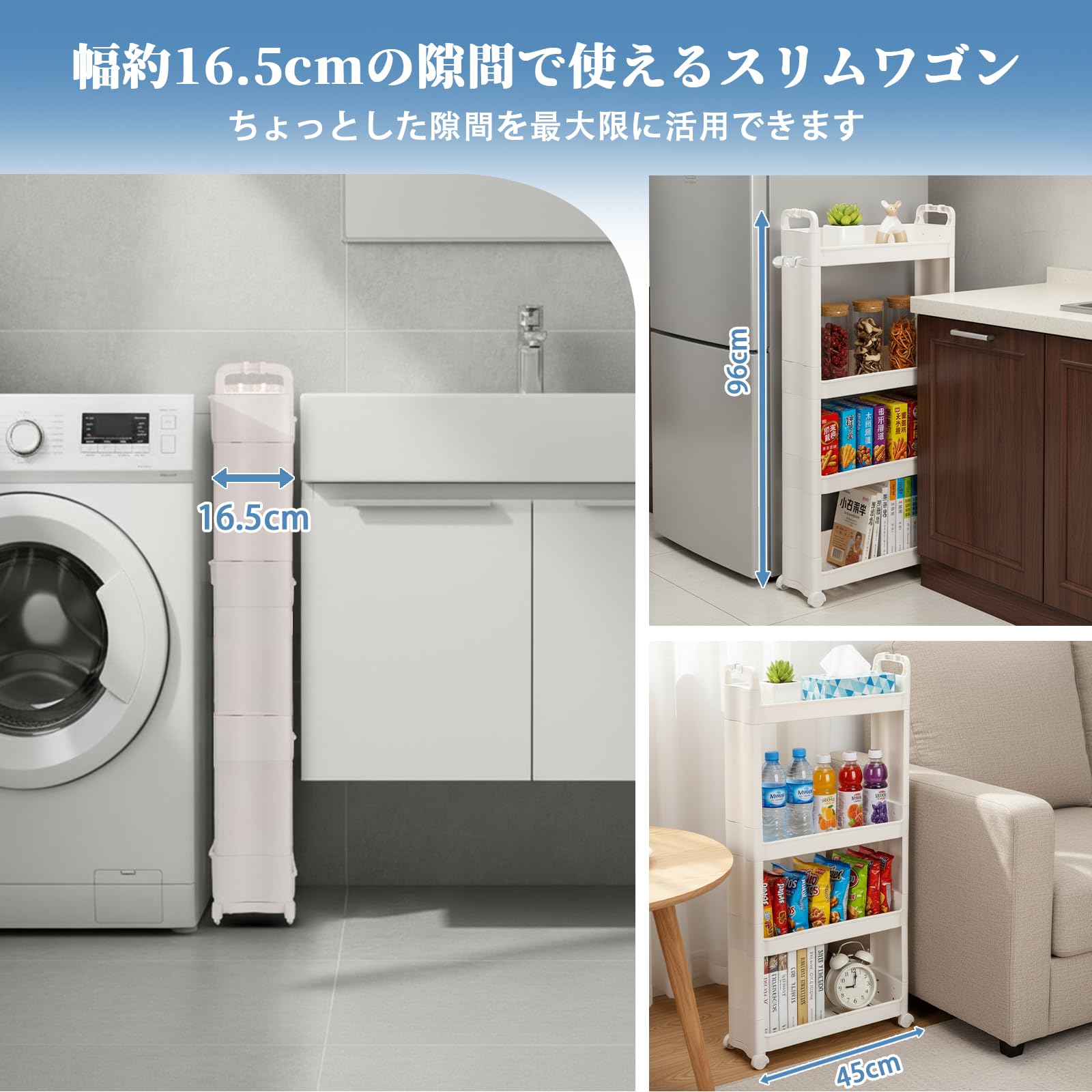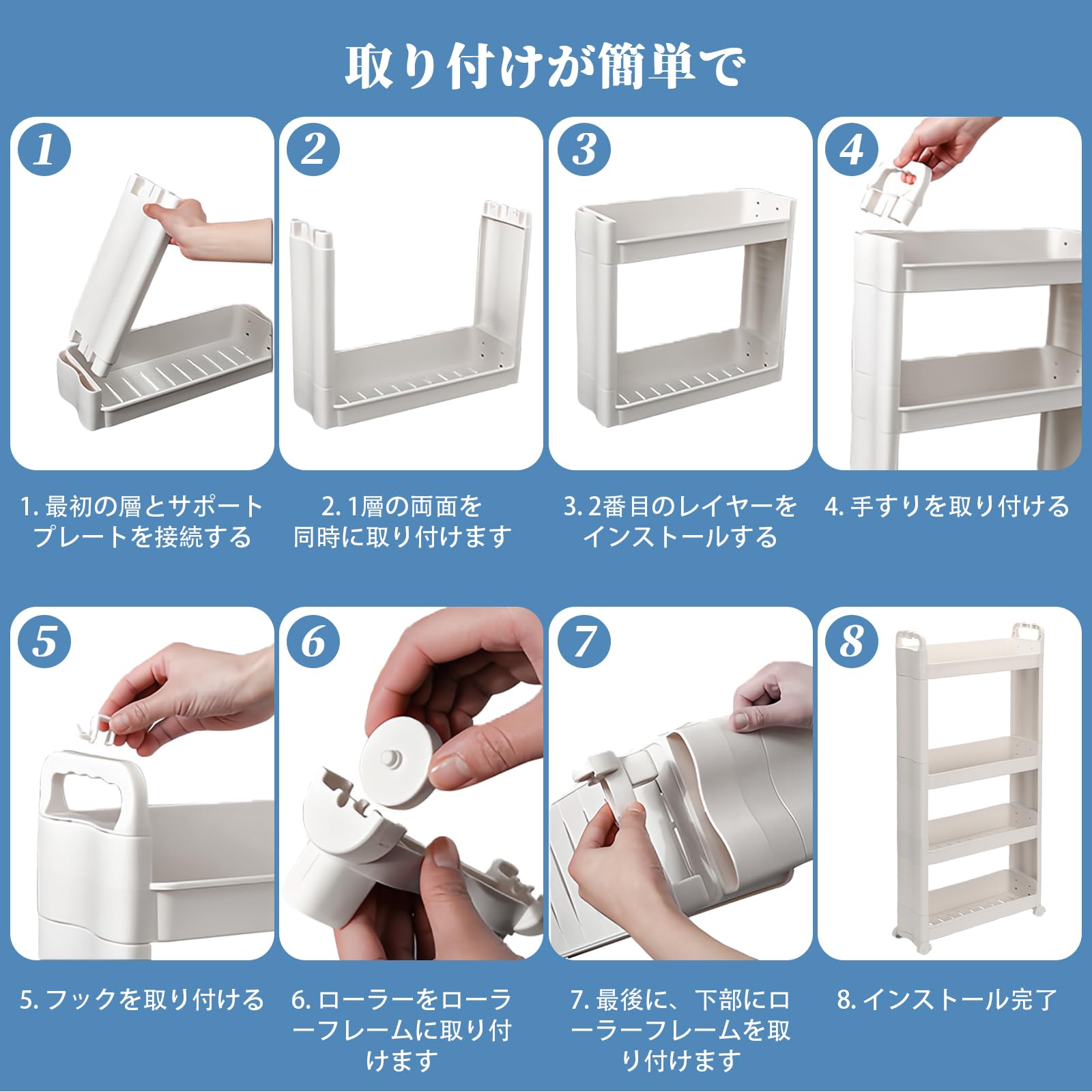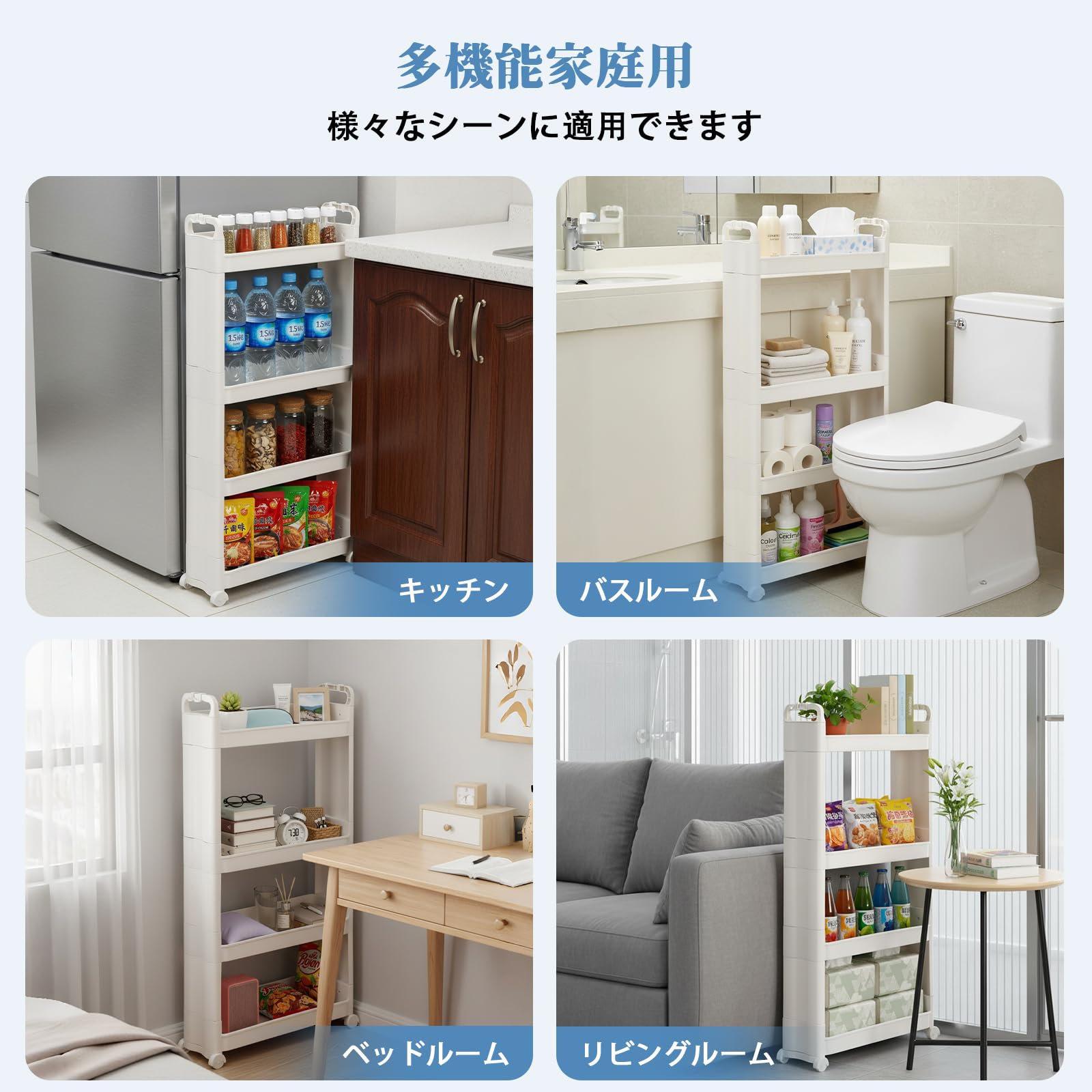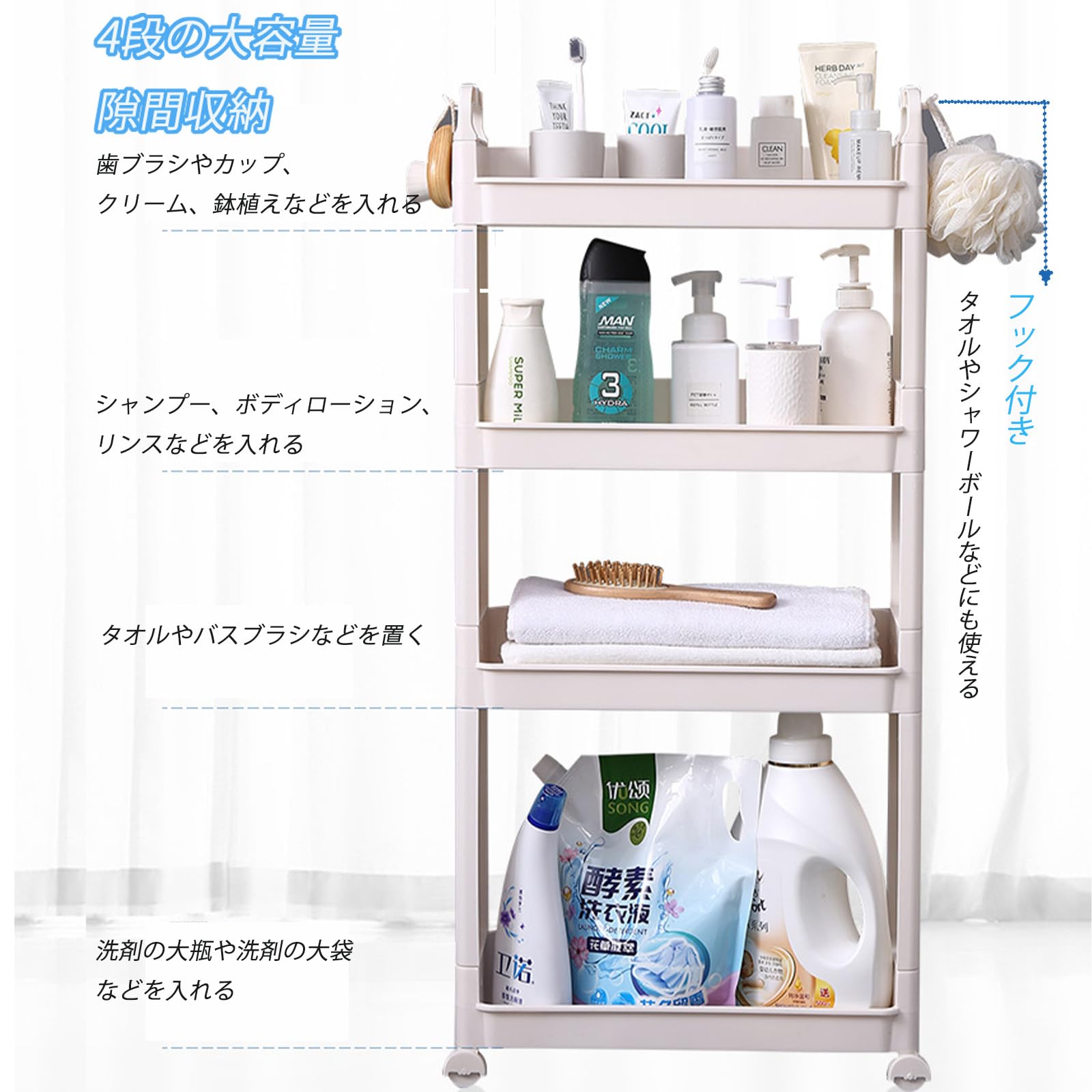 キッチンワゴン 収納ワゴン キッチンラック キッチン収納カート 隙間ワゴン 収納棚 キッチン収納棚 収納ラック キャスター付き ホワイト スリム 隙間収納 4段 幅22.5cm/幅13cm 耐荷重 おしゃれ 台所