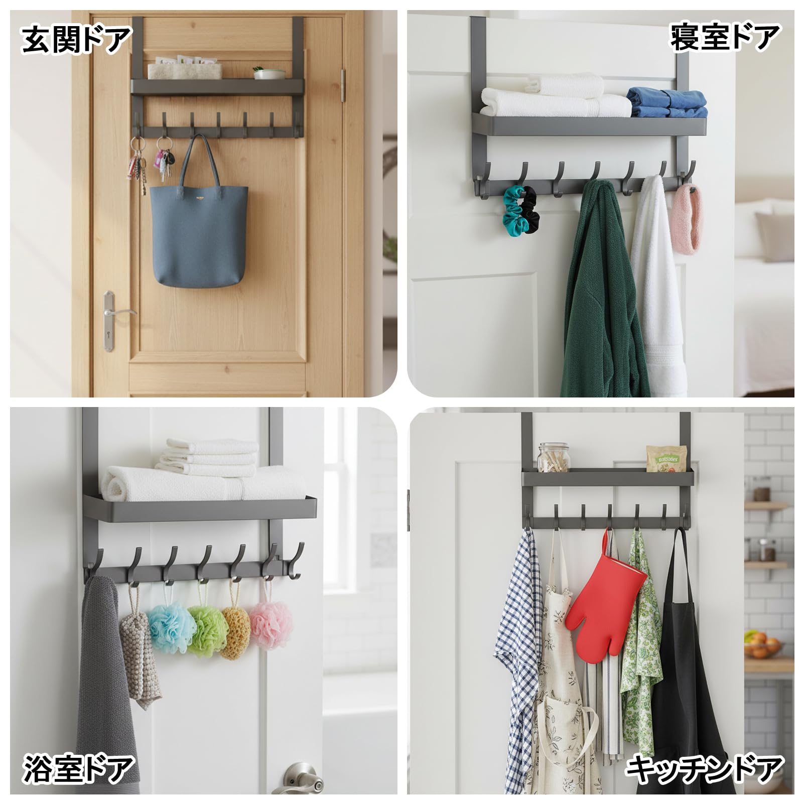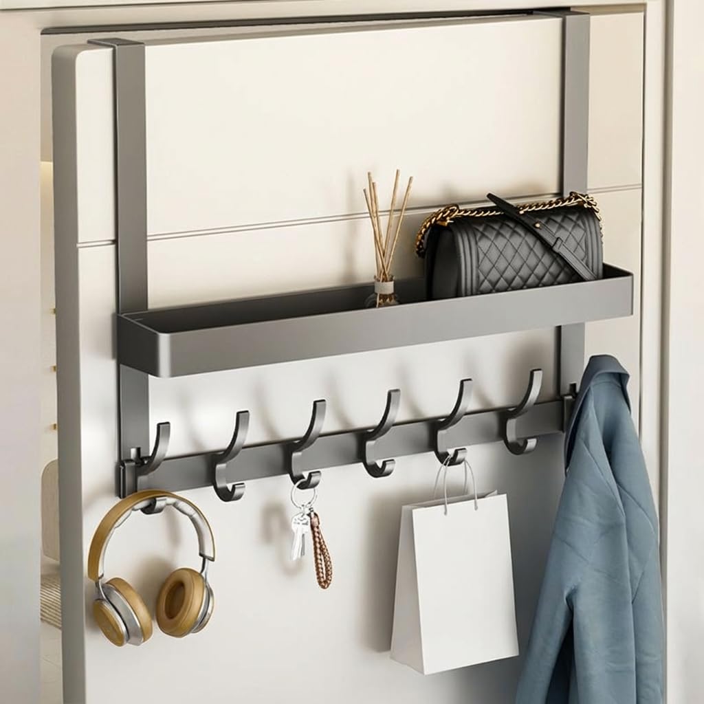 6フック ウォールハンガー ドアハンガー 扉フック 収納フック ドアフック 吊り下げ ドア掛けフック ドアに掛ける収納 省スペース タオルハンガー ドアコートハンガー バスルーム用 玄関扉収納 ドアの後ろ用