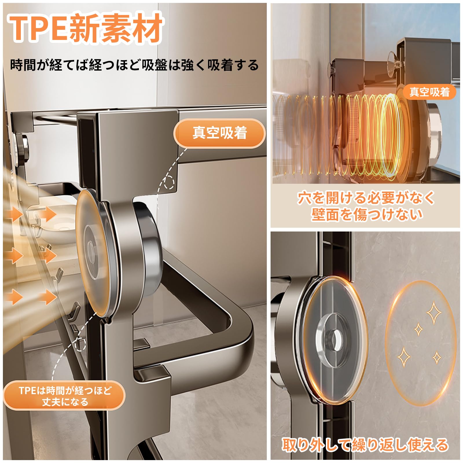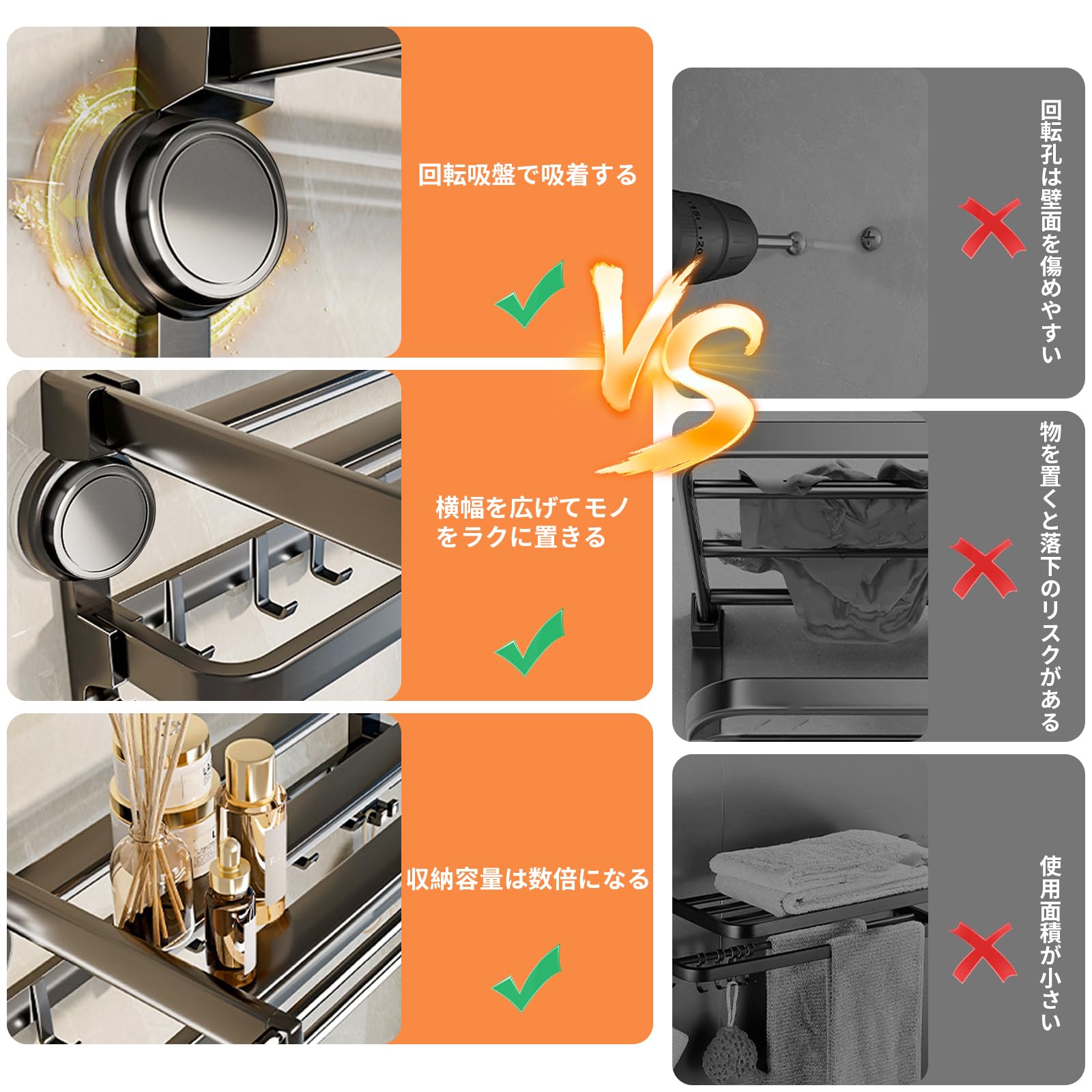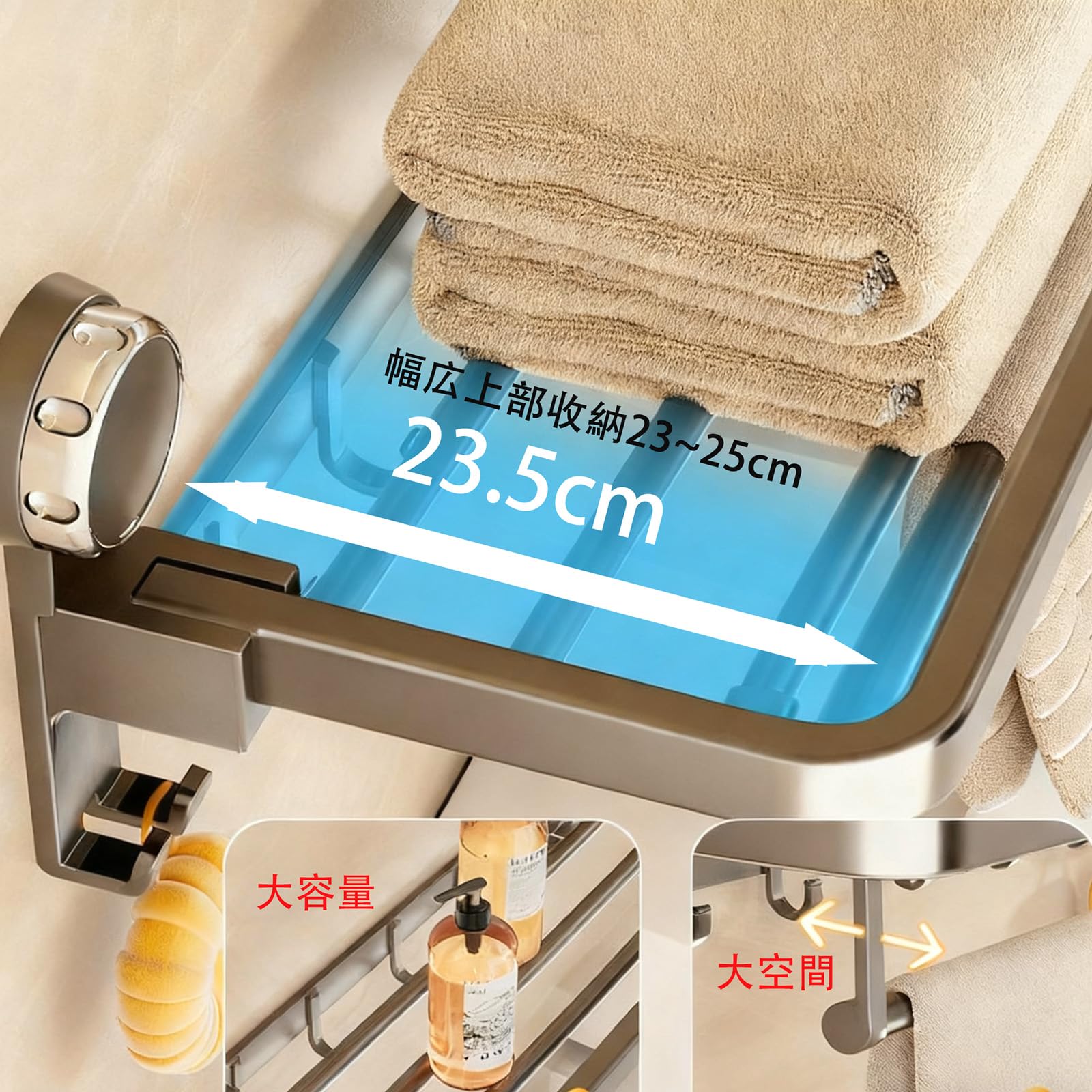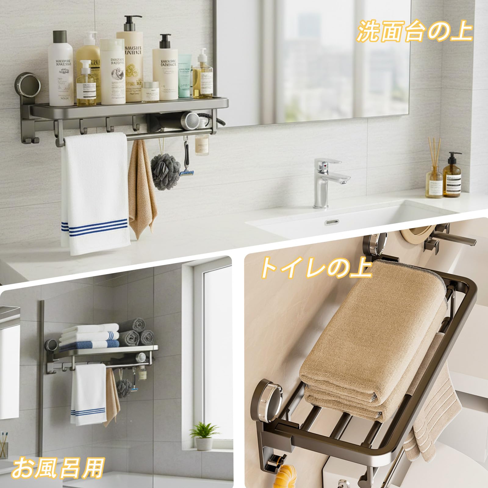 バスルームタオルハンガー吸盤 アルミニウム合金 タオル掛け折りたたみ式 バ布巾ハンガー 粘着 タオルハンガー 吸盤 キッチン バスルームタオルかけ 洗面所タオル掛け 強力粘着 バスルーム用 壁掛け式 省スペースフック 取り付け不要 収納 バスルーム 強力吸着 耐荷重 タオルラック 落下防止 おしゃれ