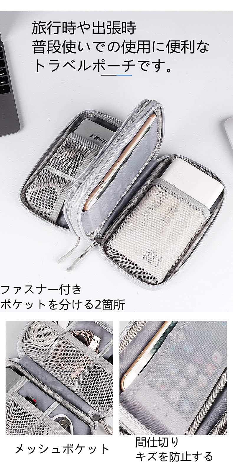 HAWEE スマホ ショルダー バック サンワダイレクト トラベルポーチ ガジェットポーチ 旅行 出張 便利グッズ マウス ケーブル モバイルバッテリー 収納ポーチ多機能防水 収納袋 ハードディスク データケーブル イヤホン Uディスク USBフラッシュドライブ 収納袋 選べる 使いやすくて大容量 (グレー)