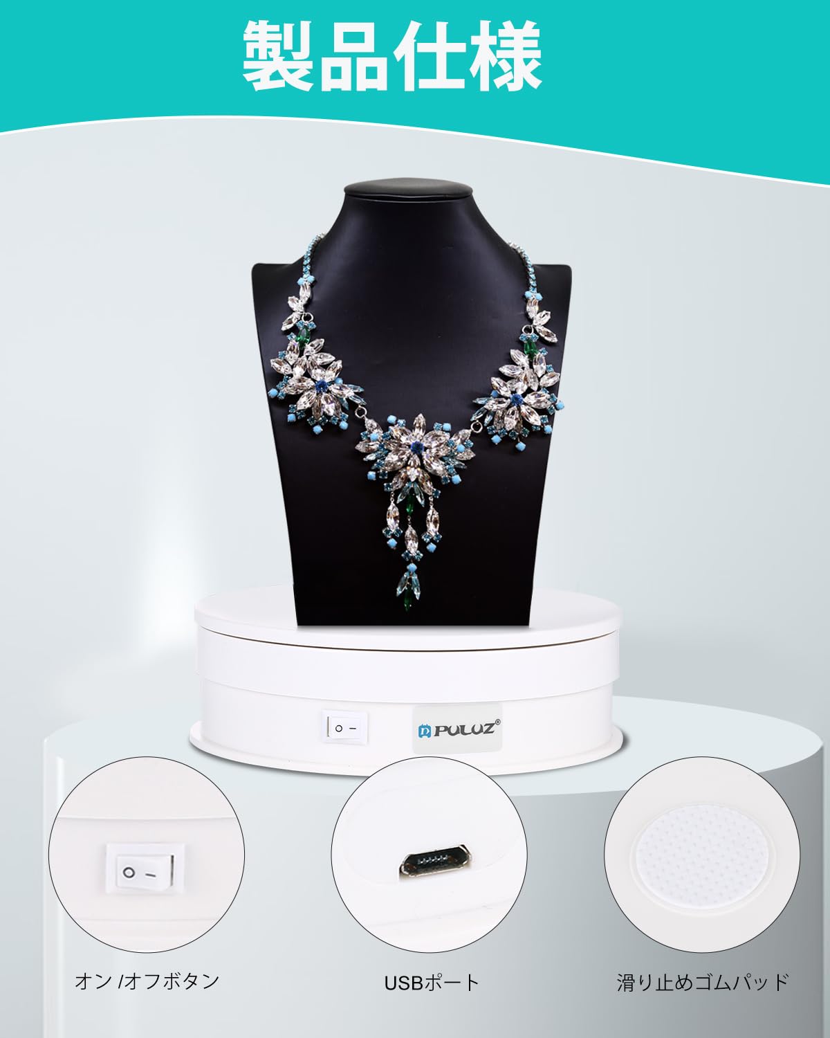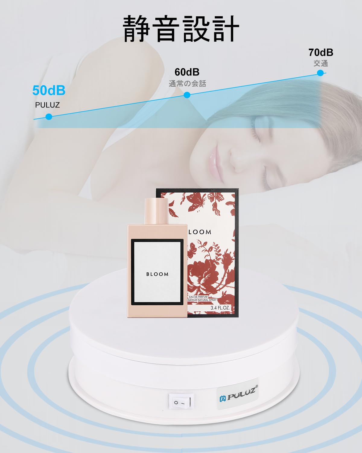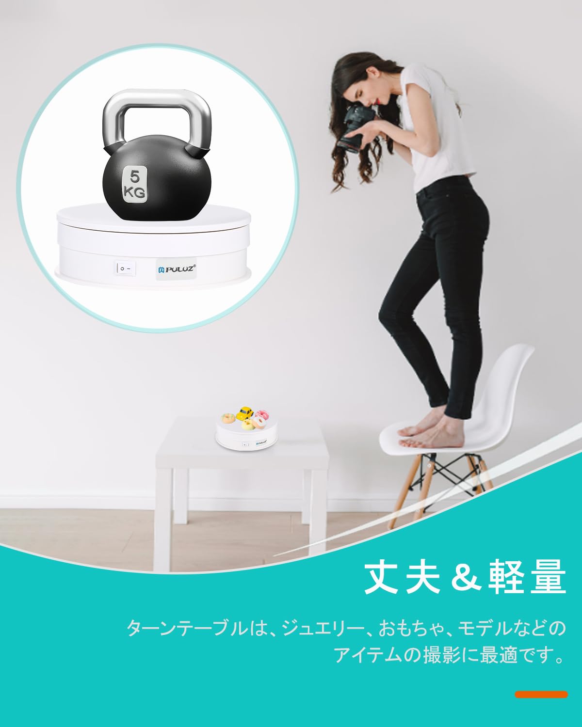 PULUZ 電動ターンテーブル 360°電動回転台 直径15cm ターンテーブル 回転式ディスプレイスタンド 耐荷重5KG 電動展示台 速度と方向を調整可能 安定性・低騒音・省電力 アニメーション撮影用/静物写真/商品展示/ジュエリーディスプレイ/ガンダム/モデル展示用 (白, 15cm)