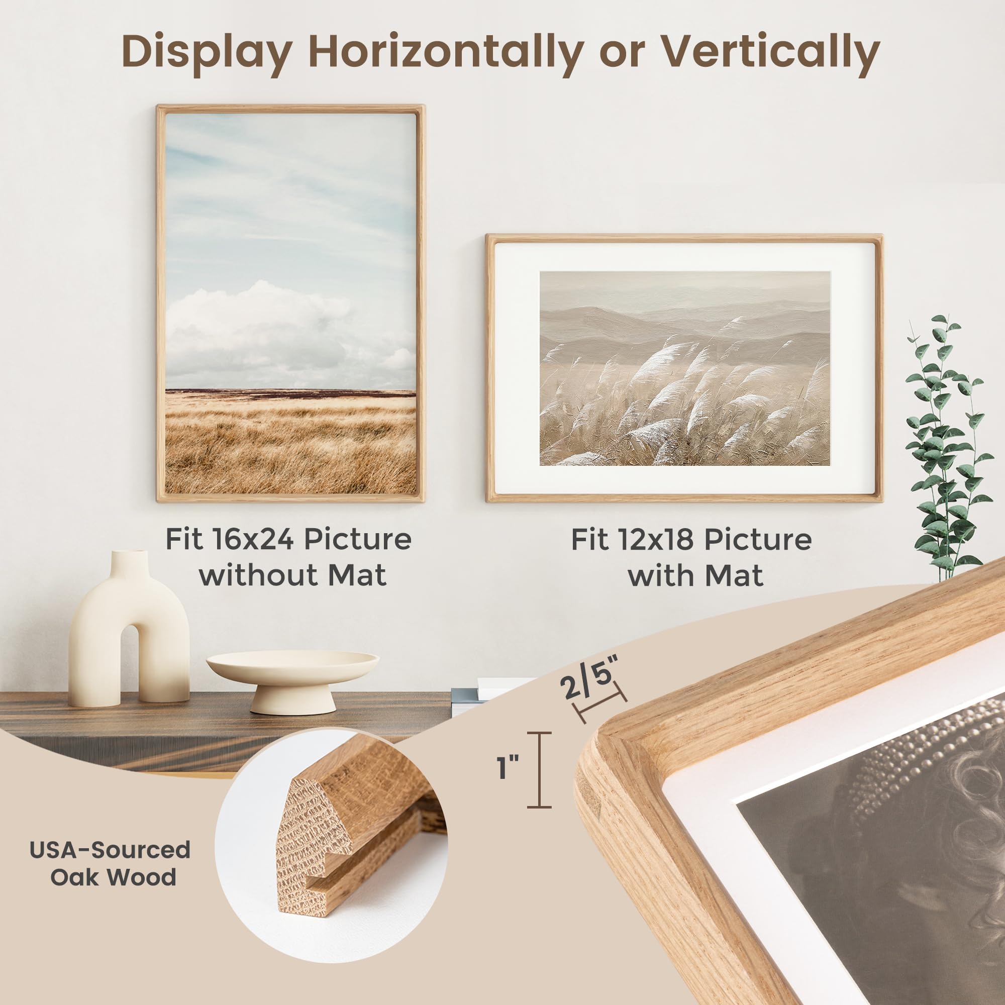 16x24インチ ポスターフレーム 木製 12x18マット付き 手作り丸角